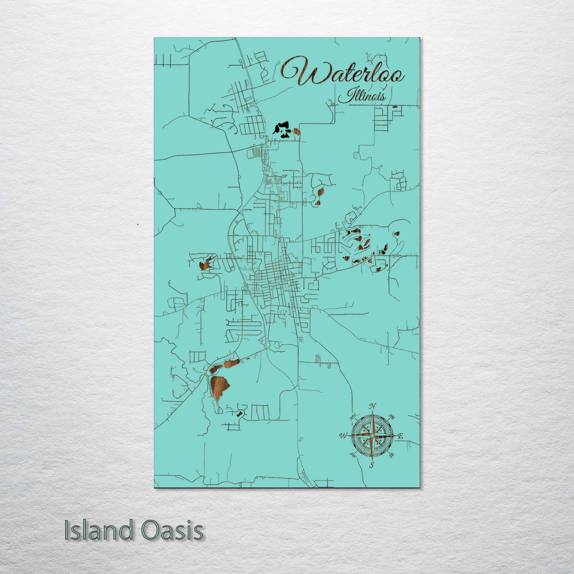 Splendid Choice for Map Enthusiasts: This wood-engraved Waterloo, Illinois street map is a remarkable addition to any map aficionado's collection. Masterfully created using premium pine wood, it highlights the intricate street layout of Waterloo with remarkable precision and aesthetic appeal. Ideal for those who value cartography and the artistic representation of townscapes.
