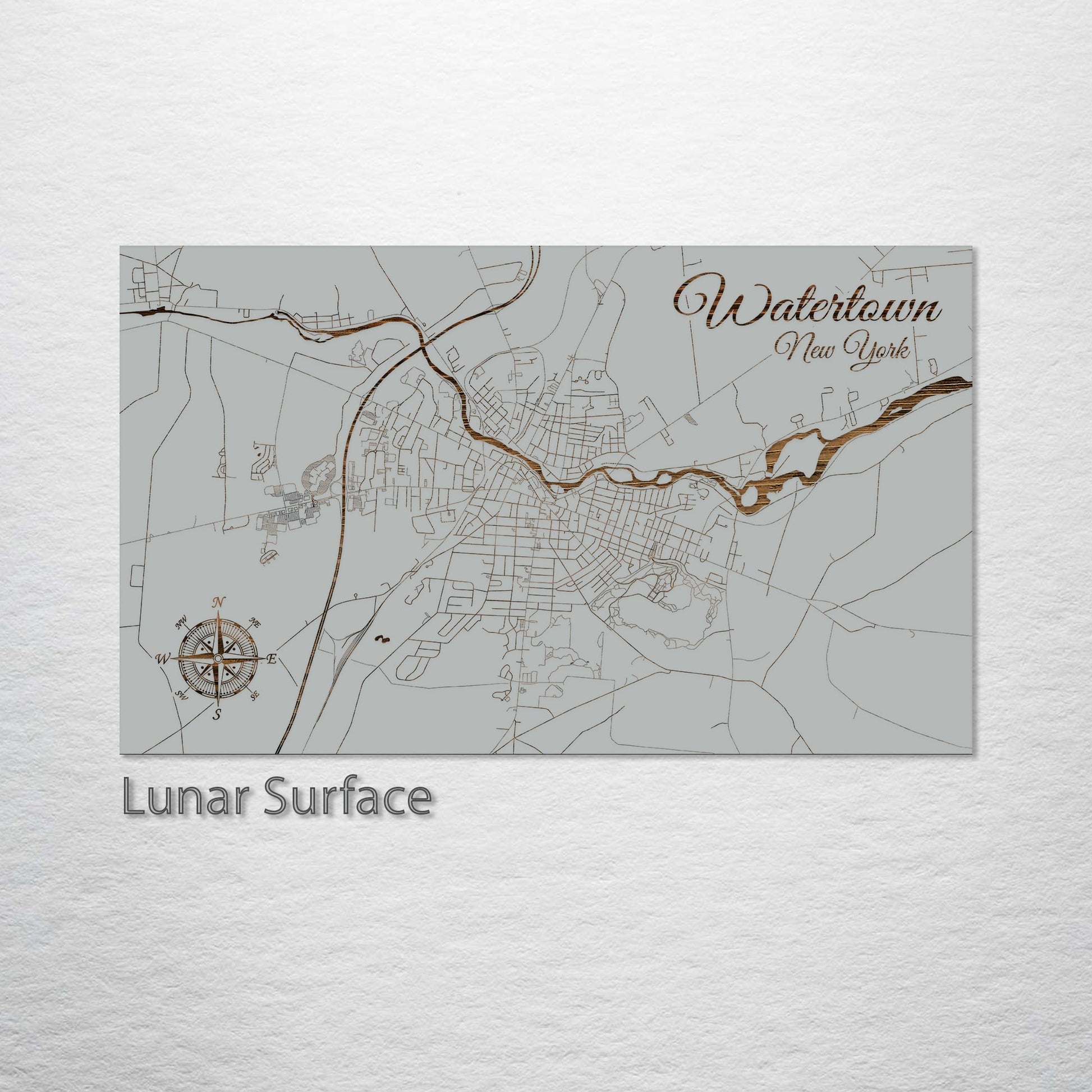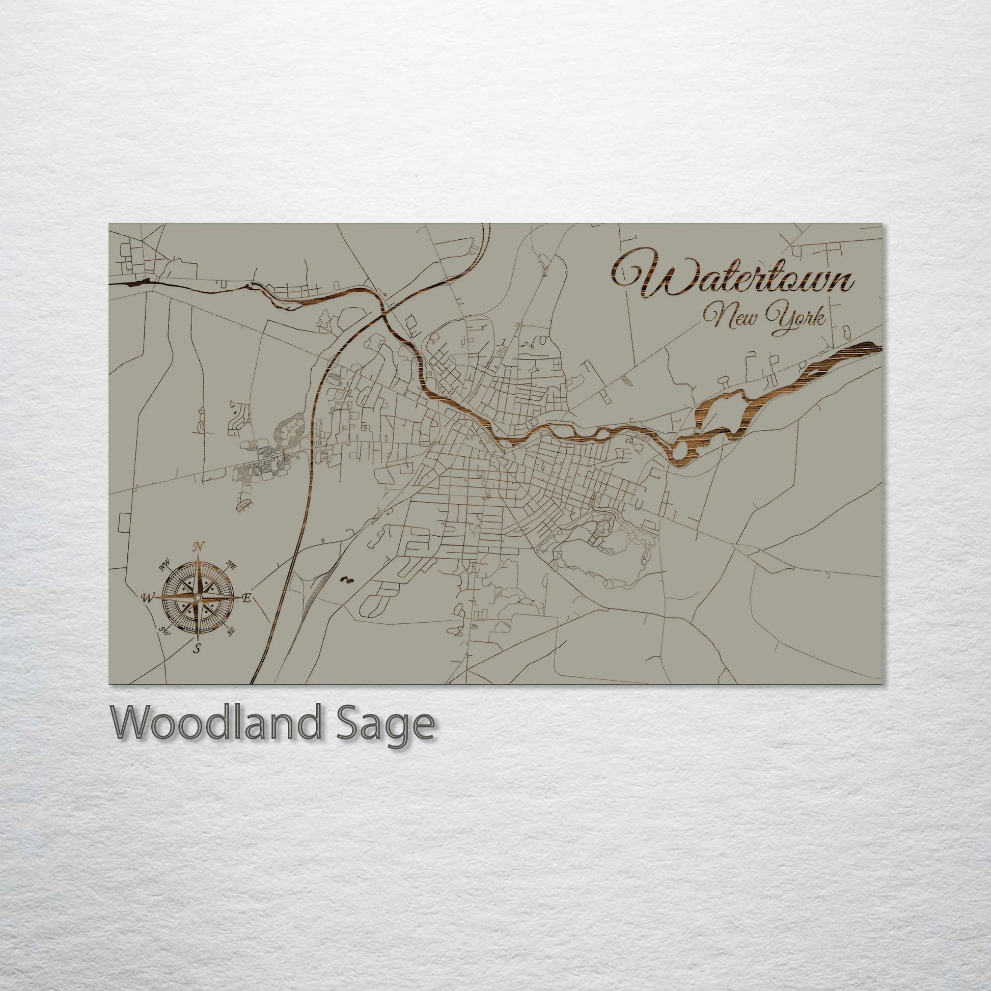 This is a street map of Watertown, NY designed by Fire & Pine artists.