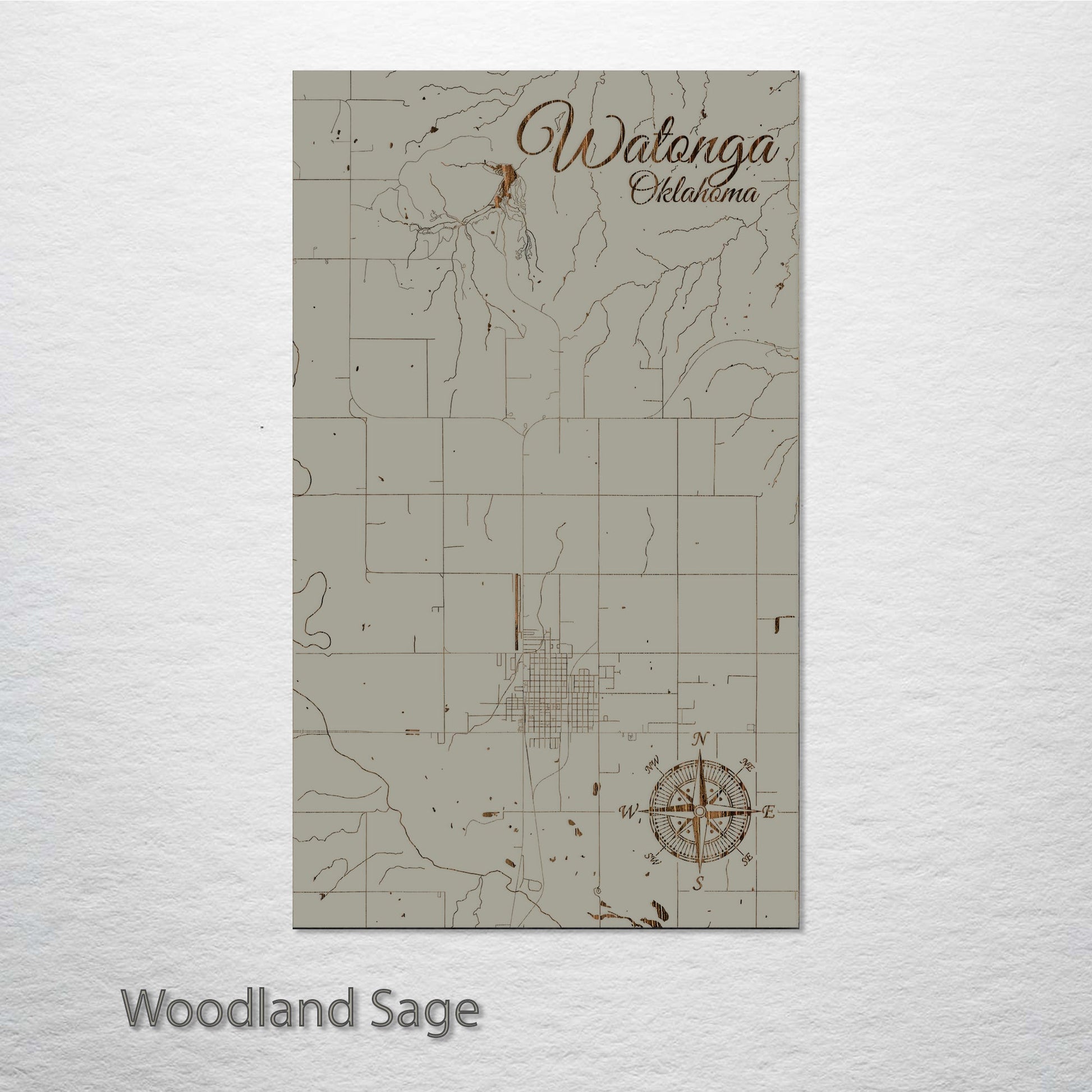 This is a street map of Watonga, OK designed by Fire & Pine artists.