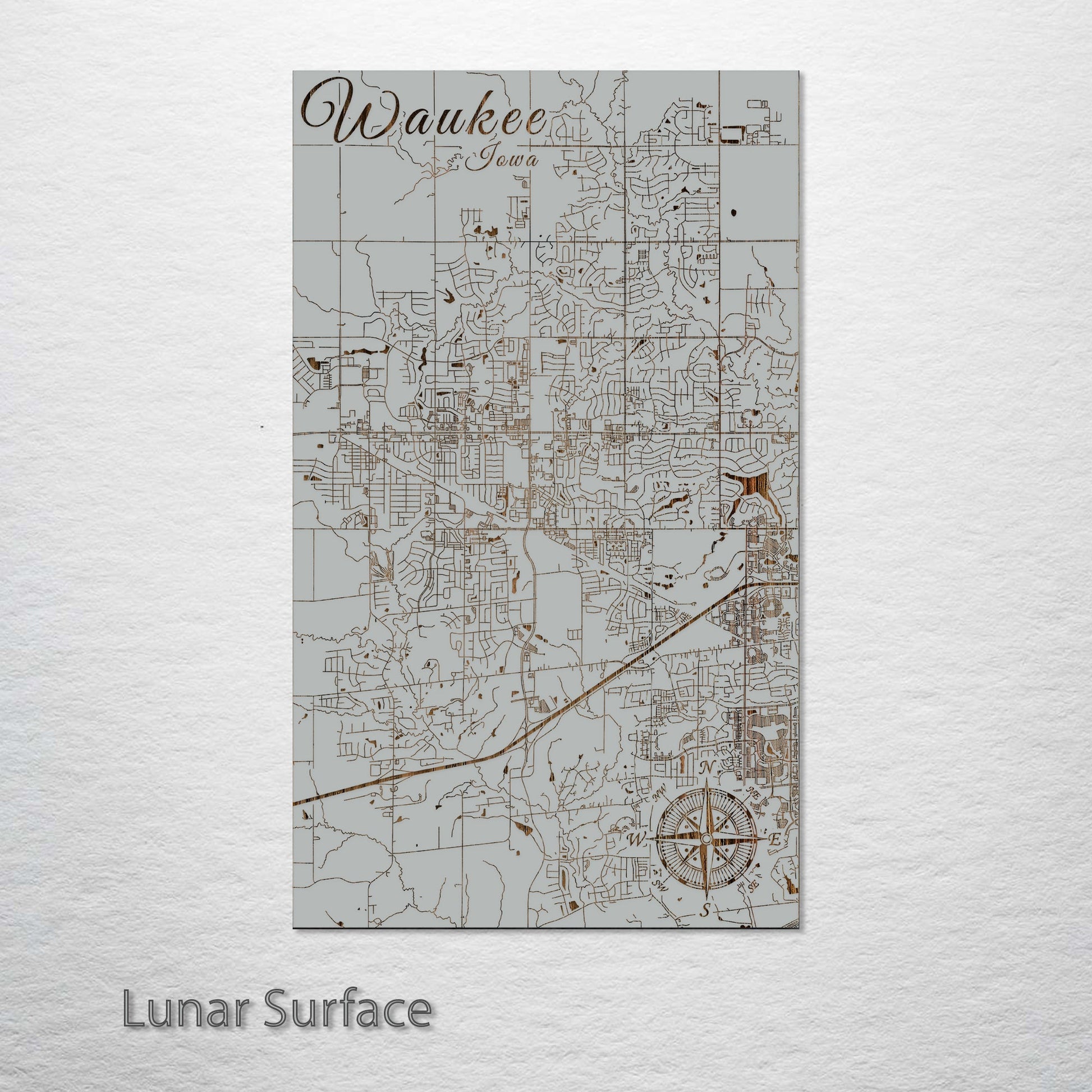 This is a street map of Waukee, IA designed by Fire & Pine artists.