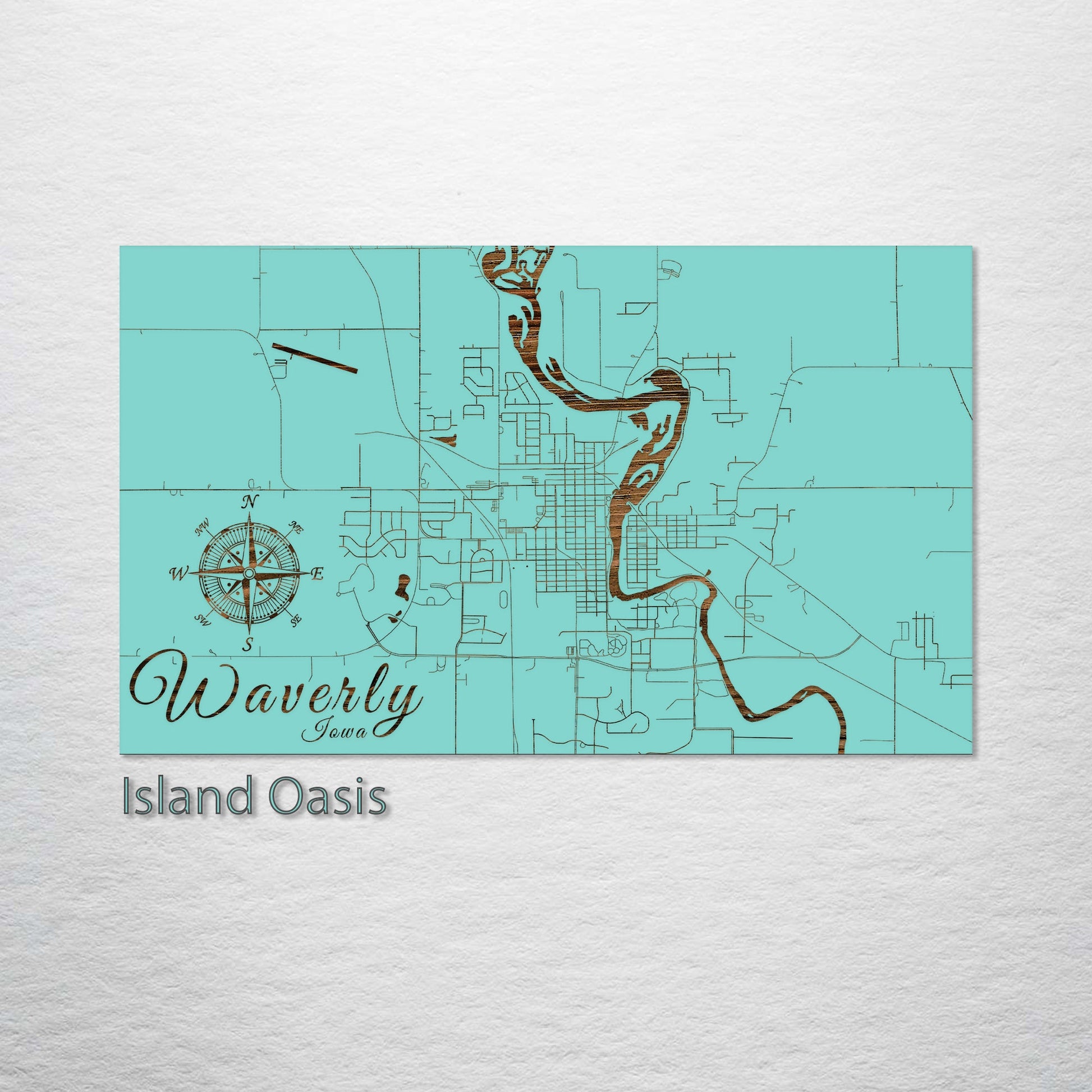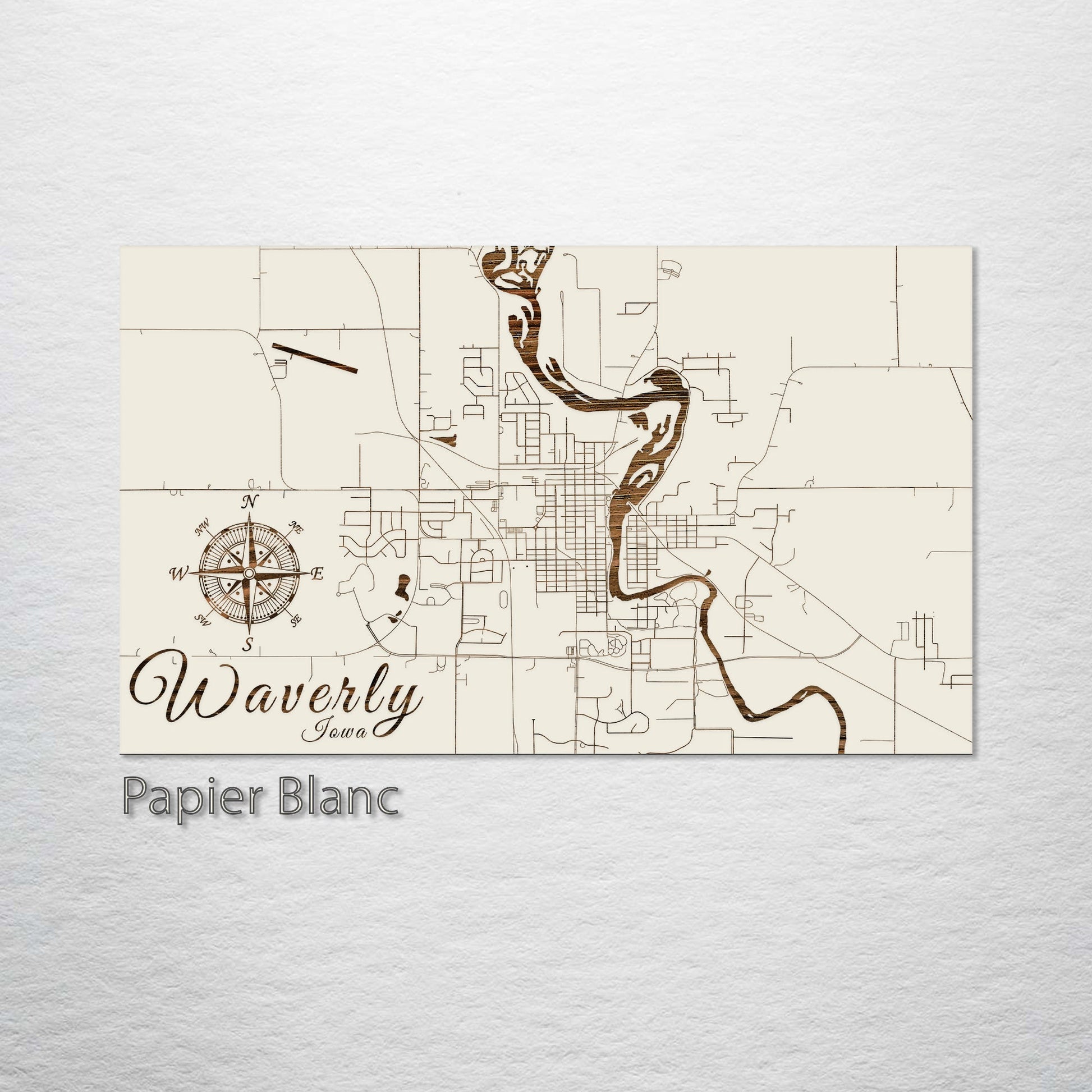 This is a street map of Waverly, IA designed by Fire & Pine artists.