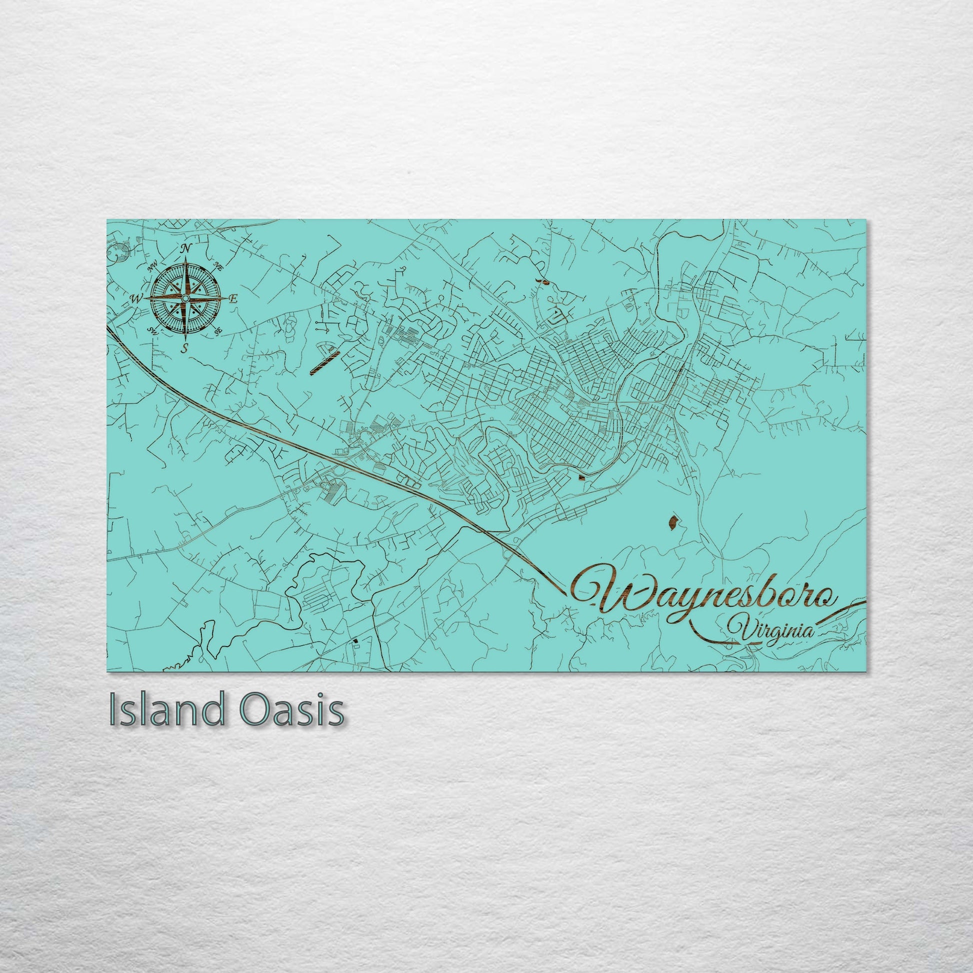 This is a street map of Waynesboro, VA designed by Fire & Pine artists.