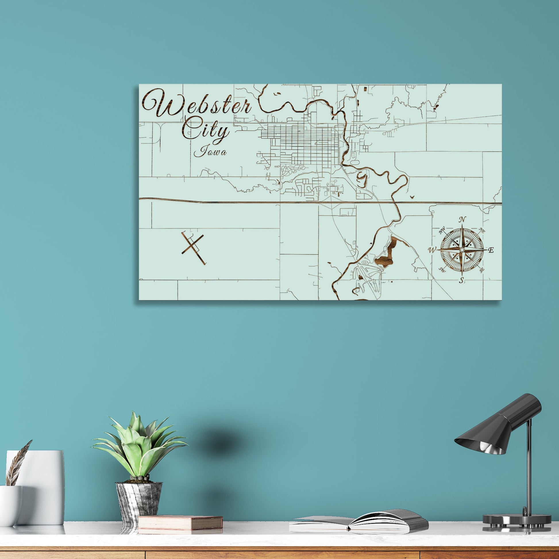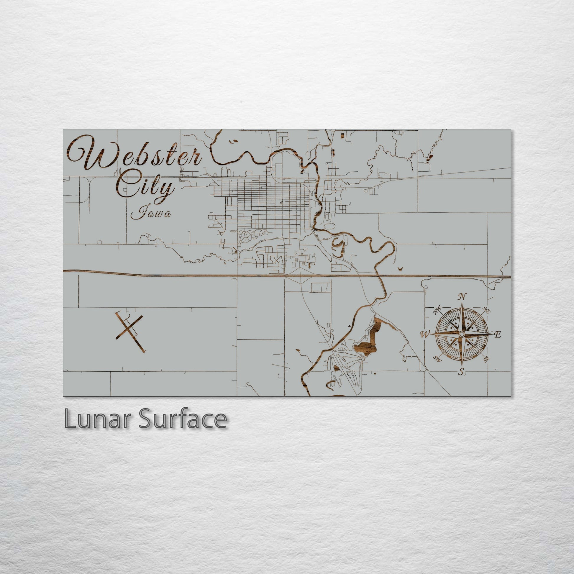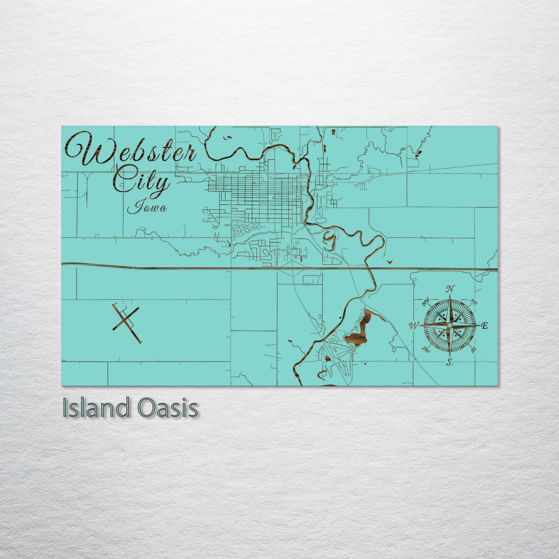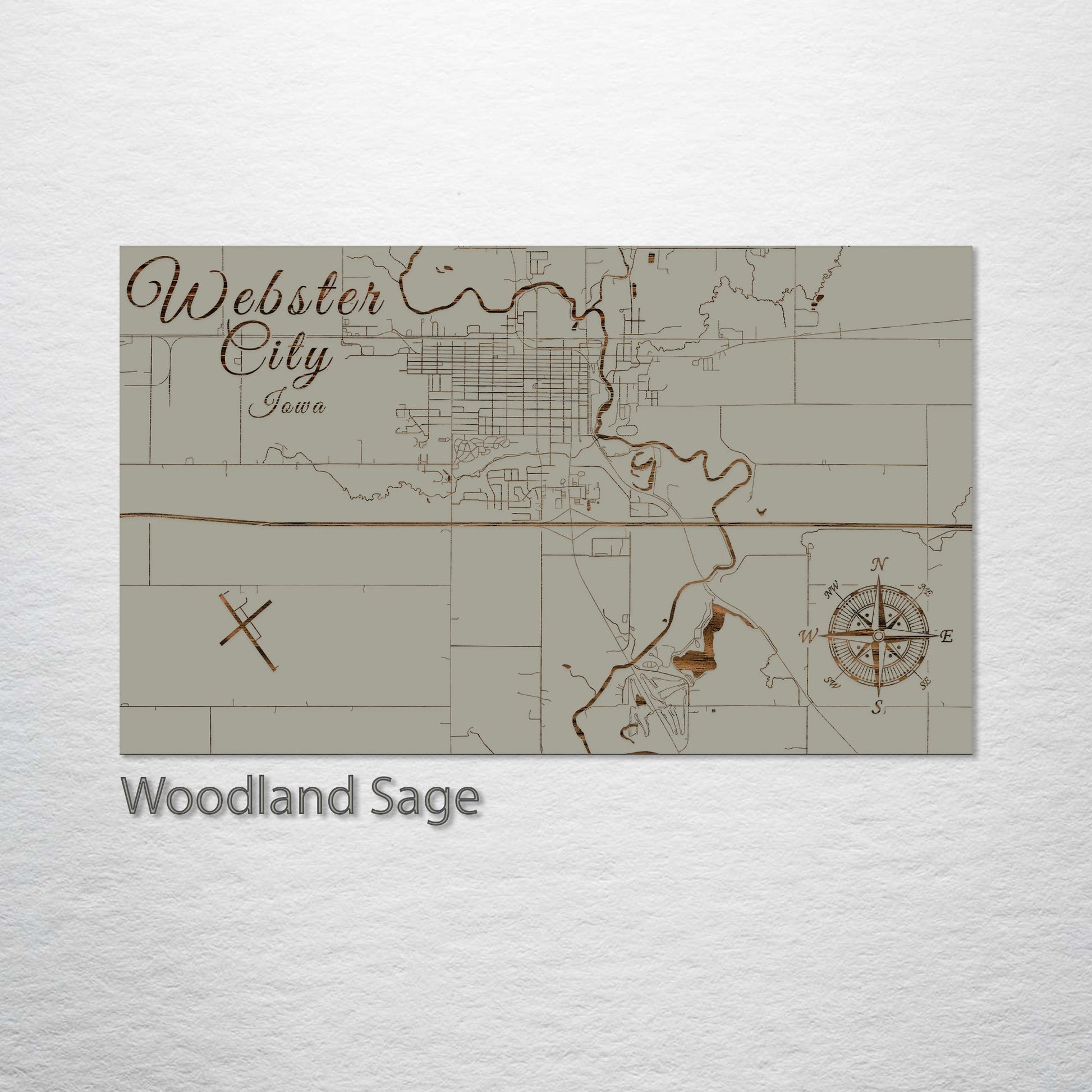 This is a street map of Webster City, IA designed by Fire & Pine artists.