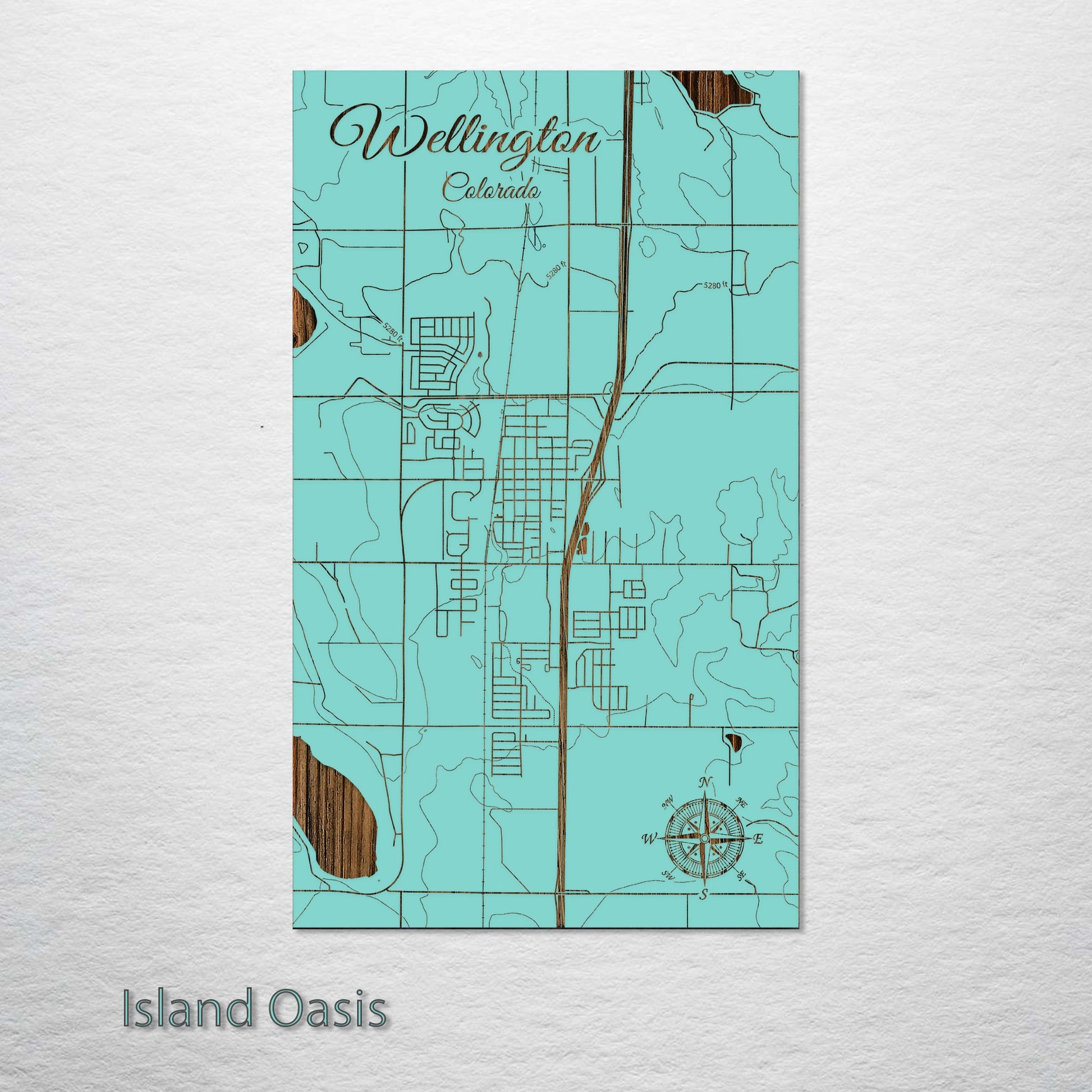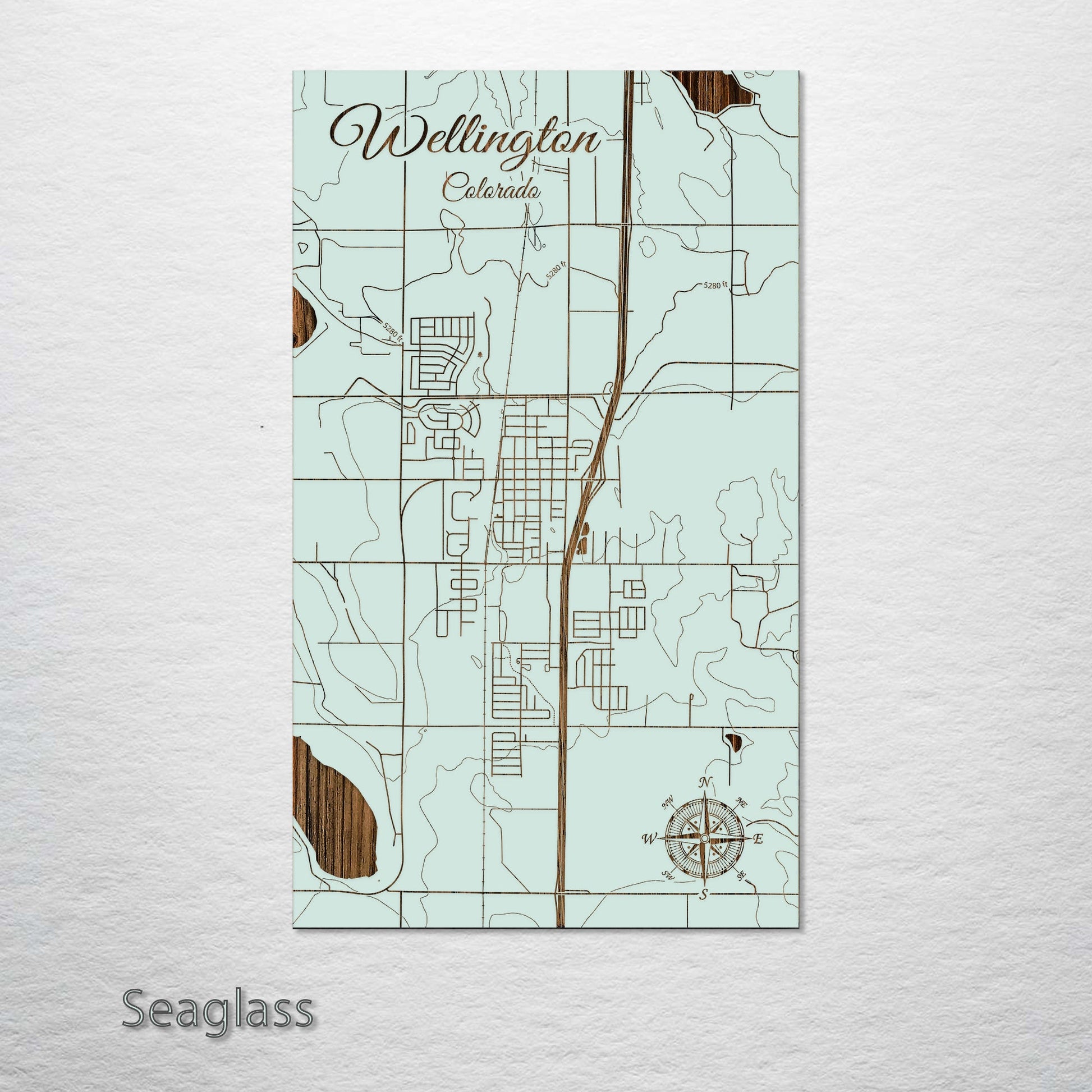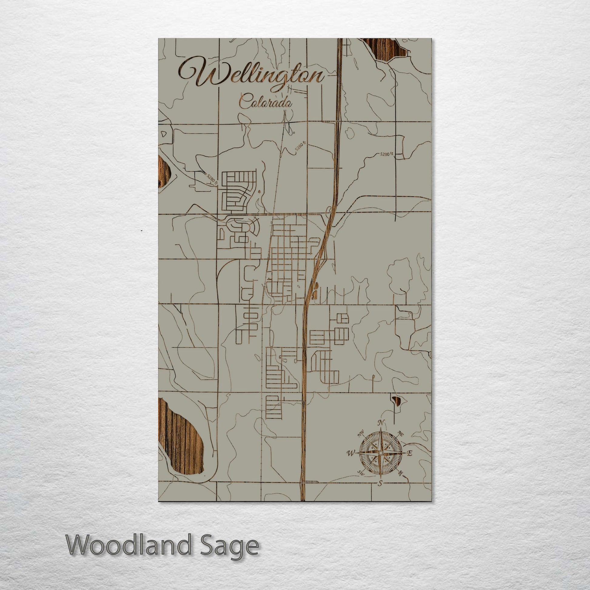 This is a street map of Wellington, CO designed by Fire & Pine artists.