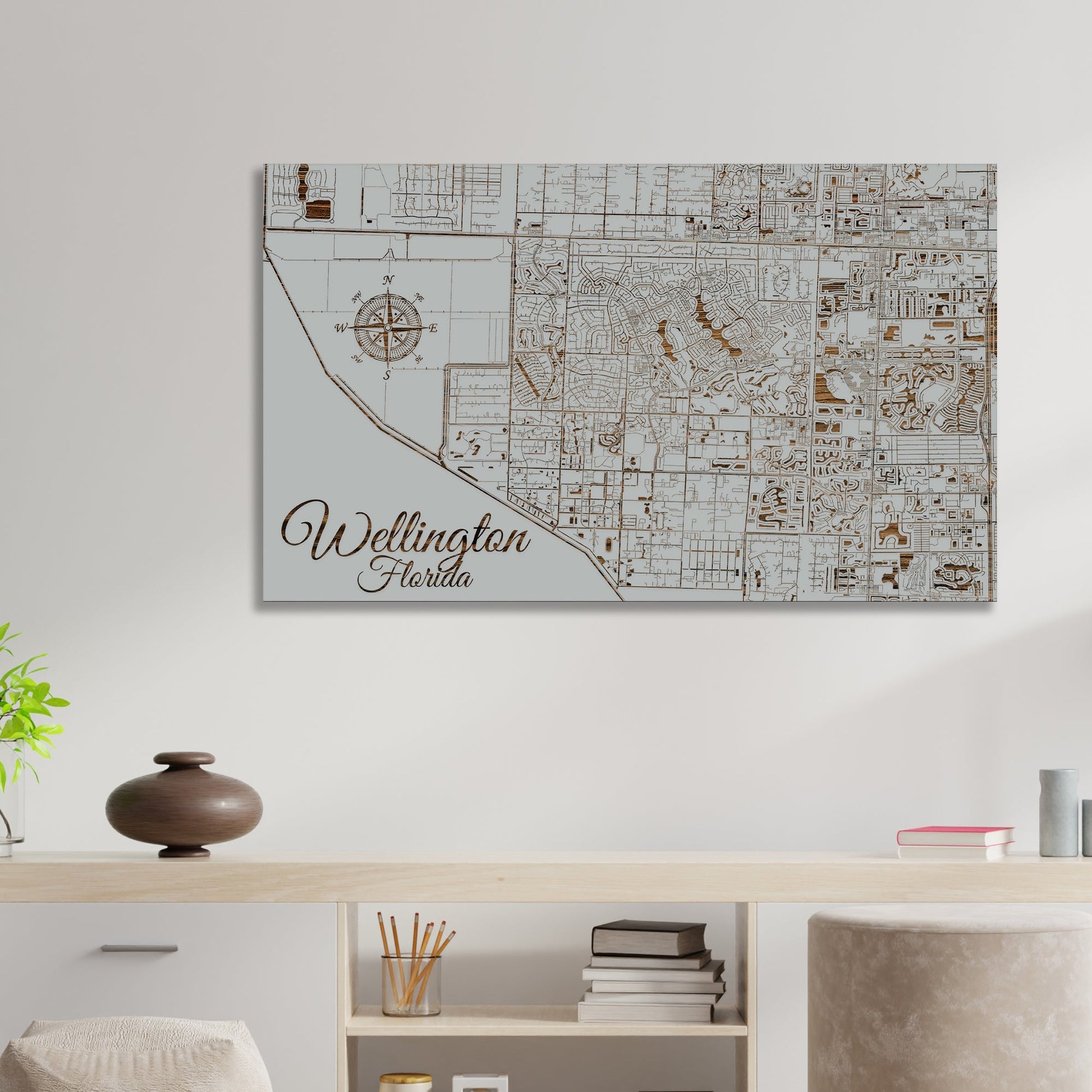 This is a street map of Wellington, FL designed by Fire & Pine artists.
