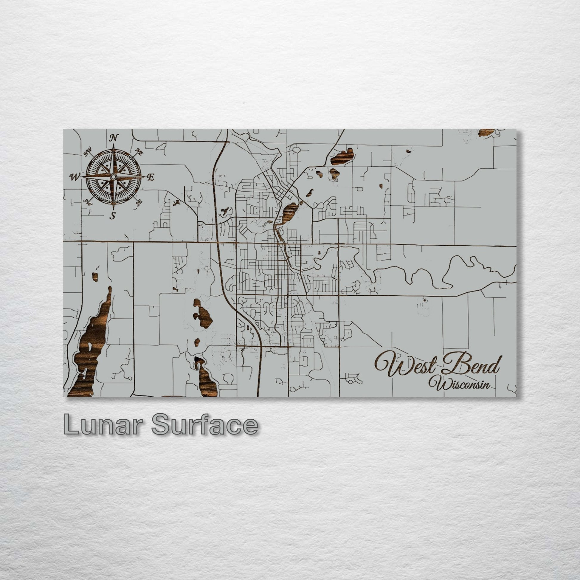 This is a street map of West Bend, Wisconsin designed by Fire & Pine artists.