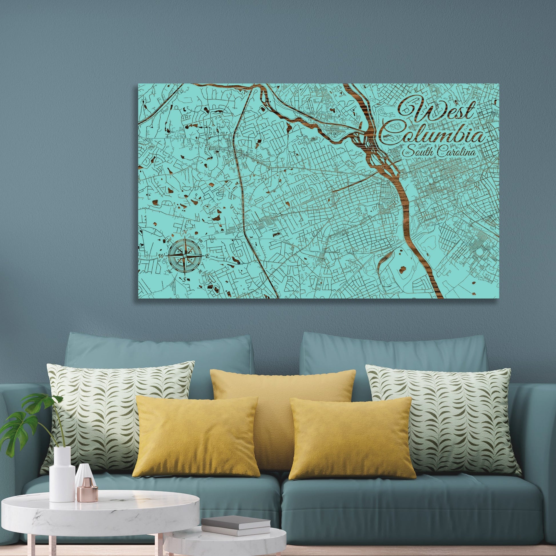 This is a street map of West Columbia, SC designed by Fire & Pine artists.