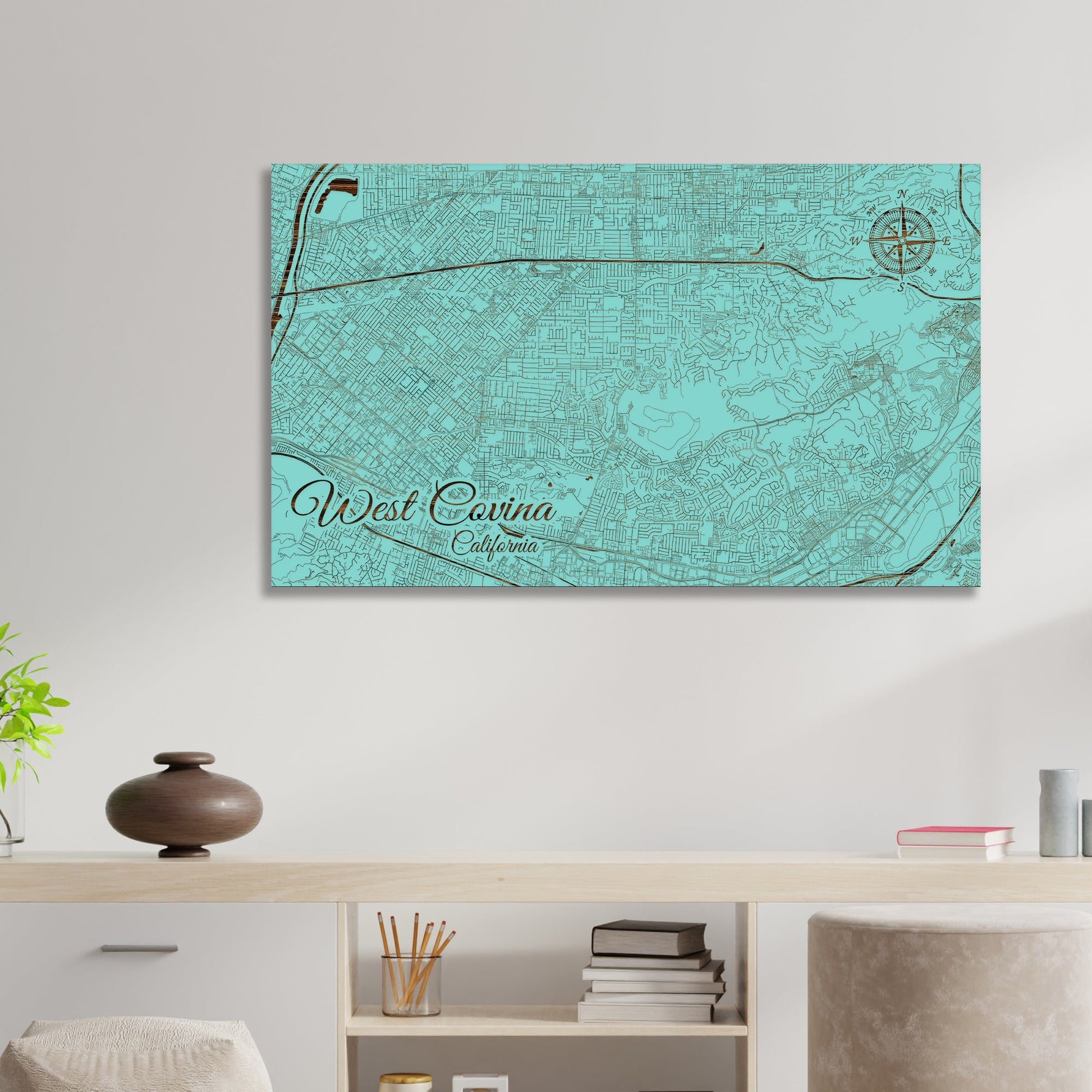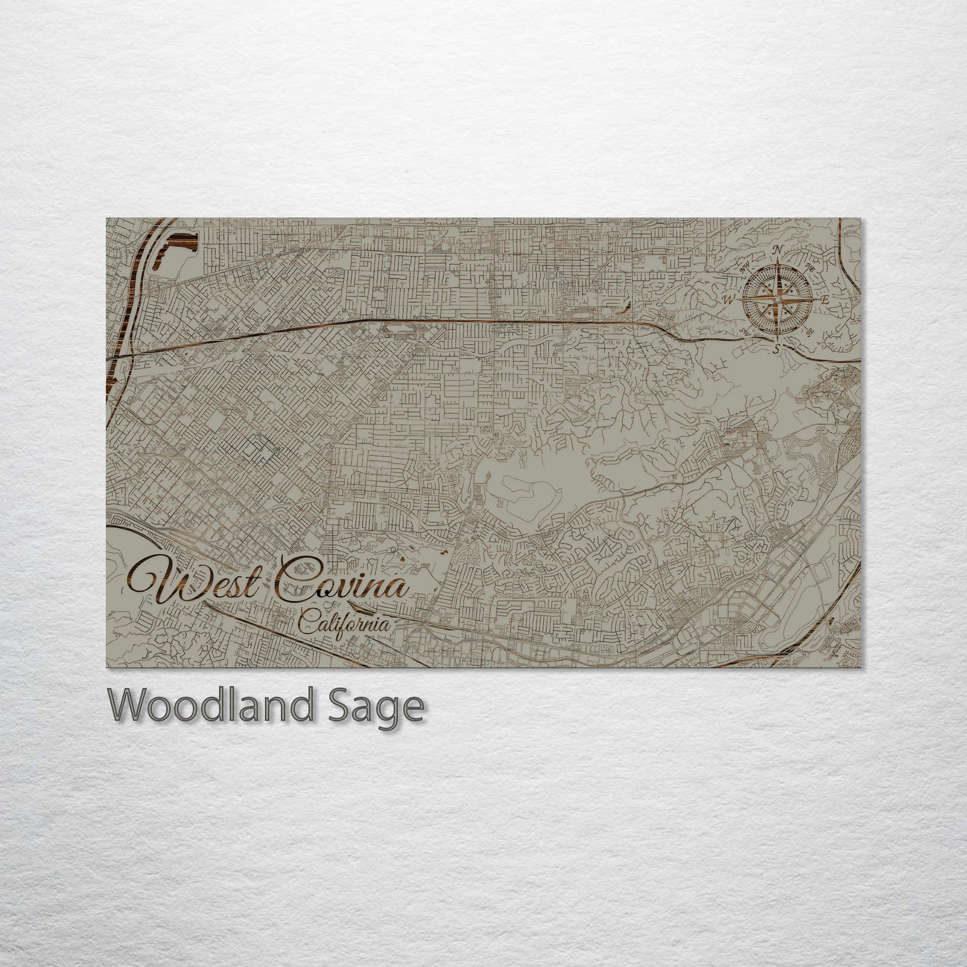 This is a street map of West Covina, CA designed by Fire & Pine artists.