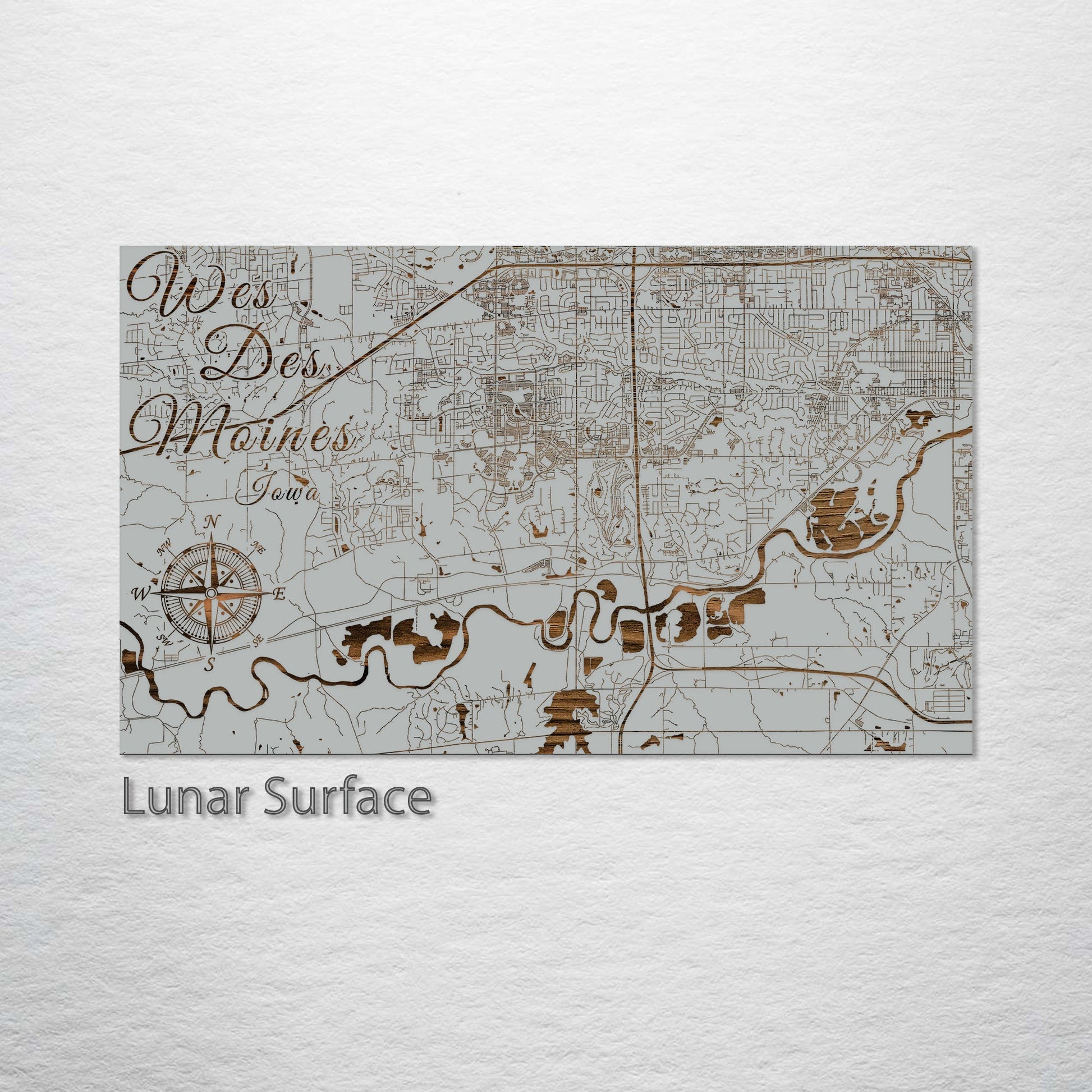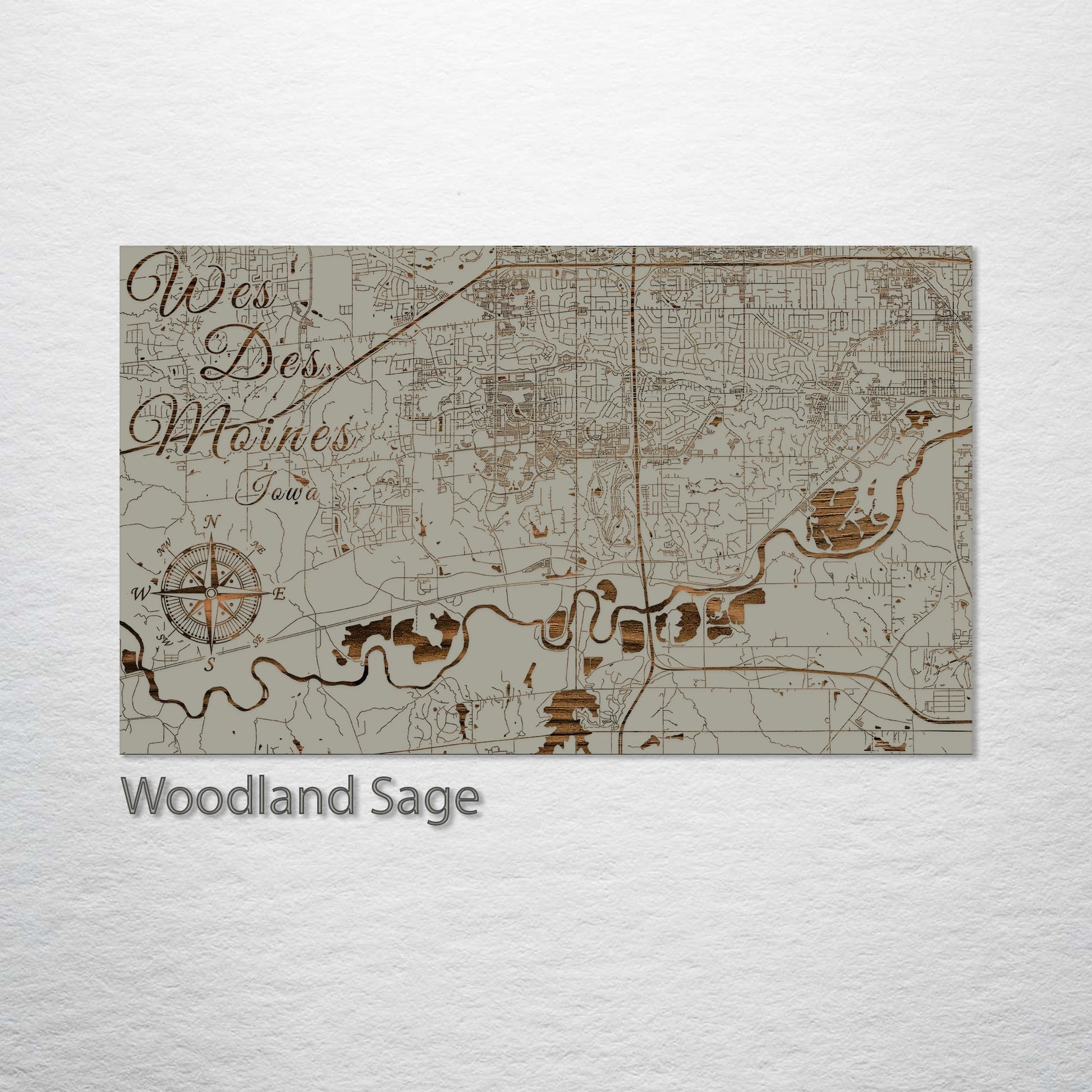 This is a street map of West Des Moines, IA designed by Fire & Pine artists.