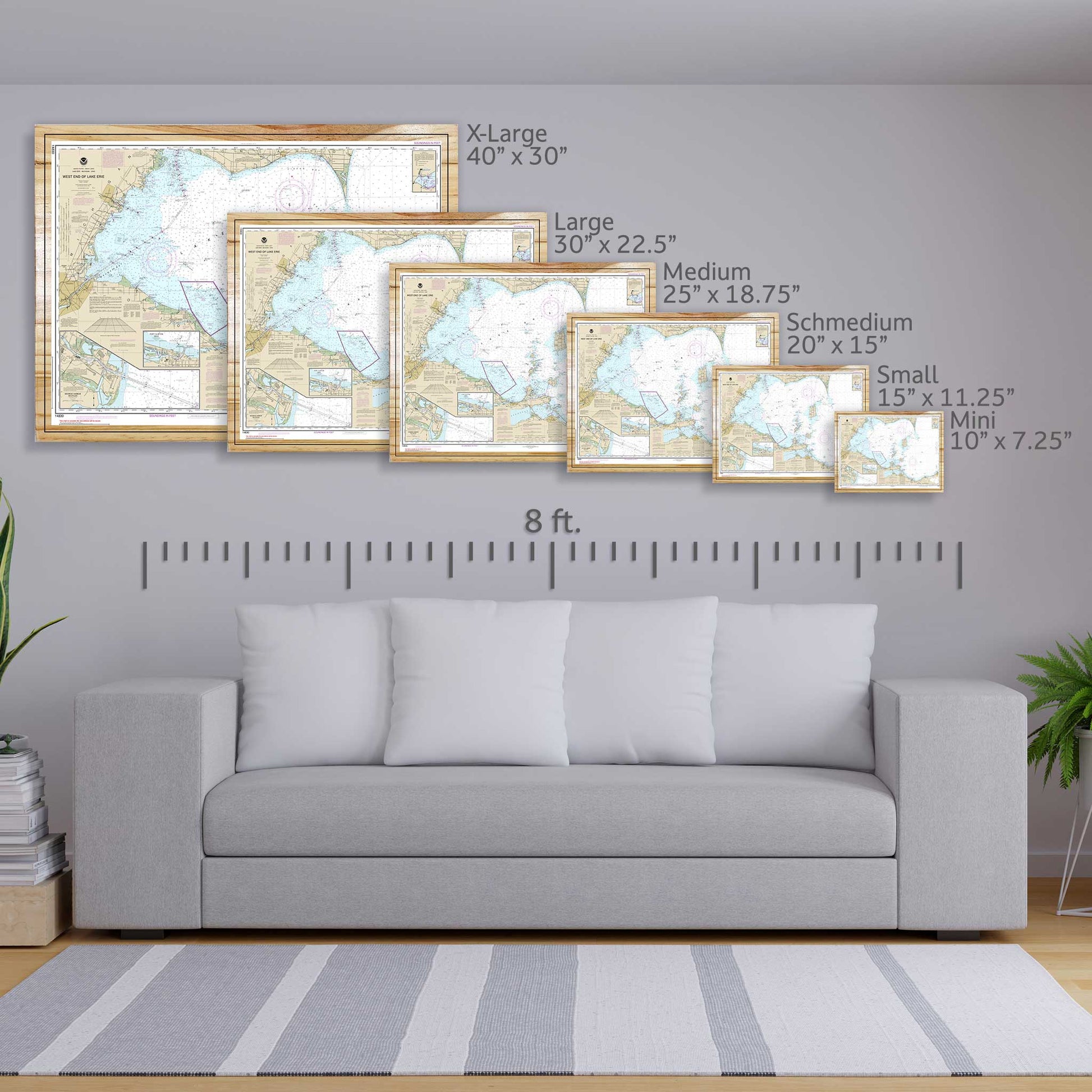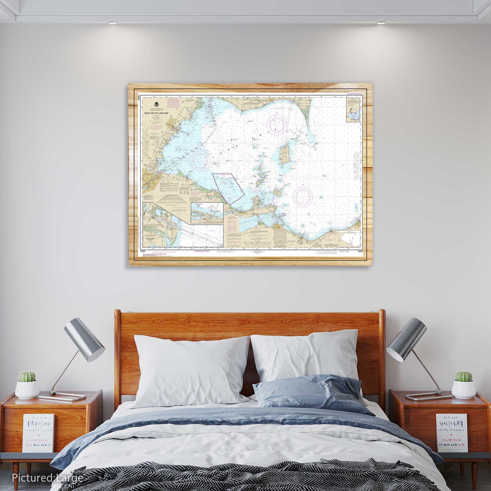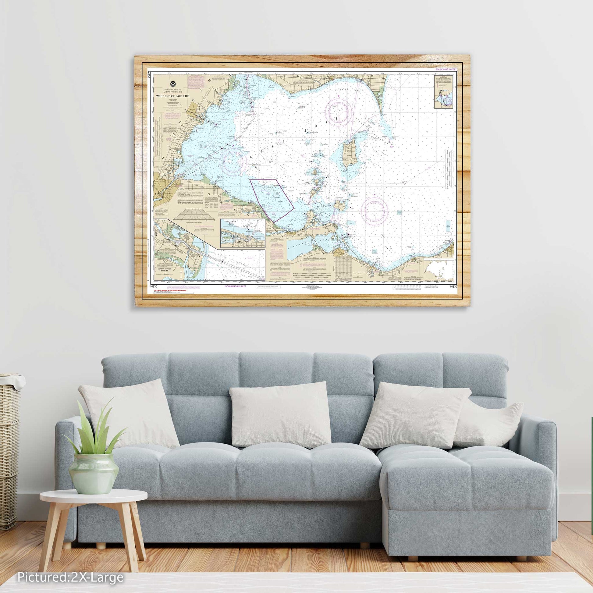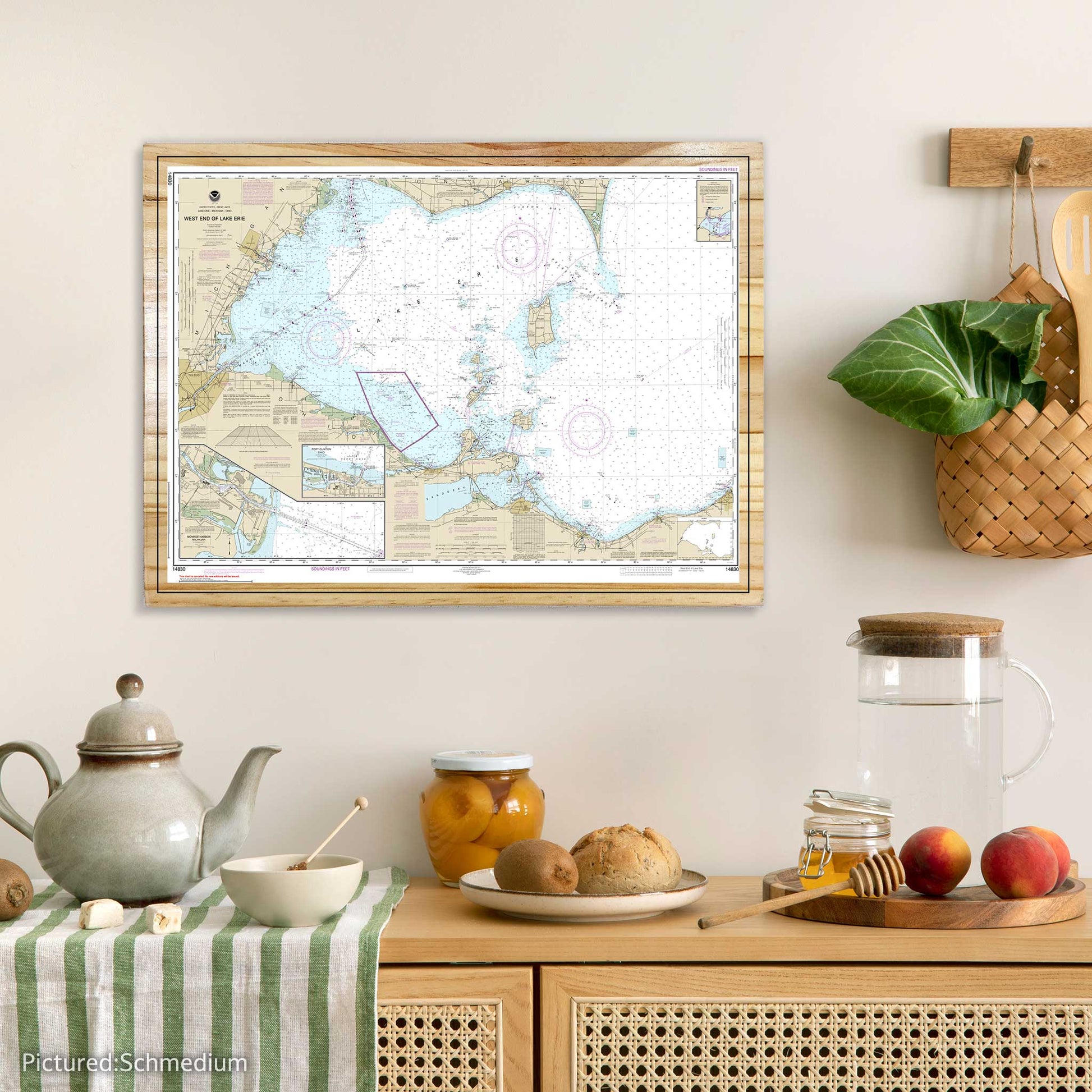 Ideal for Lake Erie Admirers: The West End of Lake Erie Nautical Map (NOAA), artistically printed on high-grade pine wood, is an excellent addition for those who appreciate the beauty and intricacies of lake geography and nautical charting. This piece, showcasing the west end of Lake Erie, is brought to life with exquisite detail, making it a prominent and unique item in any collection. It's particularly appealing to enthusiasts of the Great Lakes, boating, and maritime history.