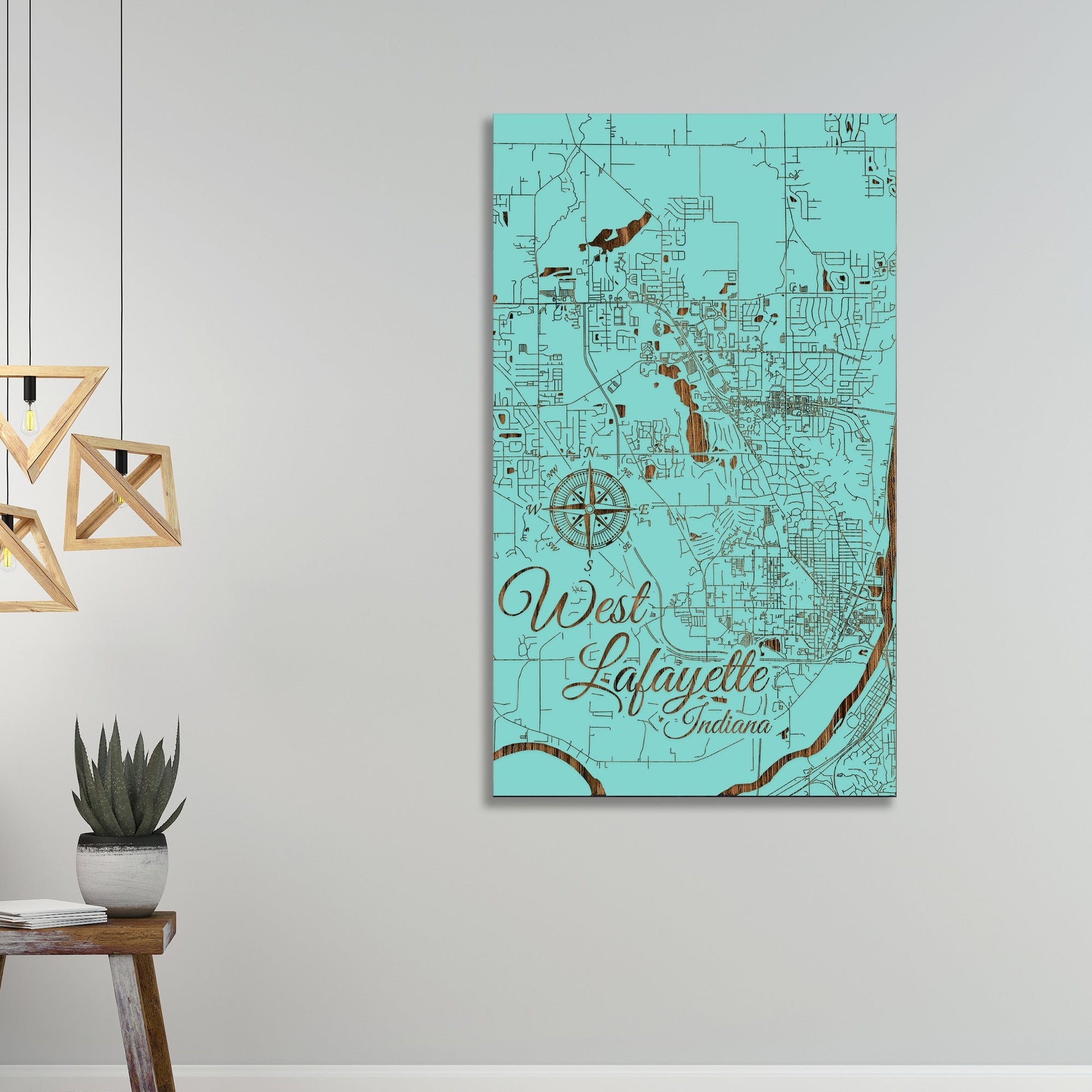 This West Lafayette, Indiana street map wood-engraved wall art is a unique and exceptional gift for map enthusiasts. The intricate details are brought to life on high-quality pine wood, making it a standout piece. It’s an ideal gift for anyone interested in cartography or the charming town of West Lafayette.