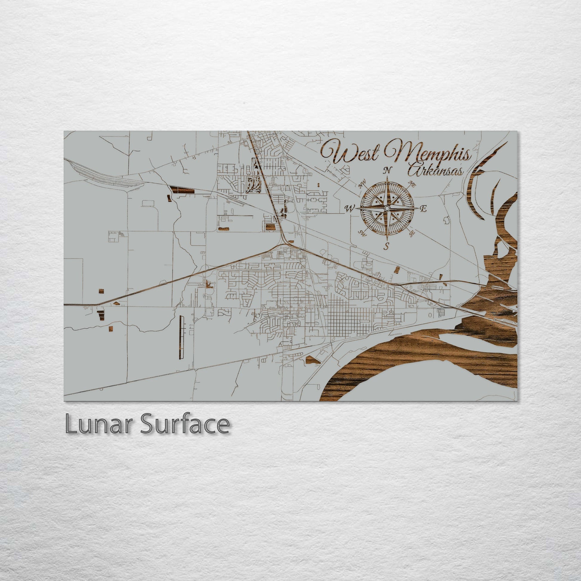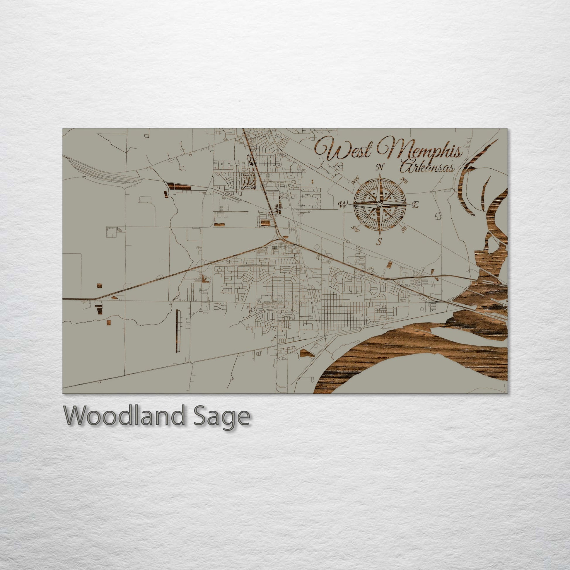 This is a street map of West Memphis, AR designed by Fire & Pine artists.