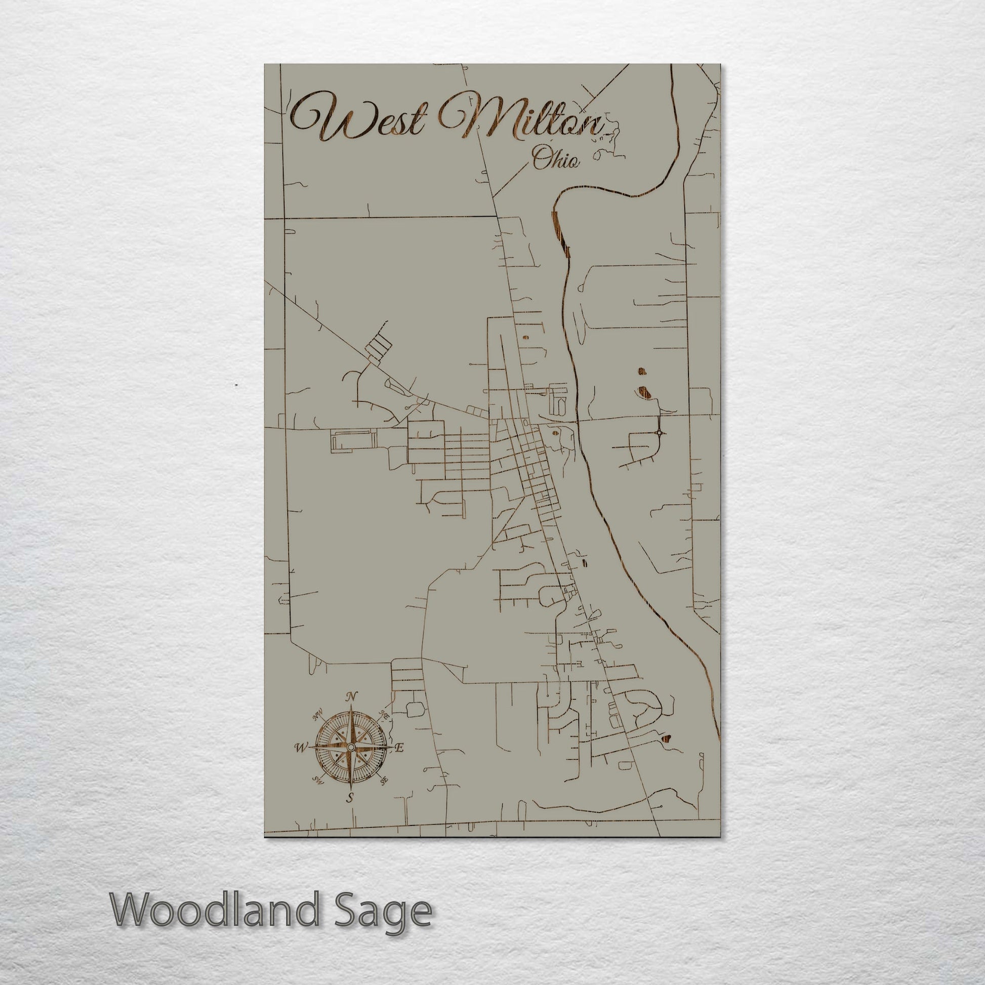 This is a street map of West Milton, OH designed by Fire & Pine artists.