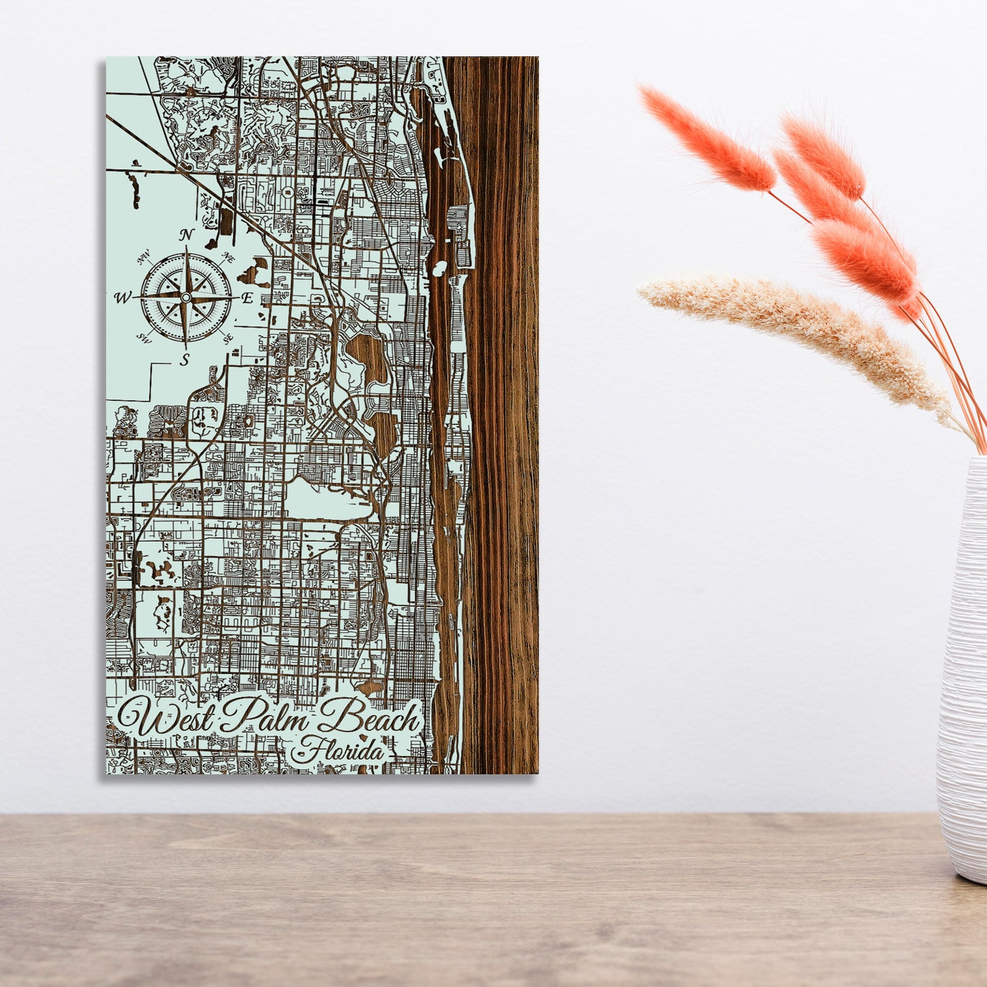 HIGH QUALITY: Precision-driven, the streets of West Palm Beach are expertly engraved into durable pine wood, ensuring both lasting quality and intricate detail.