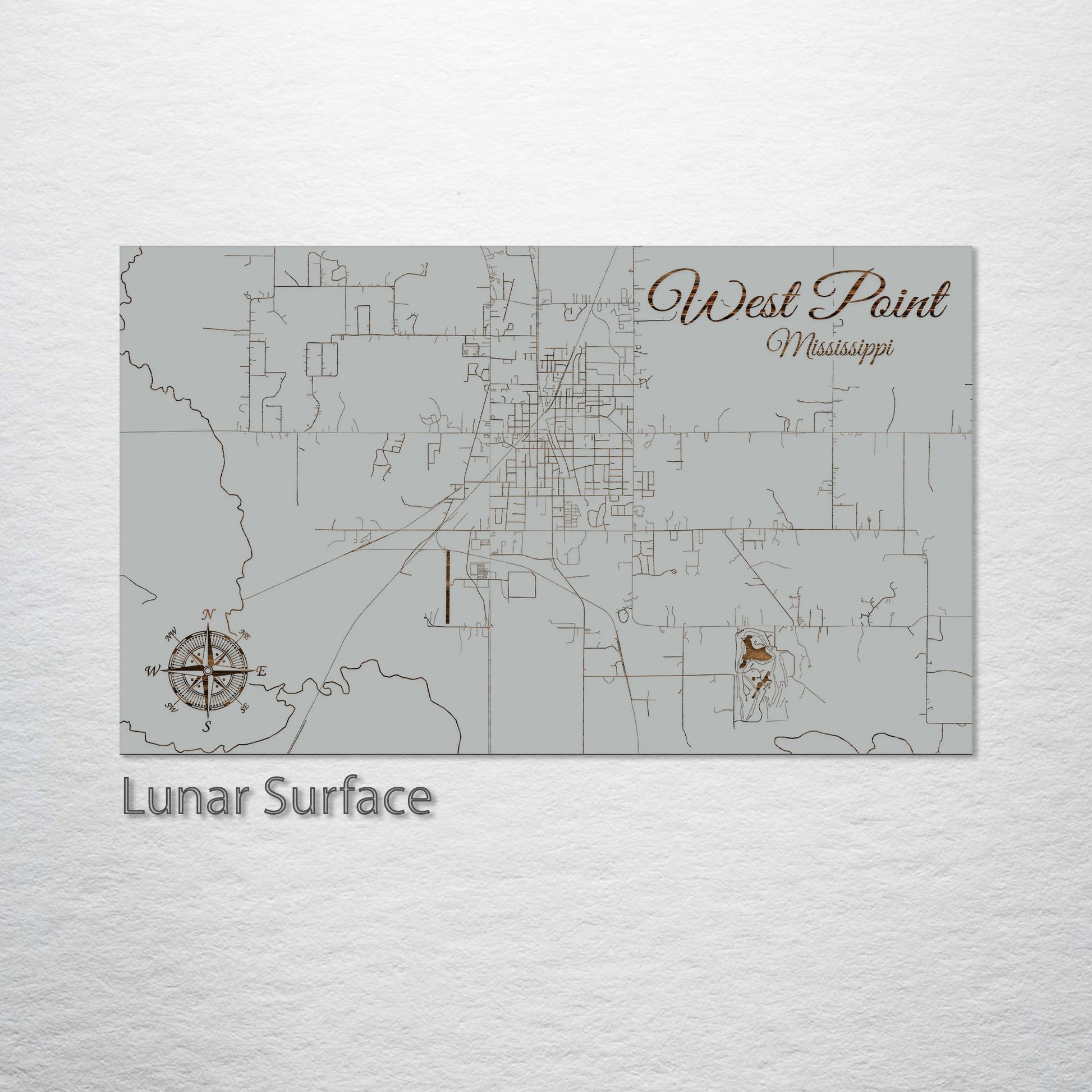This is a street map of West Point, MS designed by Fire & Pine artists.