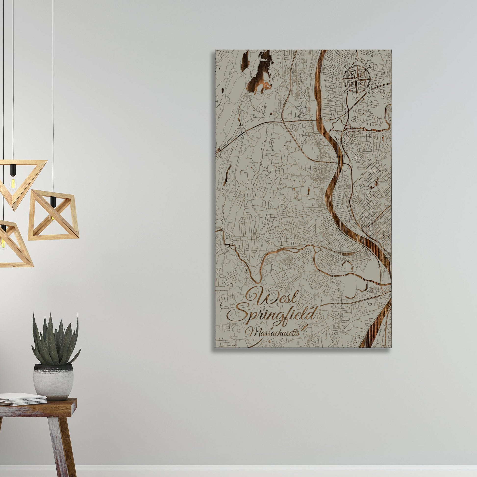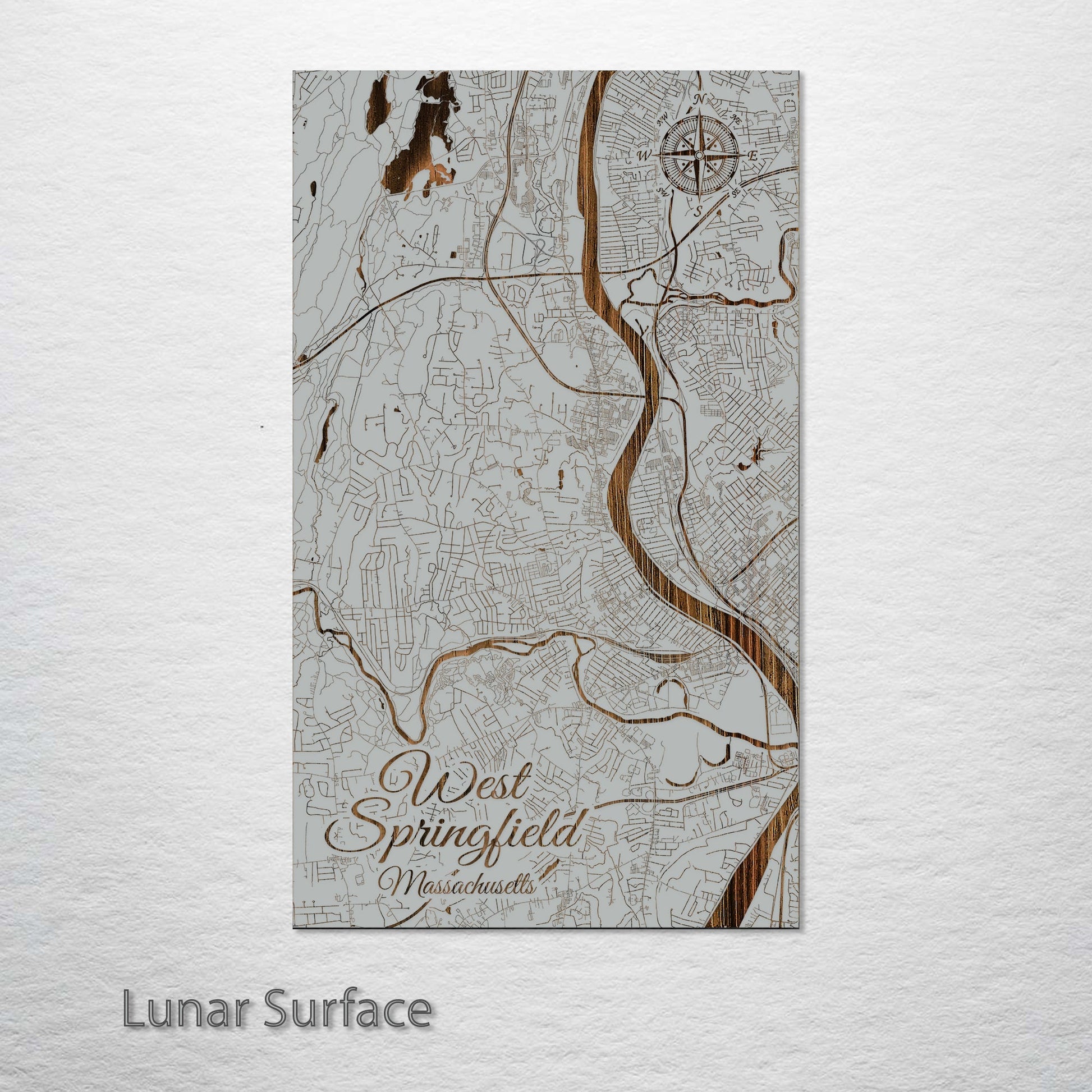 This is a street map of West Springfield, MA designed by Fire & Pine artists.