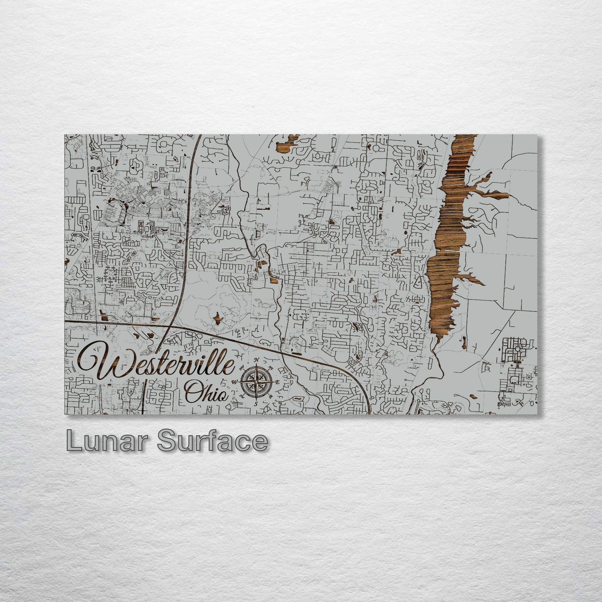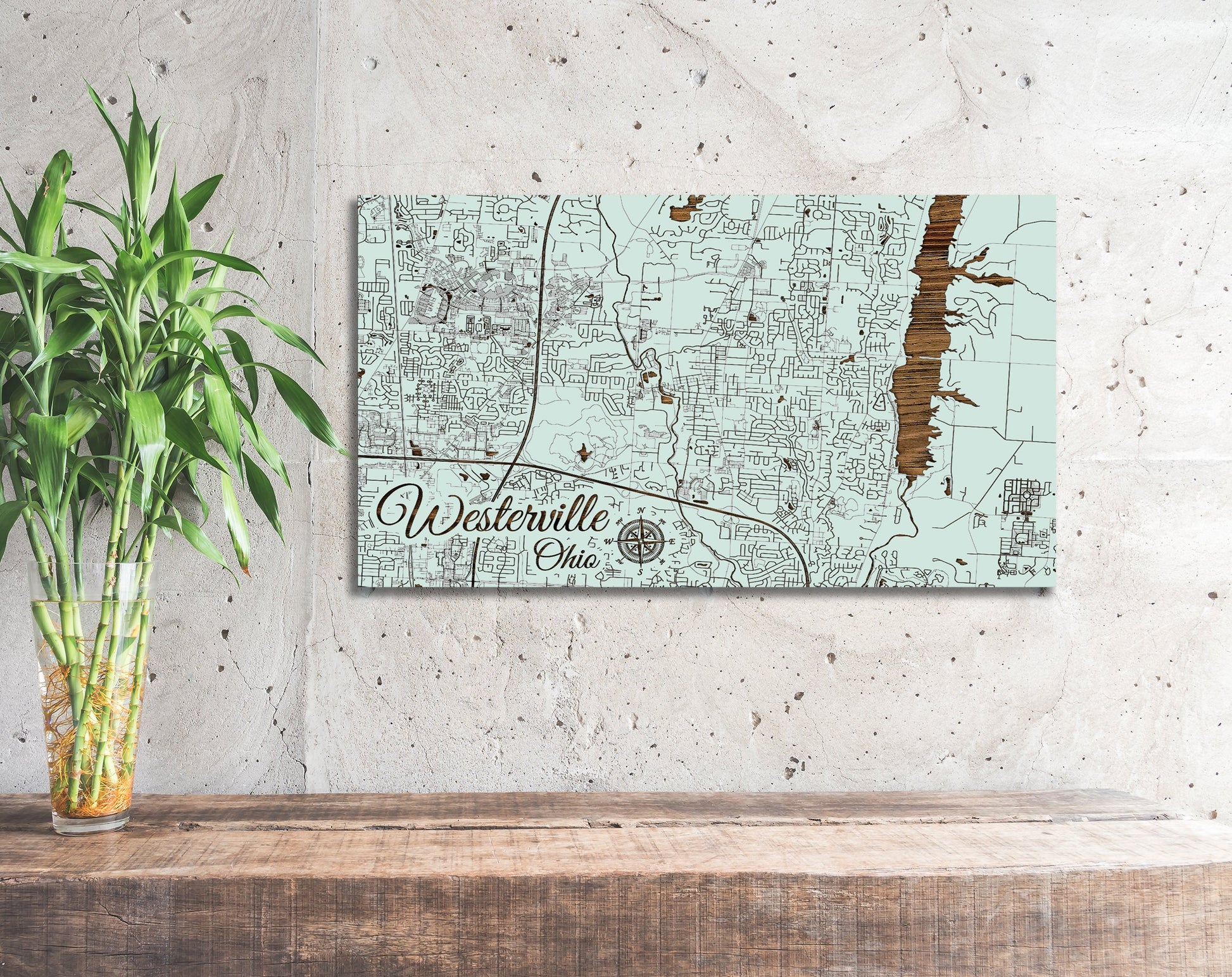Charming Gift for Admirers of Geographic Artistry: This wood-engraved Westerville, Lakeside, Ohio street map is a remarkable addition to any art collection. With meticulous craftsmanship from high-grade pine wood, the elaborate details of the streets and lakeside areas are intricately captured, presenting a visually appealing piece. It's perfect for those who have a special interest in the artistic representation of geographic layouts and maps.