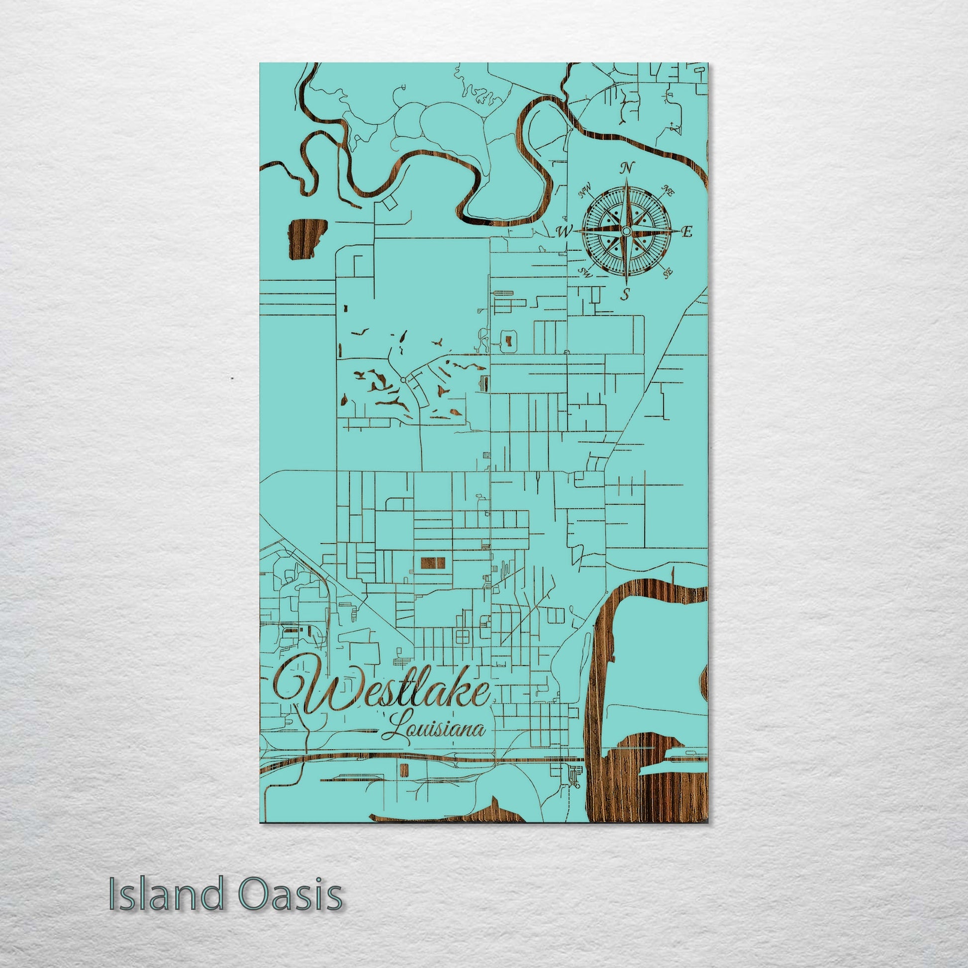 This is a street map of Westlake, LA designed by Fire & Pine artists.