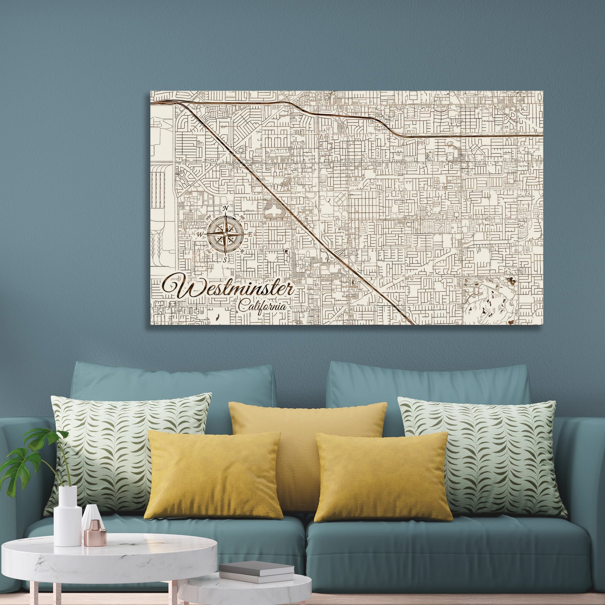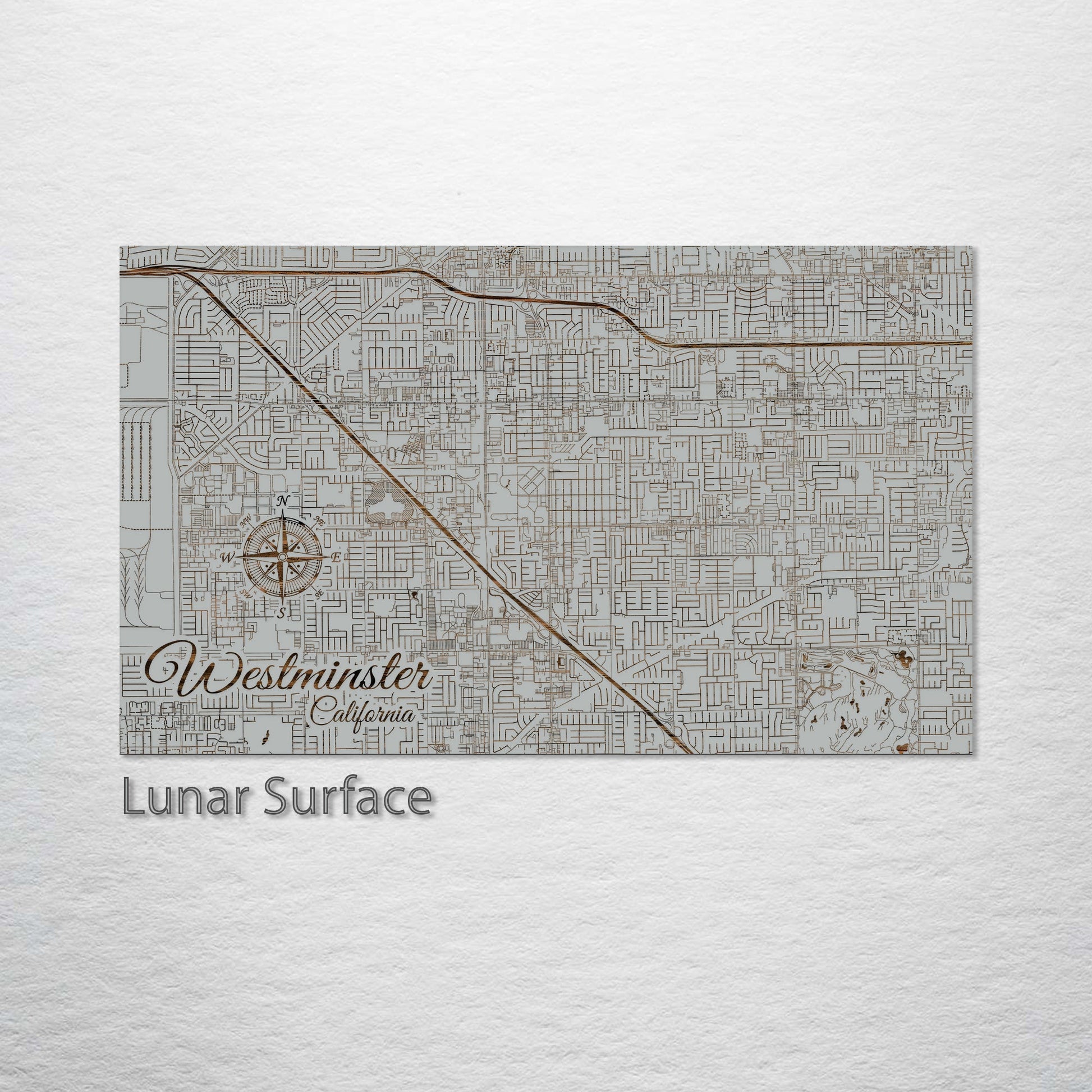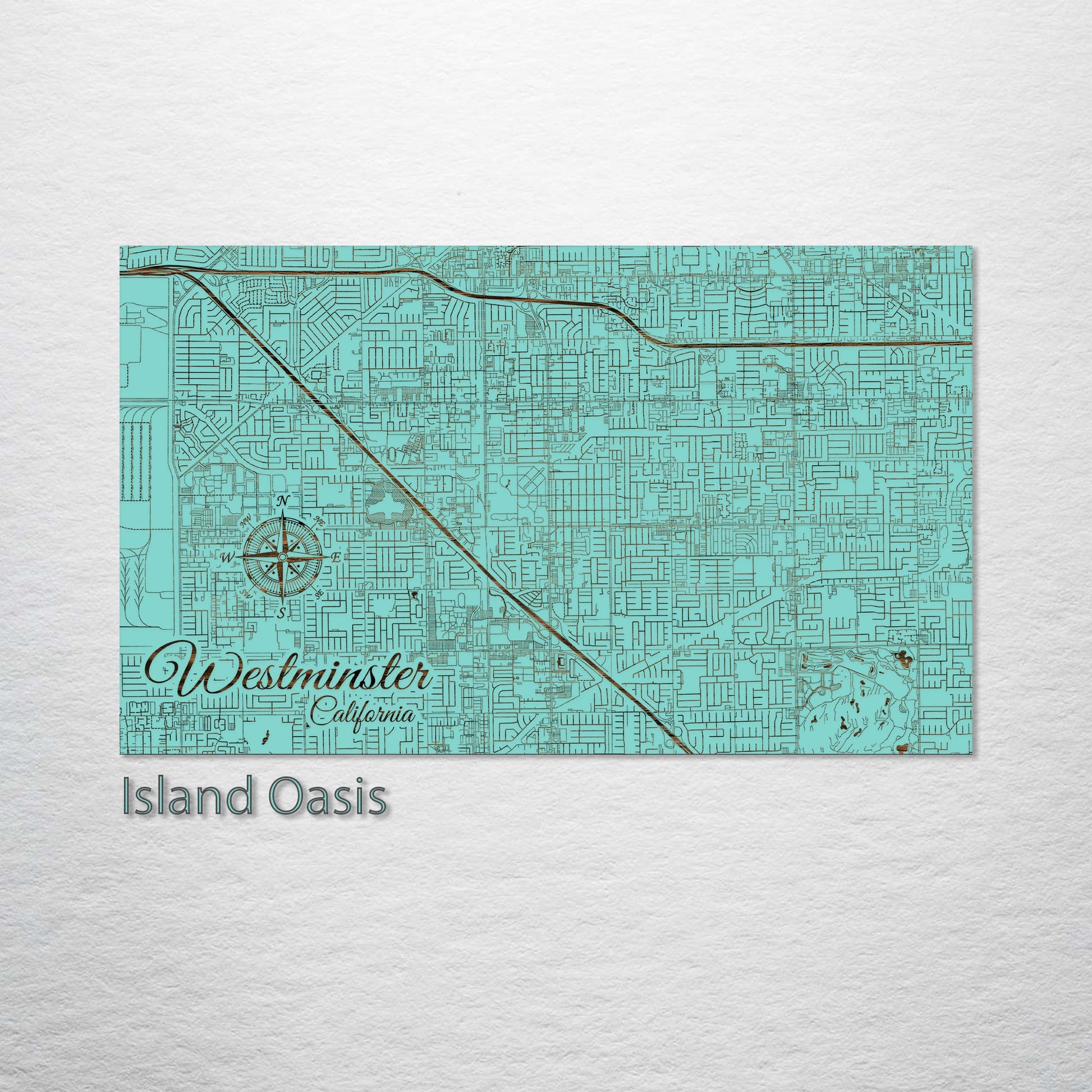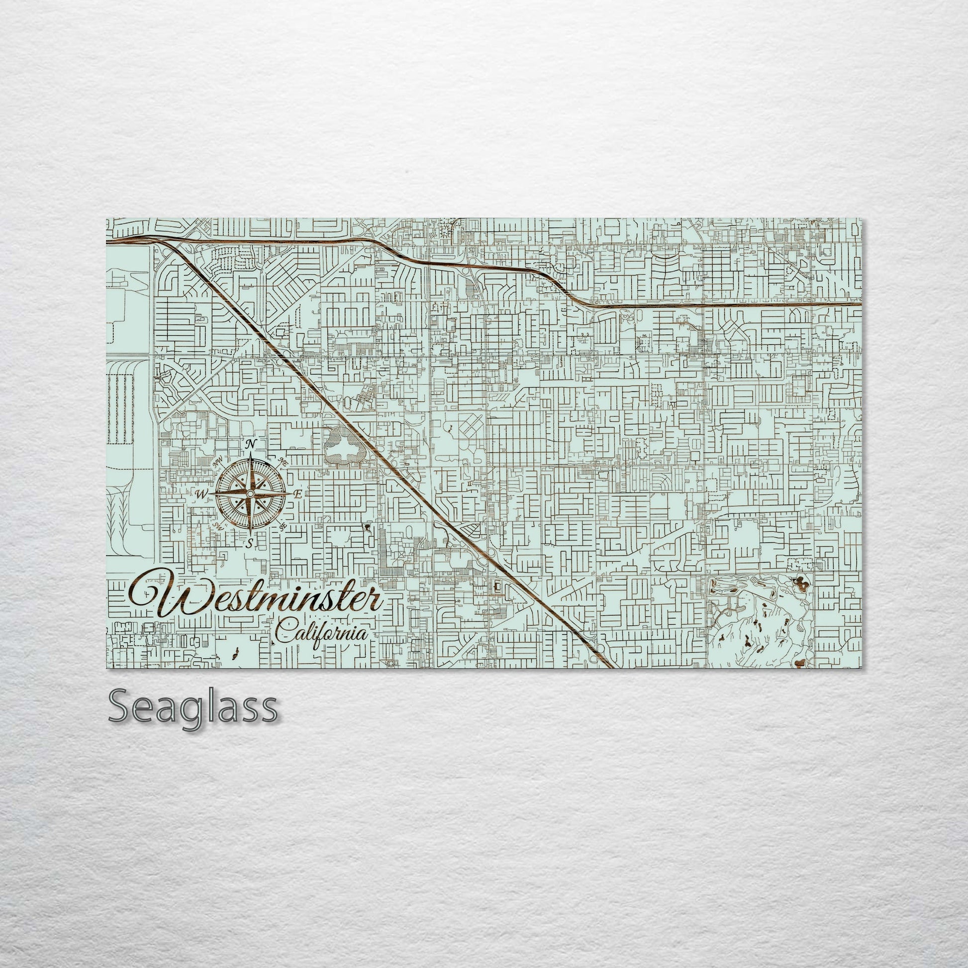 This is a street map of Westminster, CA designed by Fire & Pine artists.