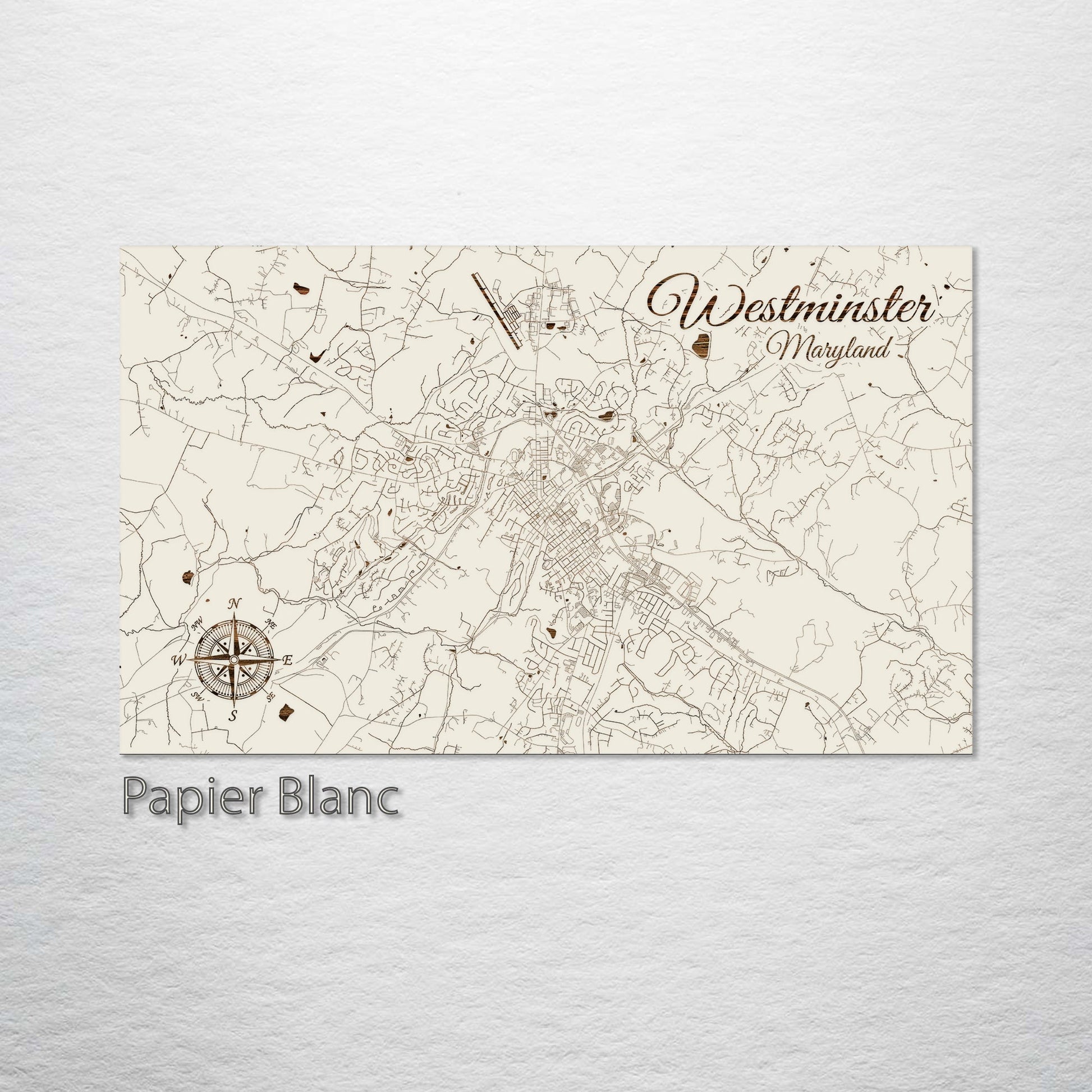 This is a street map of Westminster, MD designed by Fire & Pine artists.