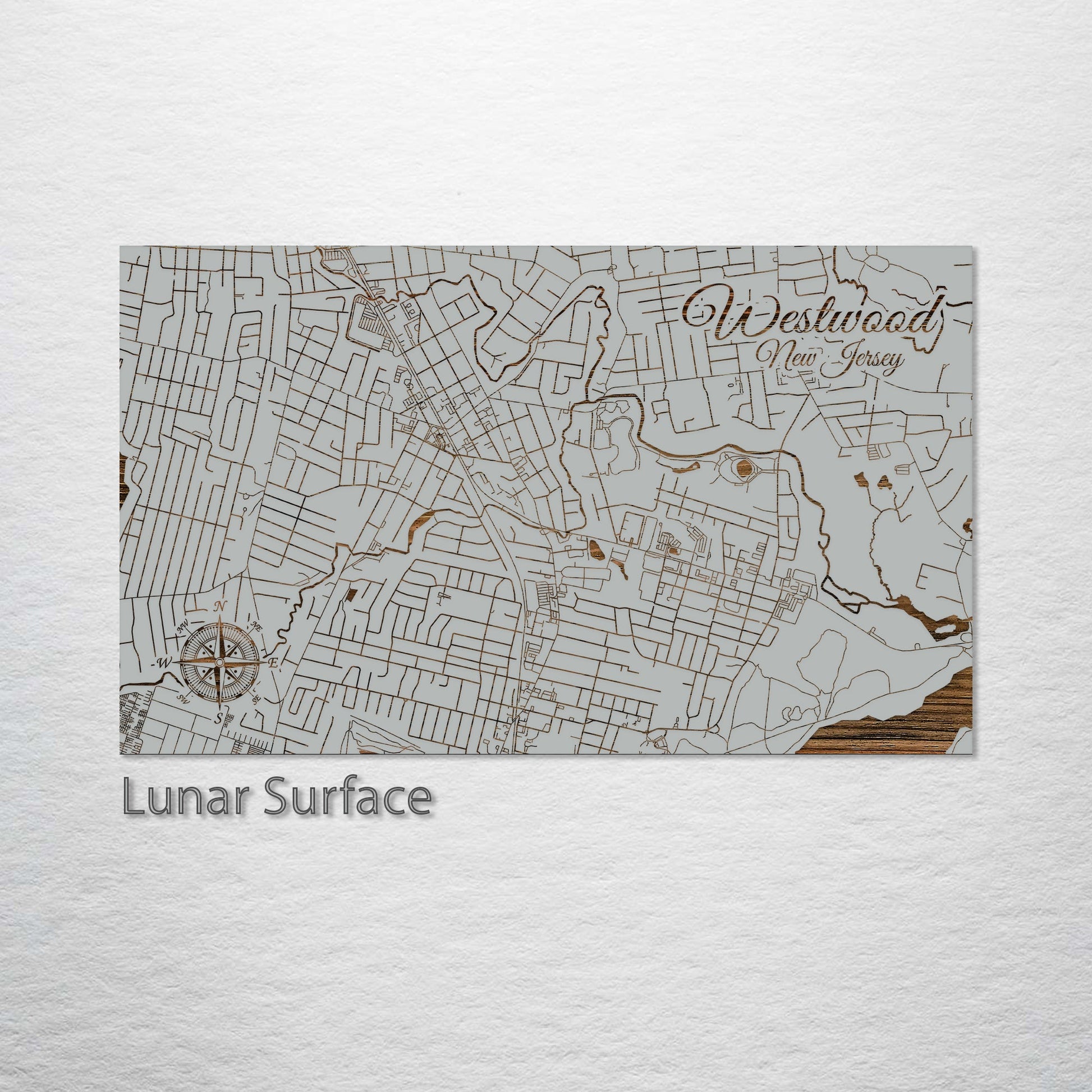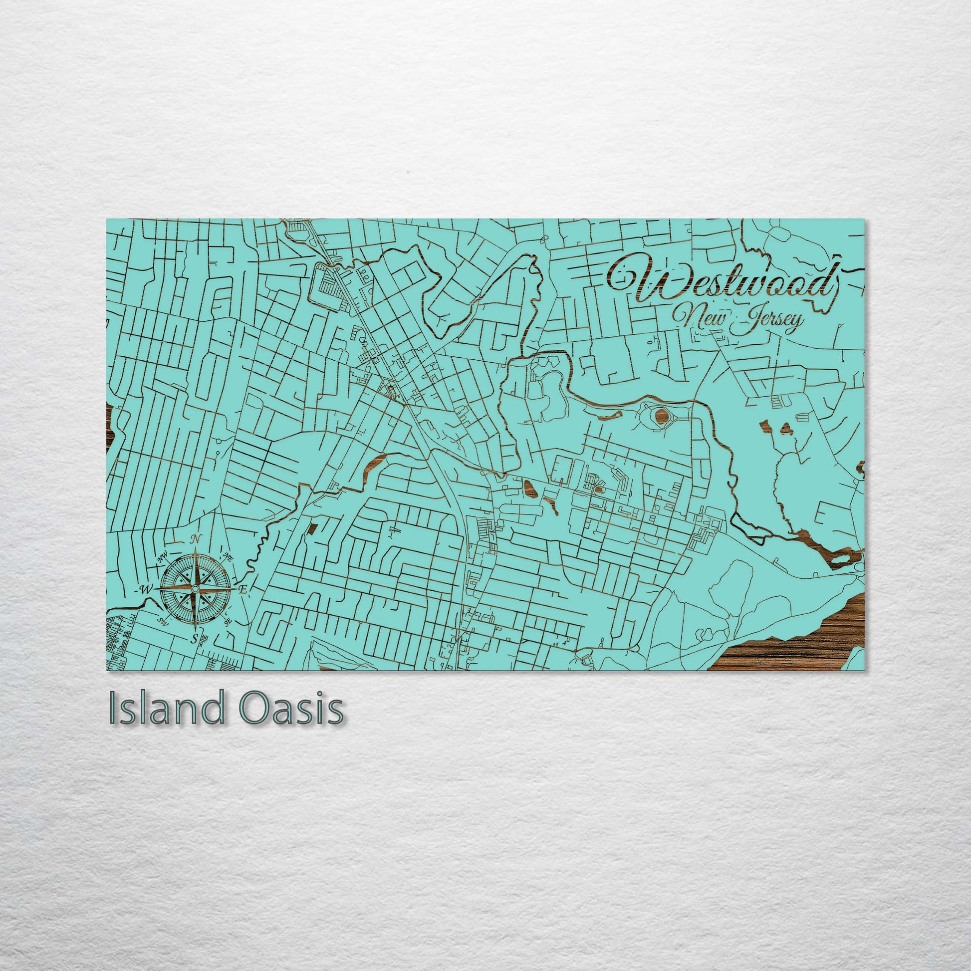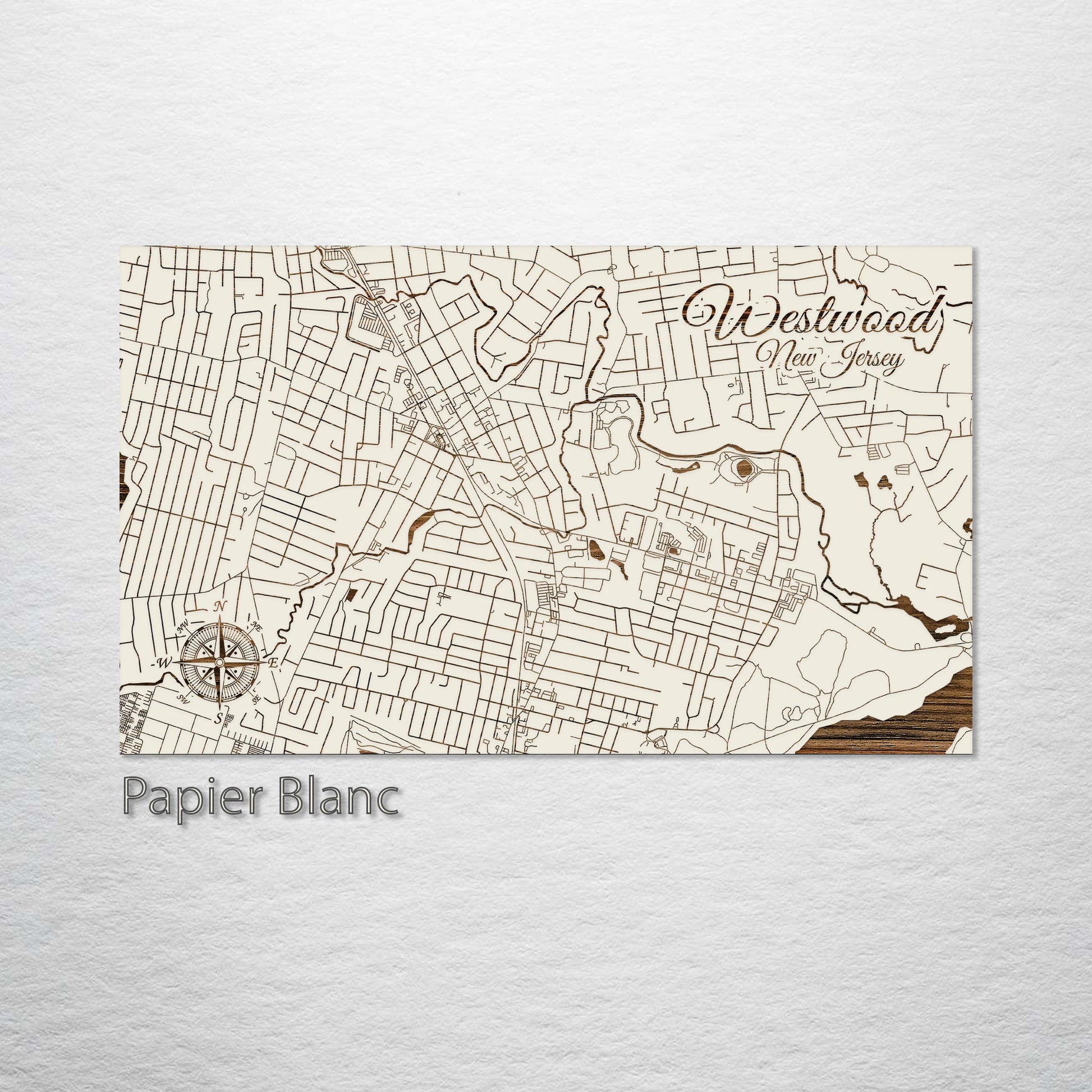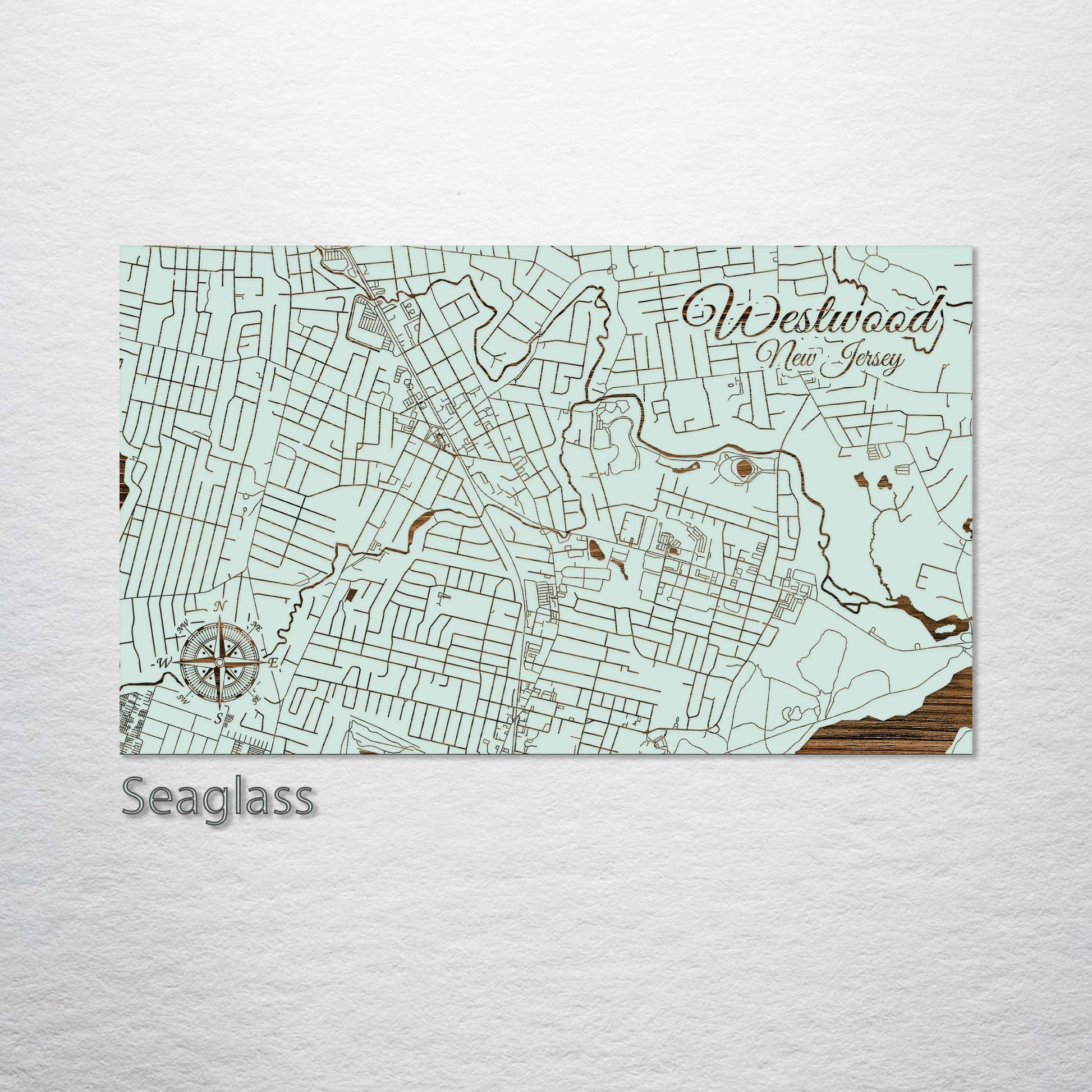 This is a street map of Westwood, NJ designed by Fire & Pine artists.