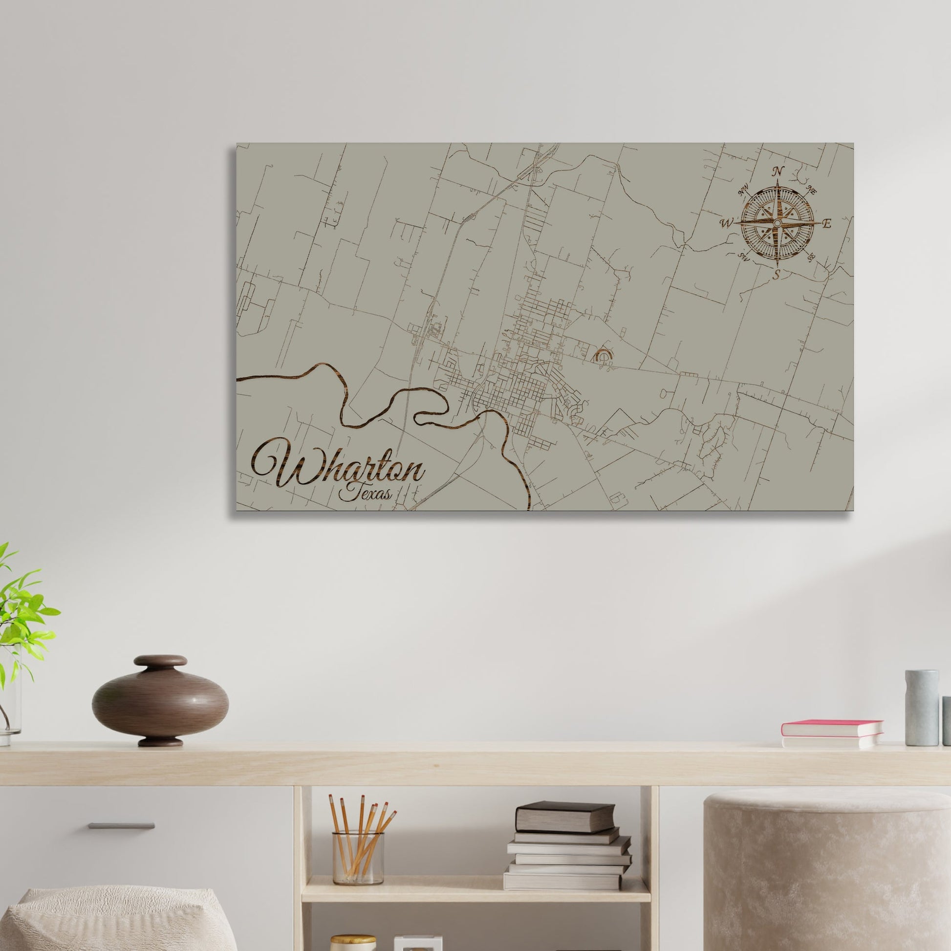 This is a street map of Wharton, TX designed by Fire & Pine artists.