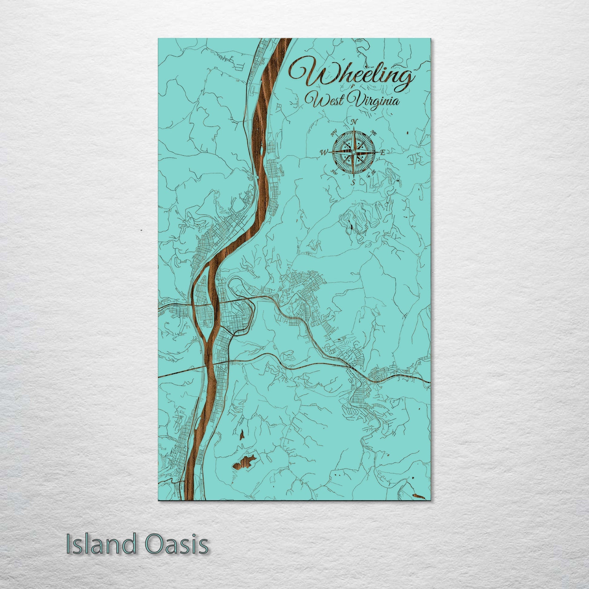 This is a street map of Wheeling, WV designed by Fire & Pine artists.