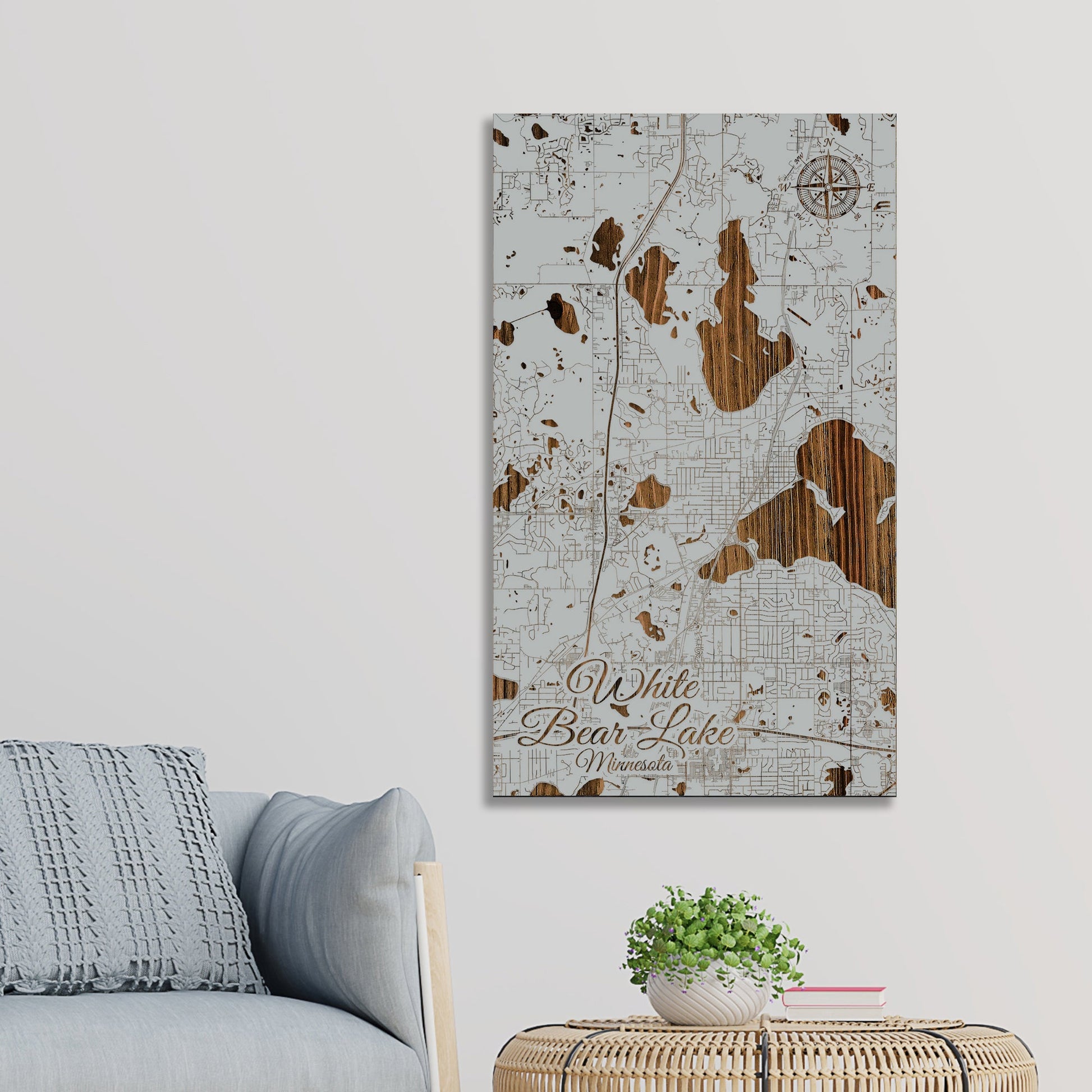 This is a street map of White Bear Lake, MN designed by Fire & Pine artists.