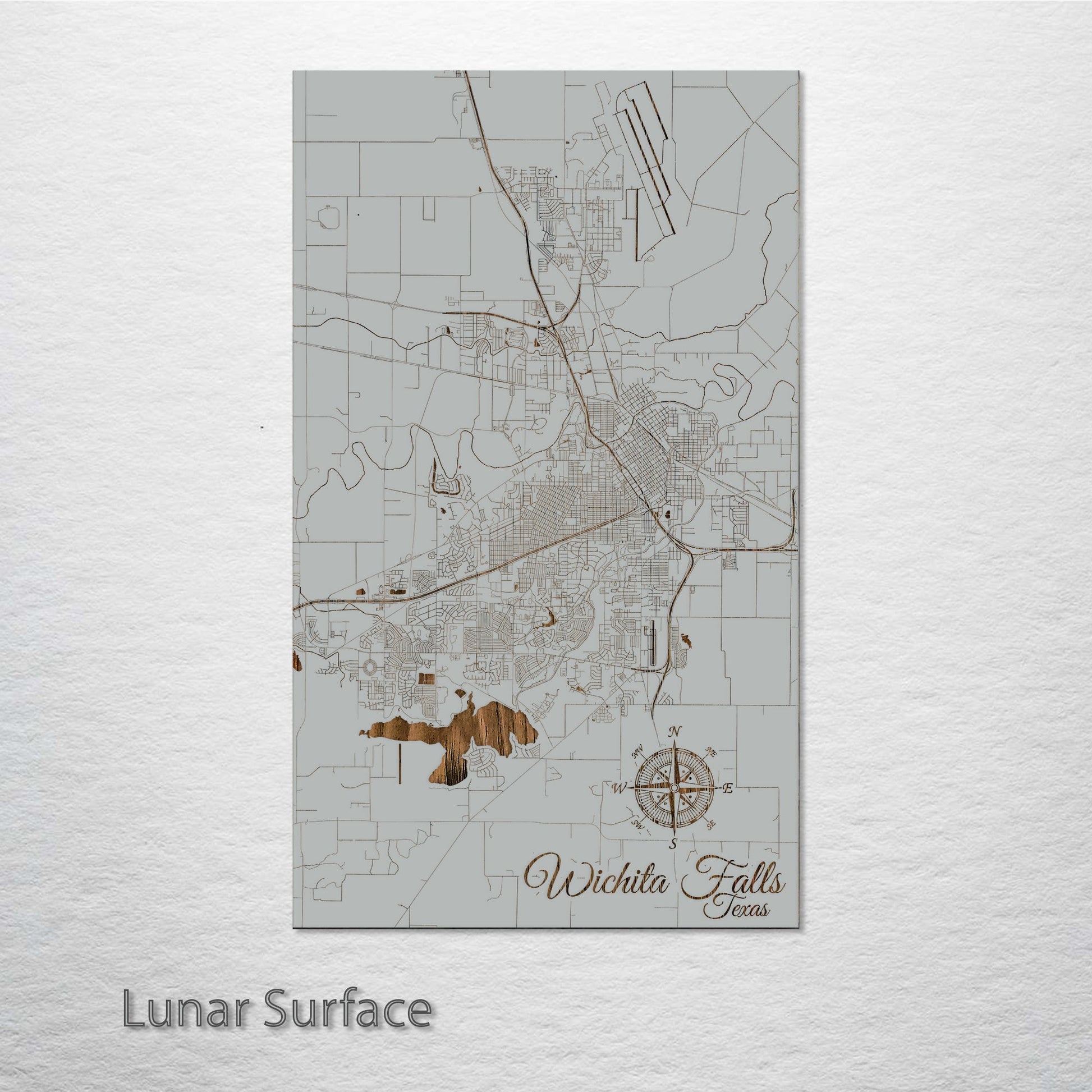Unique gift for cartography enthusiasts: Dive into the detailed streets of Wichita Falls, Texas with this wood-engraved art piece. Crafted meticulously on high-quality pine wood, it captures the intricate roadways, presenting a perfect piece for those with a connection to Wichita Falls or an affinity for geographical intricacies.