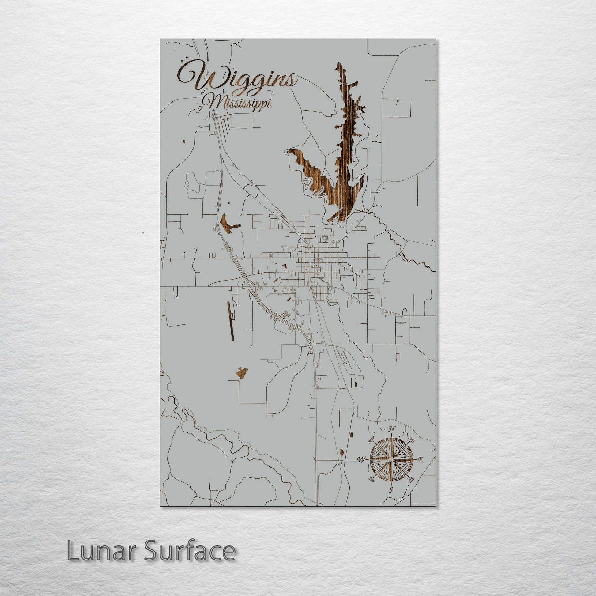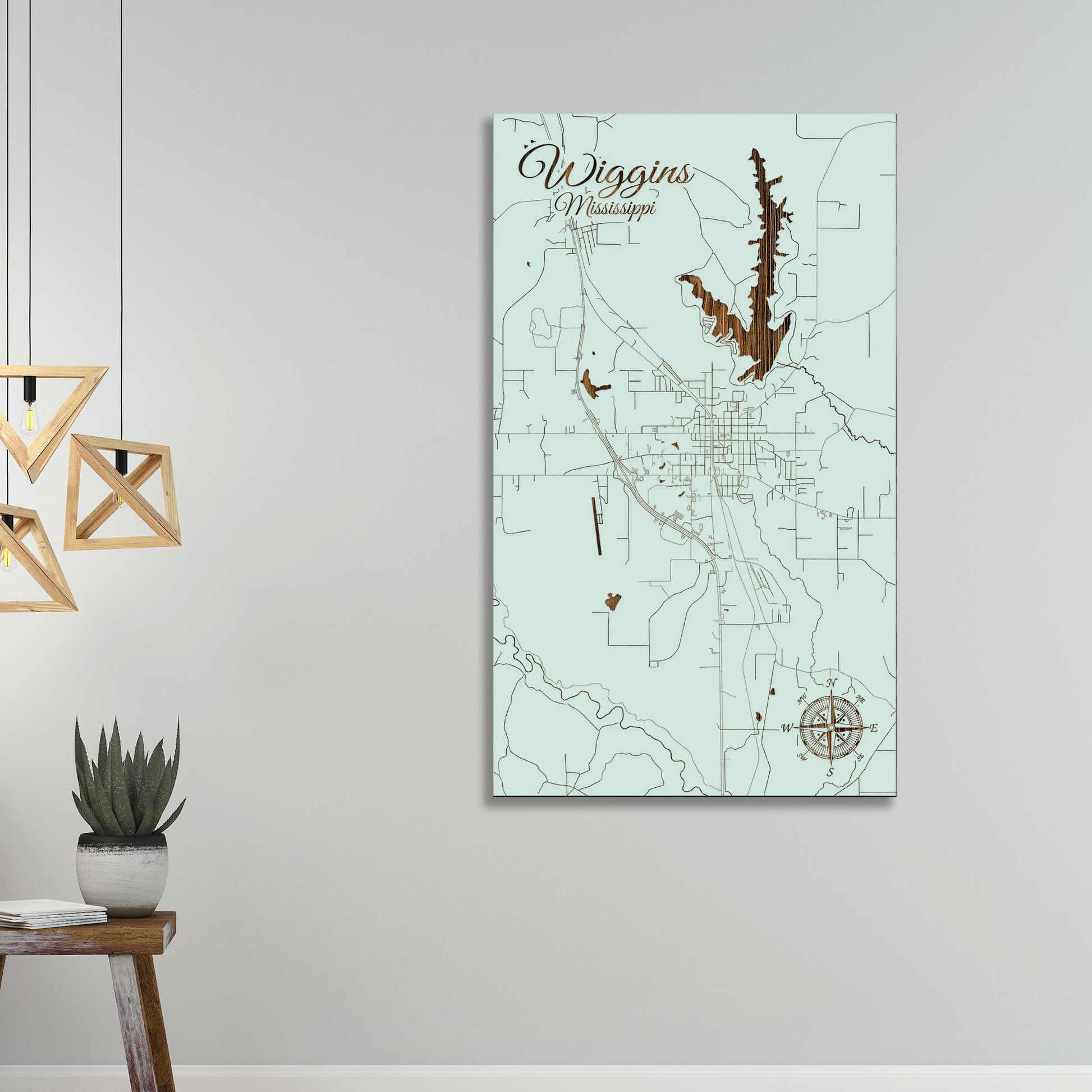 This is a street map of Wiggins, MS designed by Fire & Pine artists.