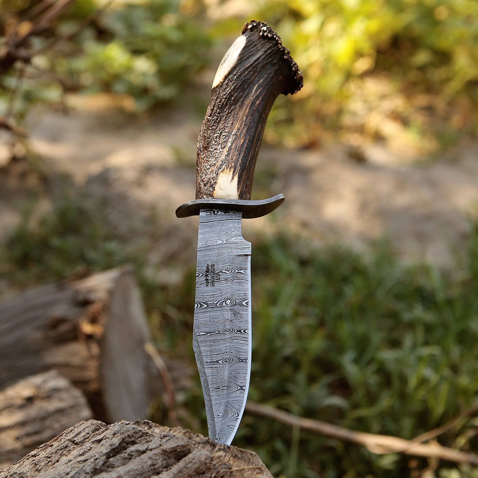 Wildfire Damascus Bowie Knife with Stag Horn Handle