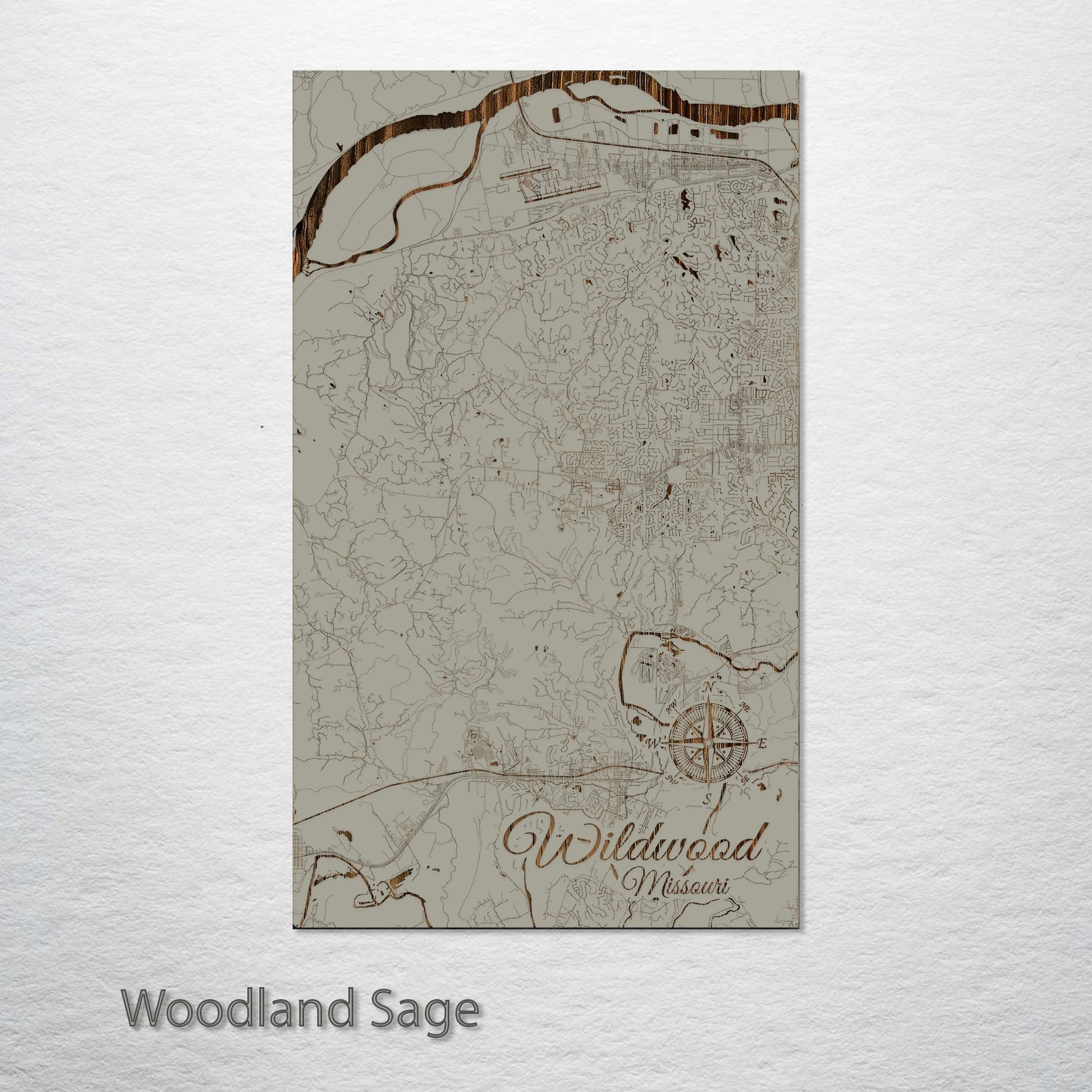 This is a street map of Wildwood, MO designed by Fire & Pine artists.