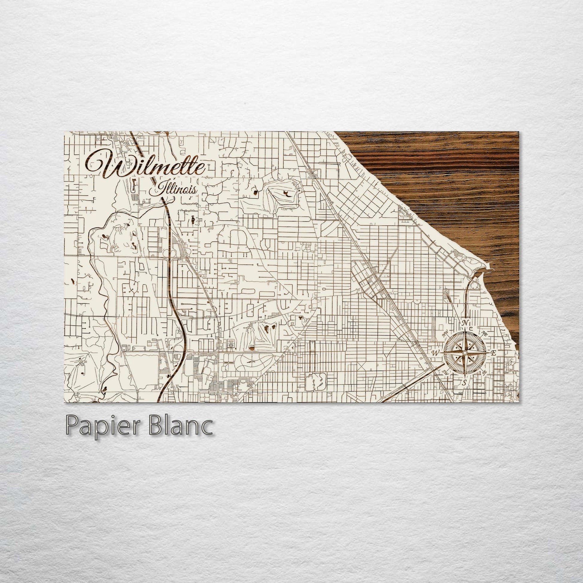 This is a street map of Wilmette, IL designed by Fire & Pine artists.