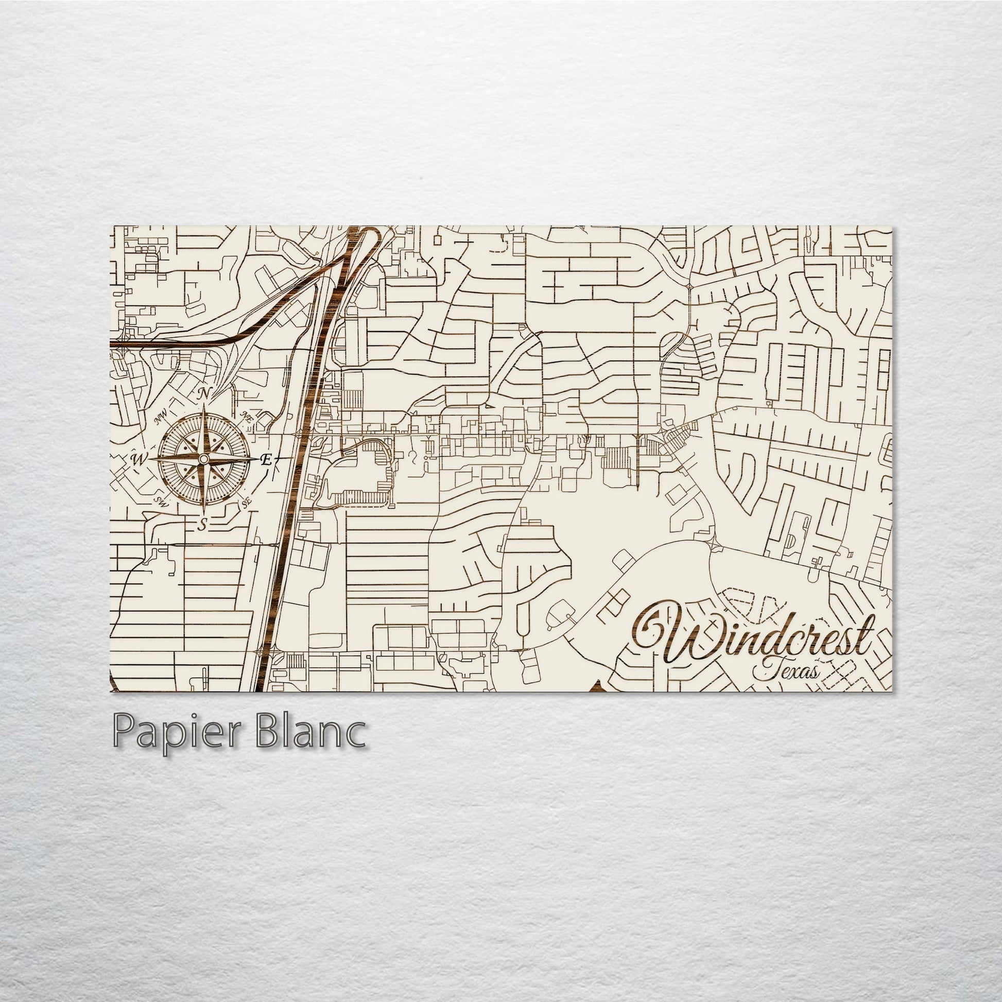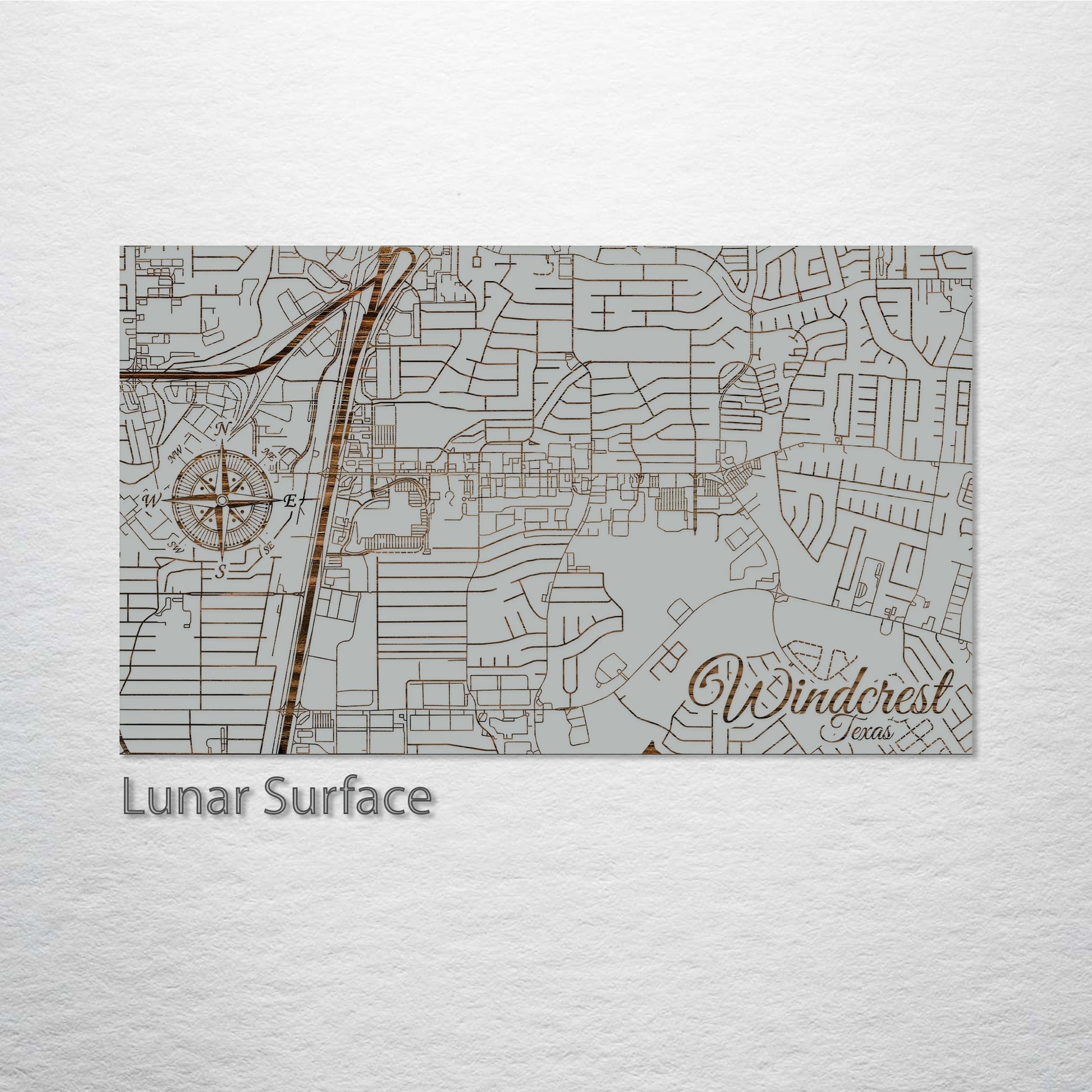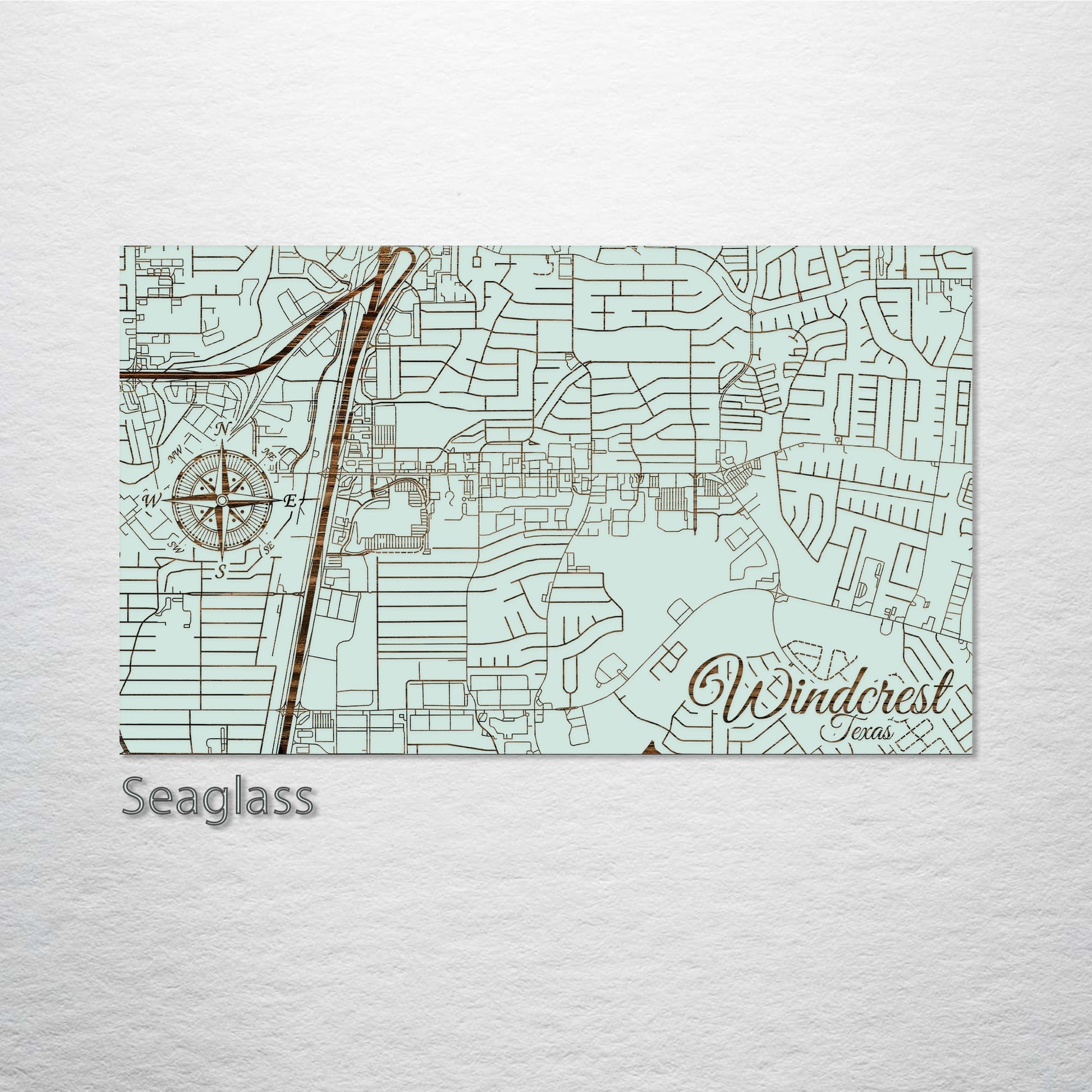 This is a street map of Windcrest, TX designed by Fire & Pine artists.