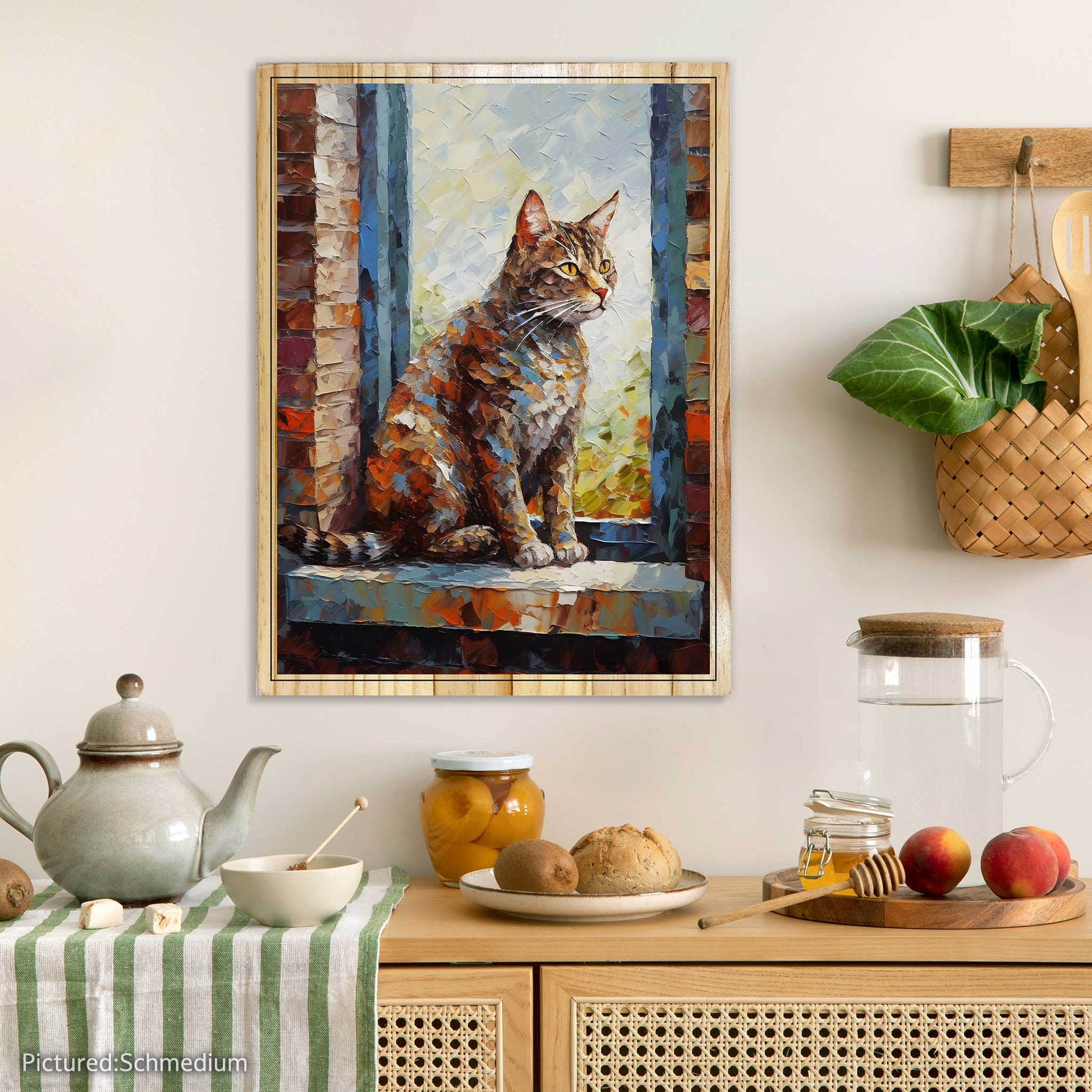 The 'Window Cat' print is an ideal choice for cat lovers seeking unique wall decor, animal-inspired artwork, or wood-printed masterpieces. Let the 'Window Cat' pine wood art print infuse your space with a sense of calm and homey charm, adding a touch of painterly beauty to your decor.