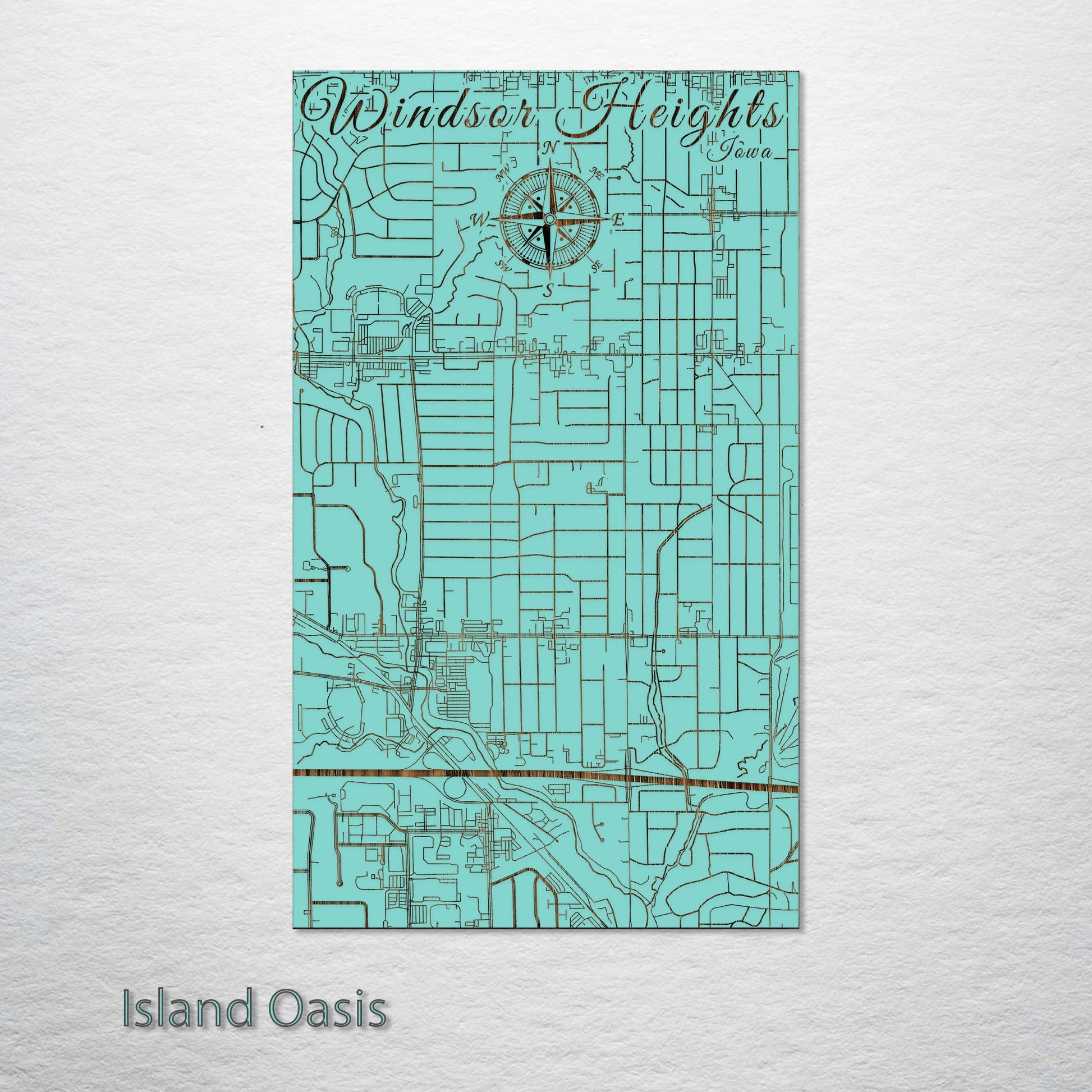 This is a street map of Windsor Heights, IA designed by Fire & Pine artists.