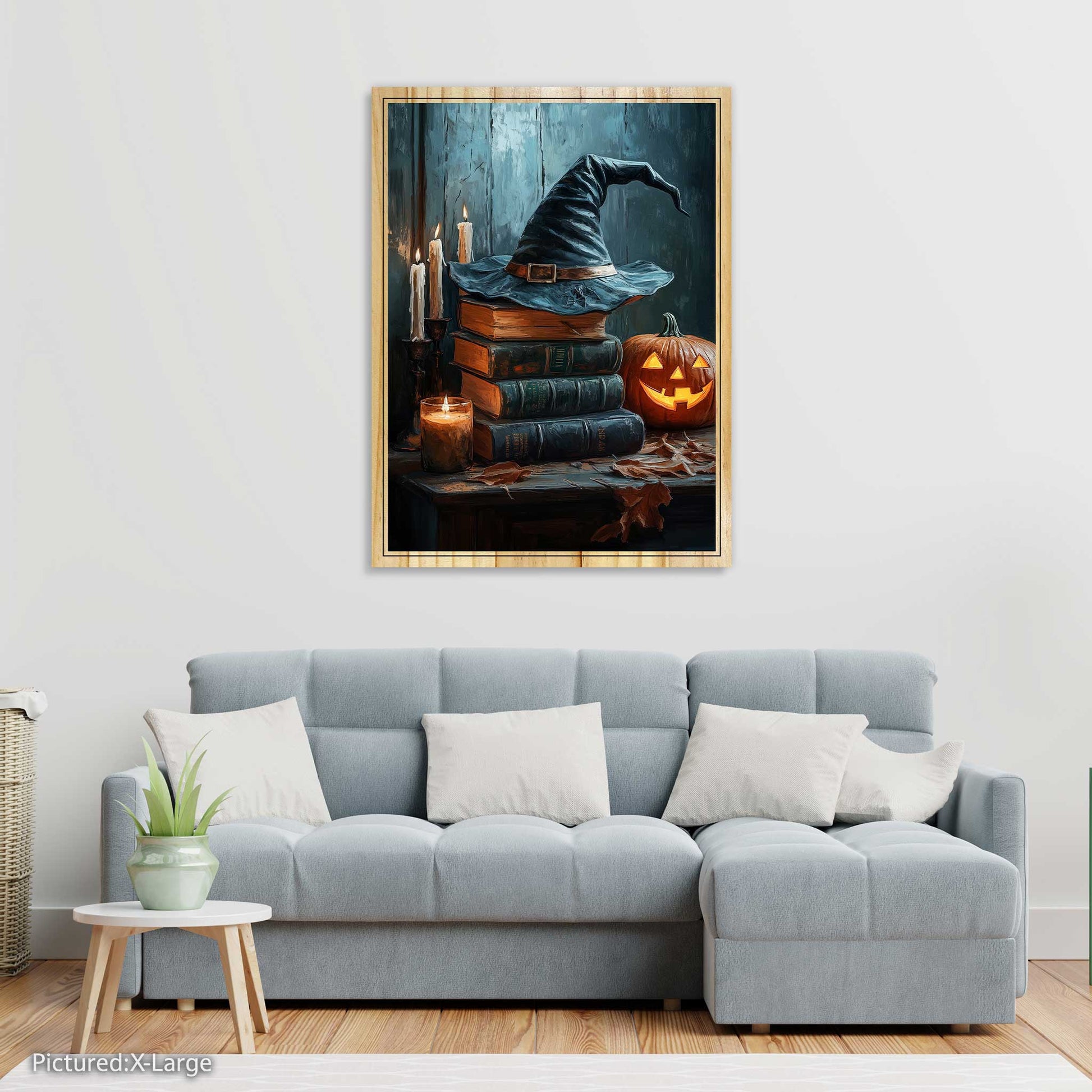 Bring the magic of Halloween into your home with our Witch’s Study artwork, beautifully showcased on premium pine wood. Available in both flat and elevated print styles, this piece lets you create the perfect seasonal atmosphere. With advanced printing techniques, every detail stands out—from the flickering candlelight and timeworn spell books to the grinning jack-o’-lantern and weathered witch’s hat. Crafted on durable pine wood, this artwork is built to last, making it a timeless addition to your Halloween décor for years to come. Each piece is carefully inspected to ensure the highest quality before it reaches your home.