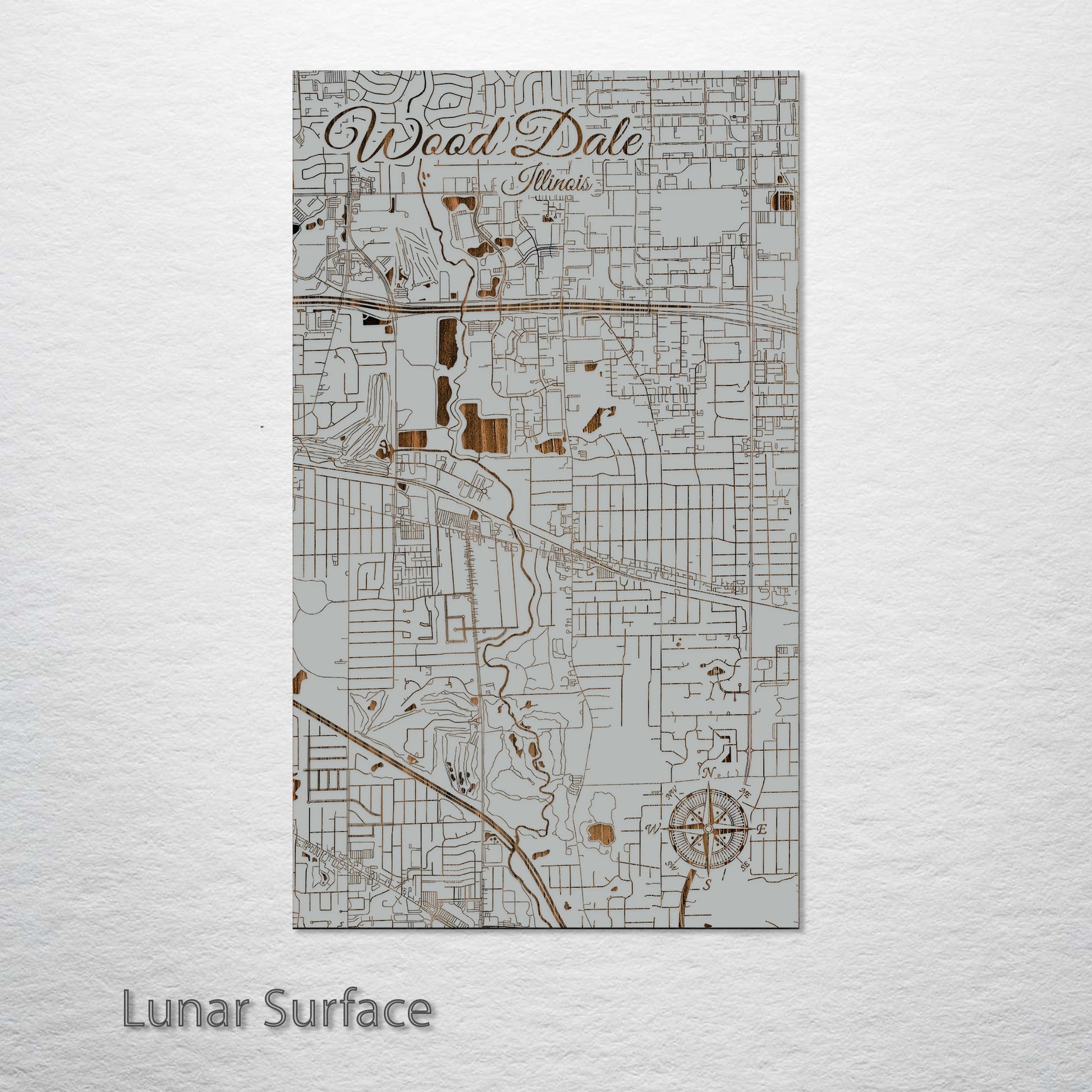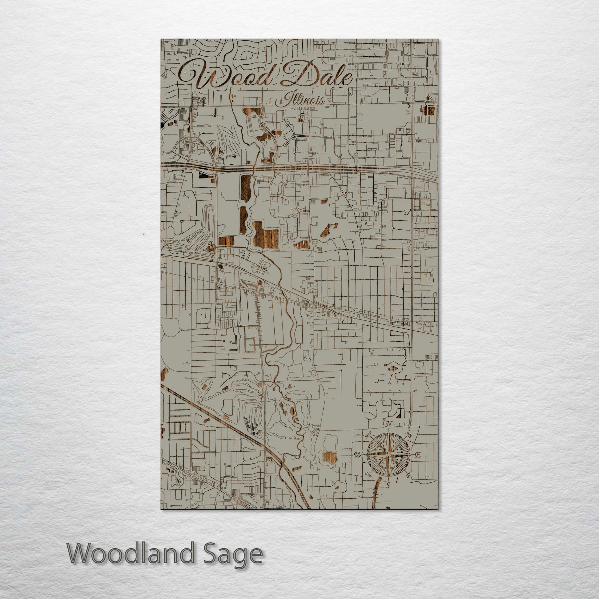 This is a street map of Wood Dale, IL designed by Fire & Pine artists.