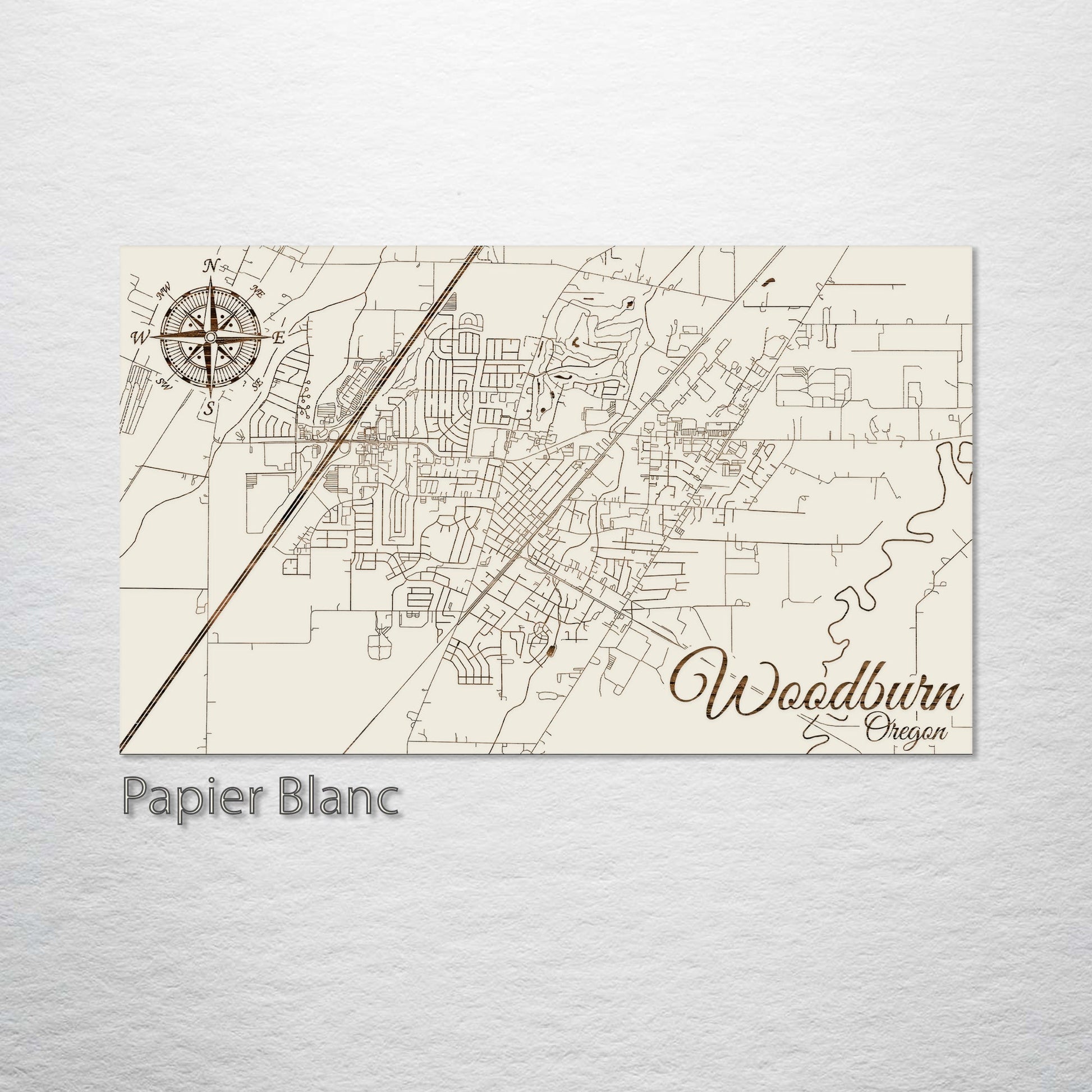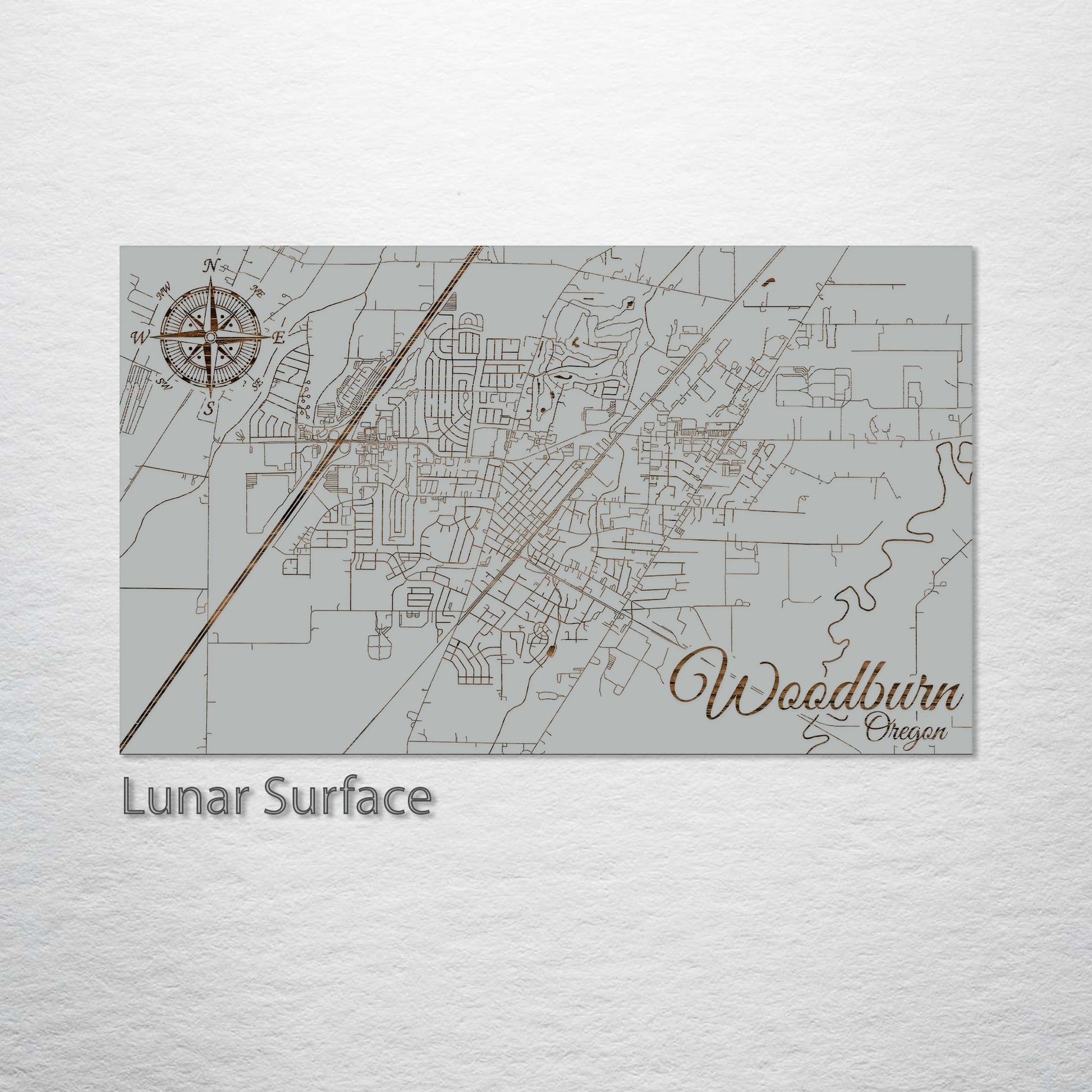 This is a street map of Woodburn, OR designed by Fire & Pine artists.