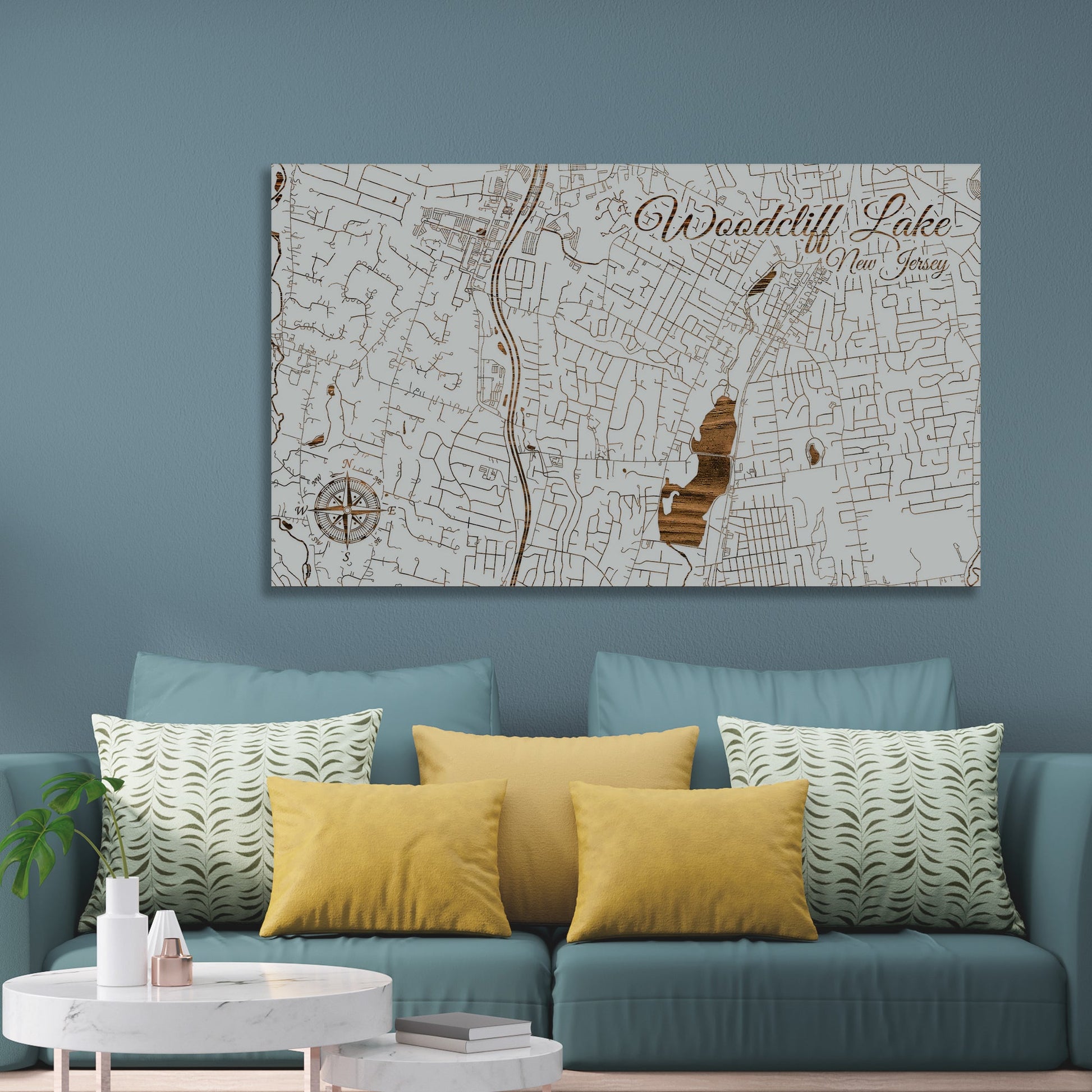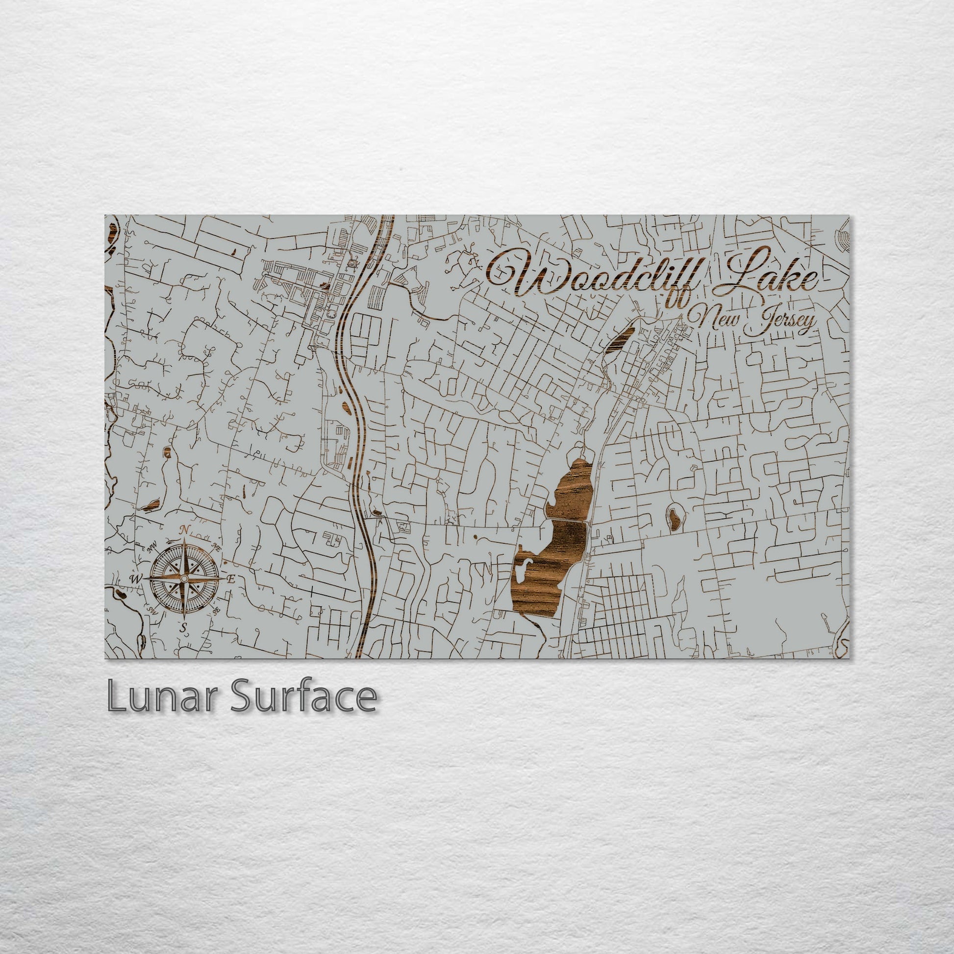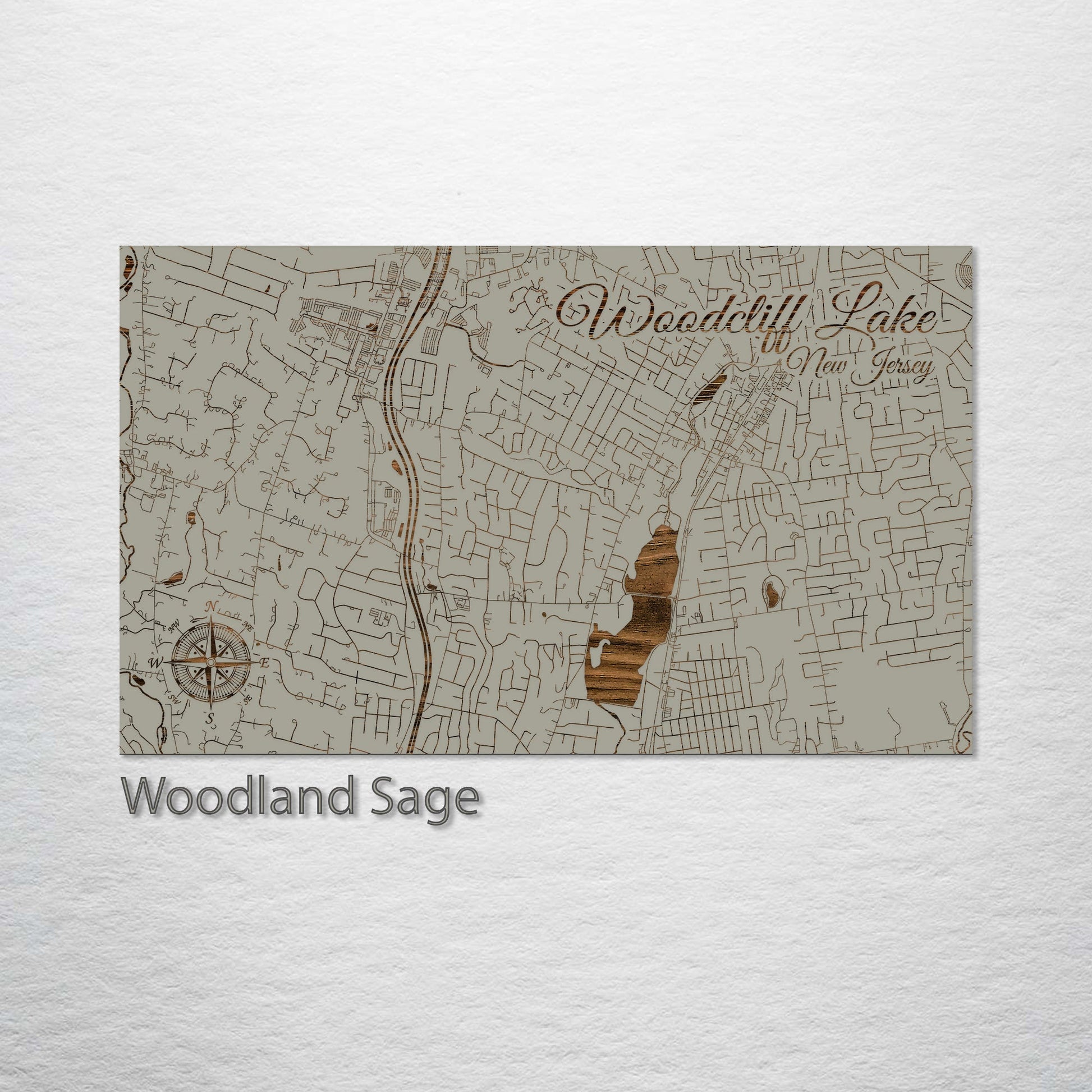 This is a street map of Woodcliff Lake, OH designed by Fire & Pine artists.