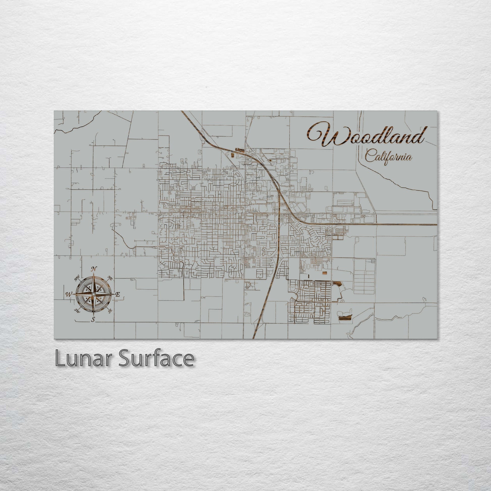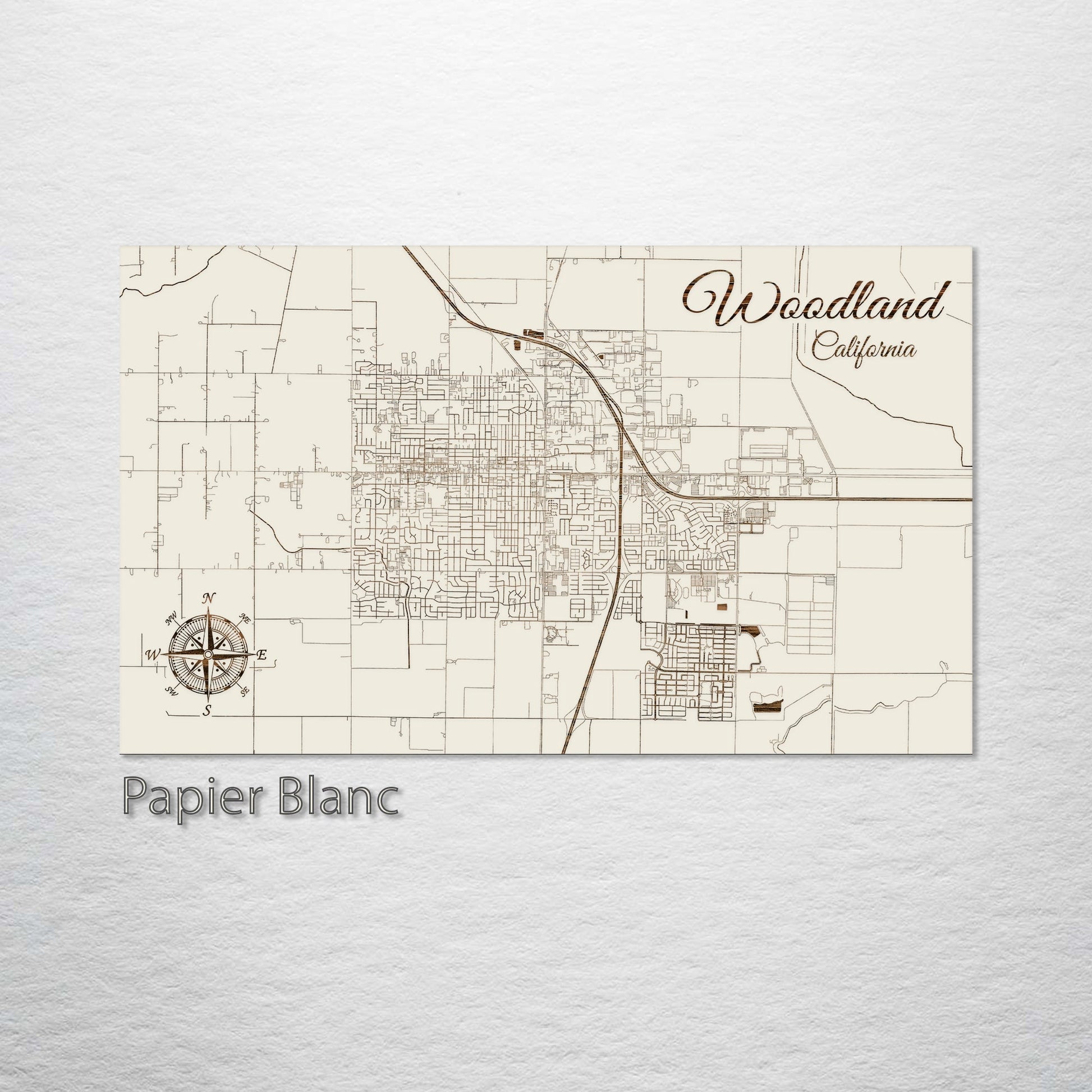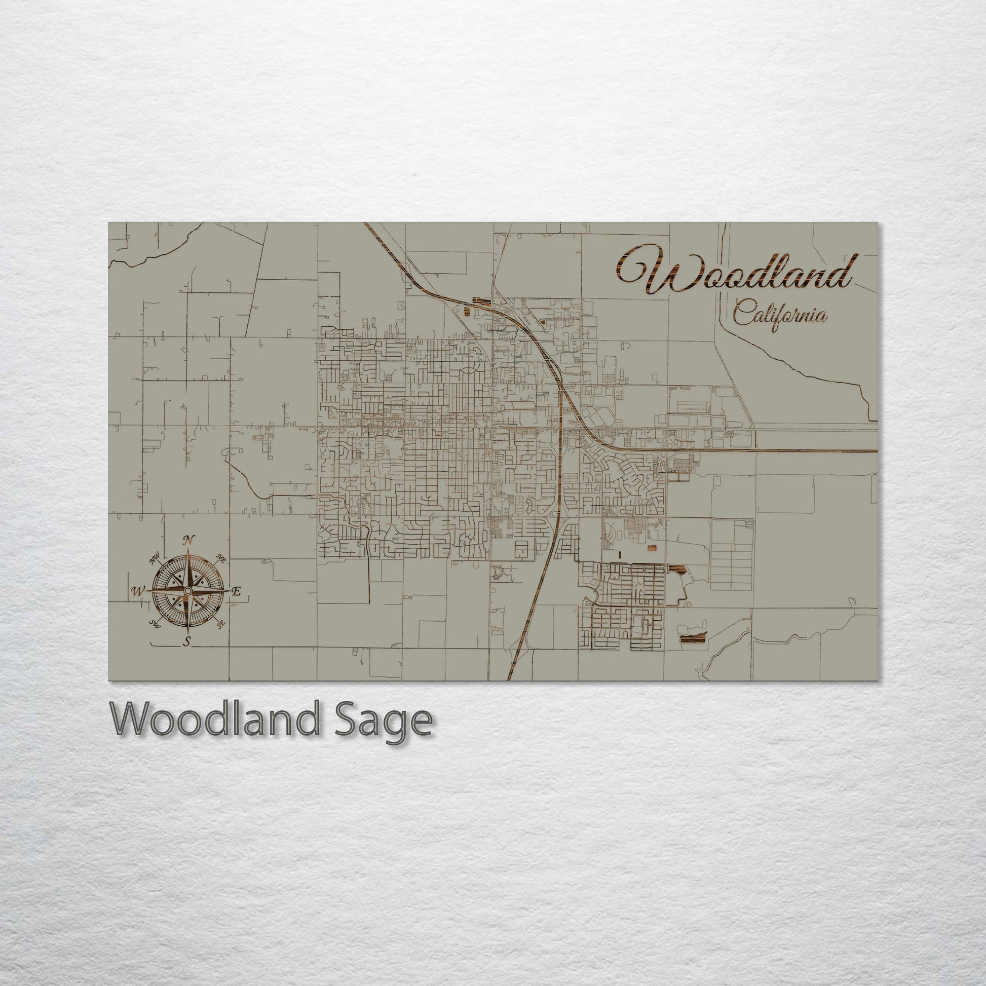 This is a street map of Woodland, CA designed by Fire & Pine artists.