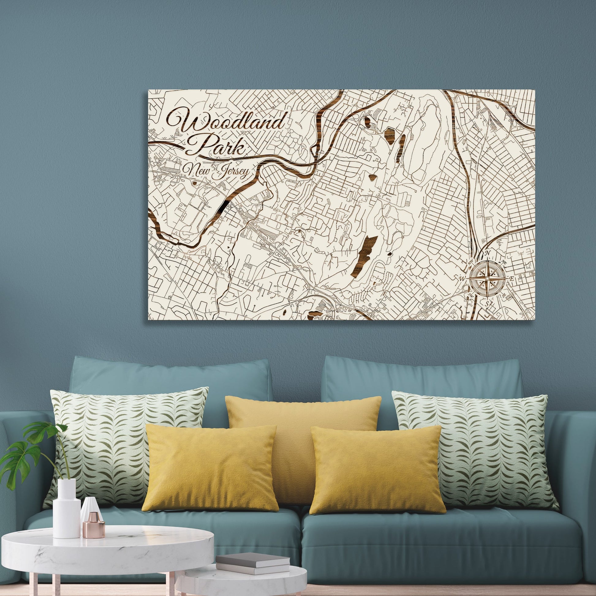 This is a street map of Woodland Park, NJ designed by Fire & Pine artists.
