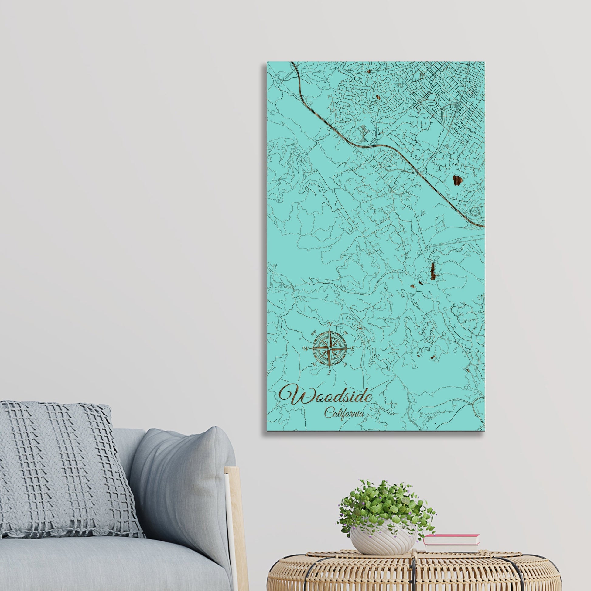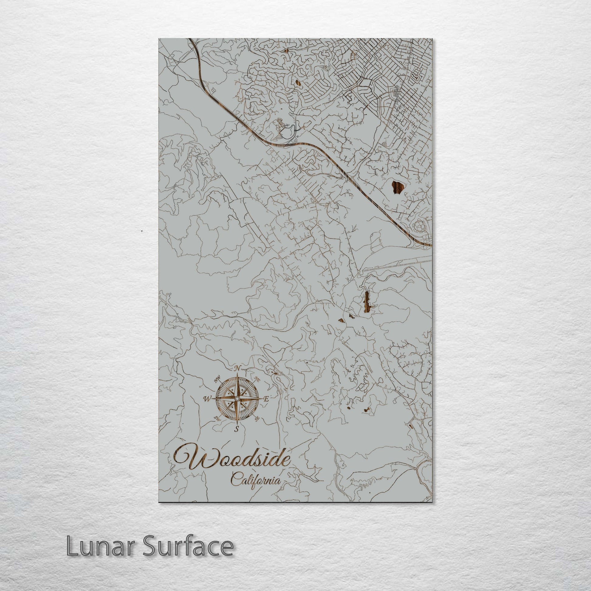 This is a street map of Woodside, CA designed by Fire & Pine artists.
