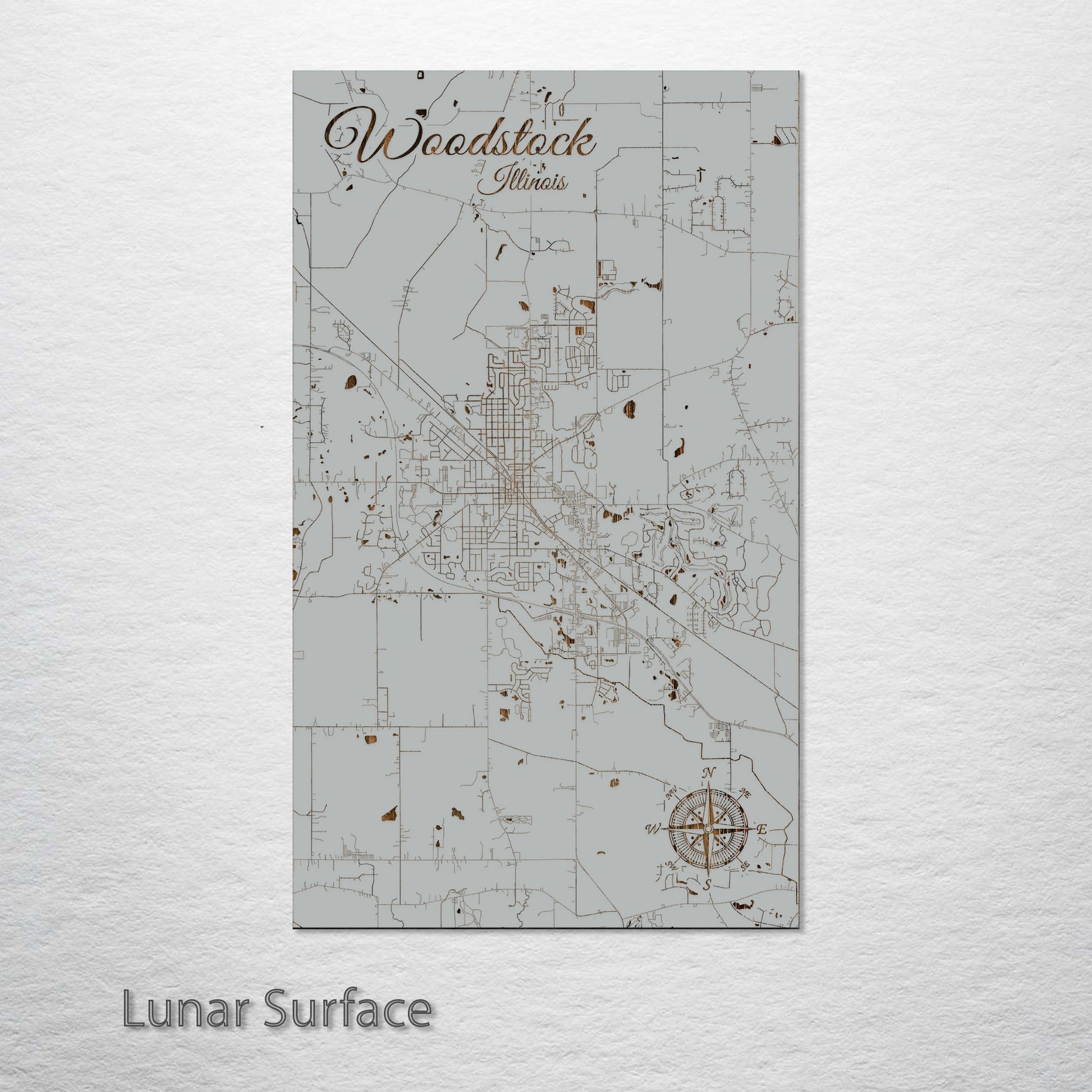 This is a street map of Woodstock, IL designed by Fire & Pine artists.