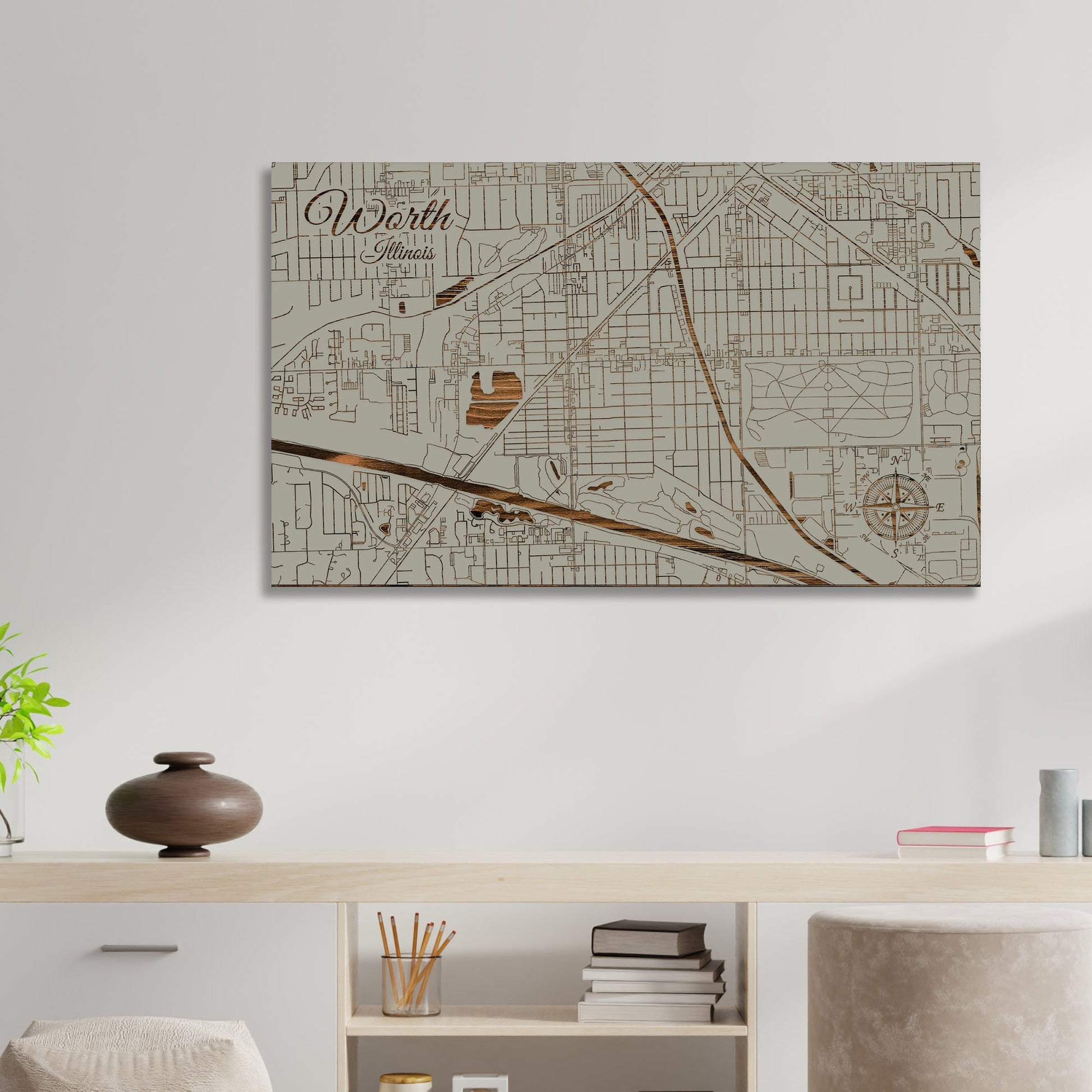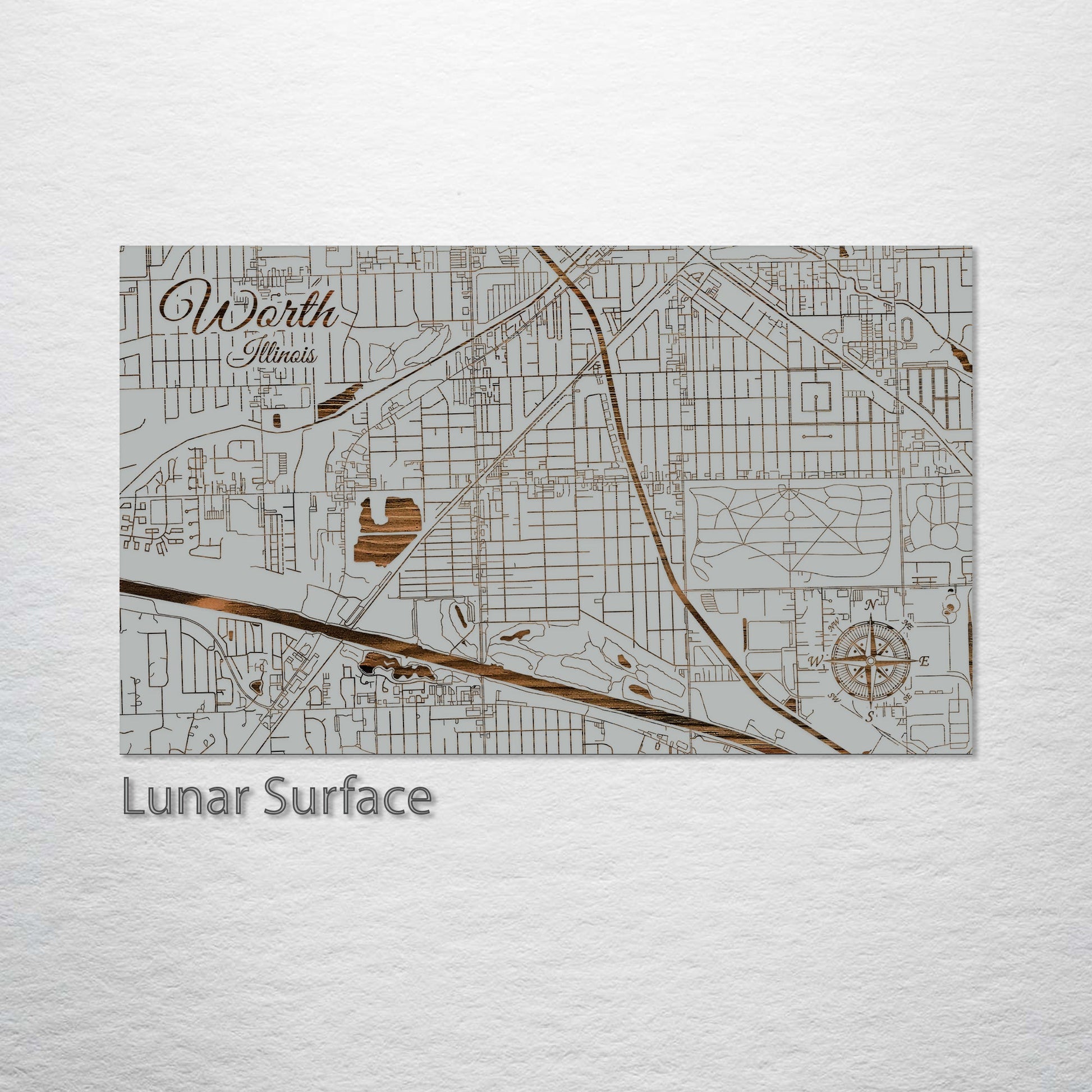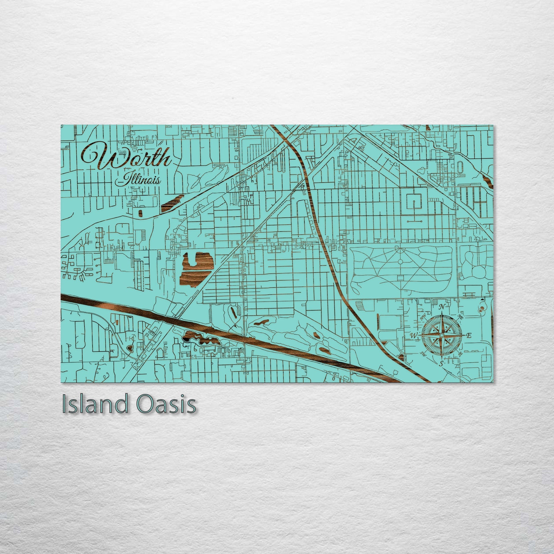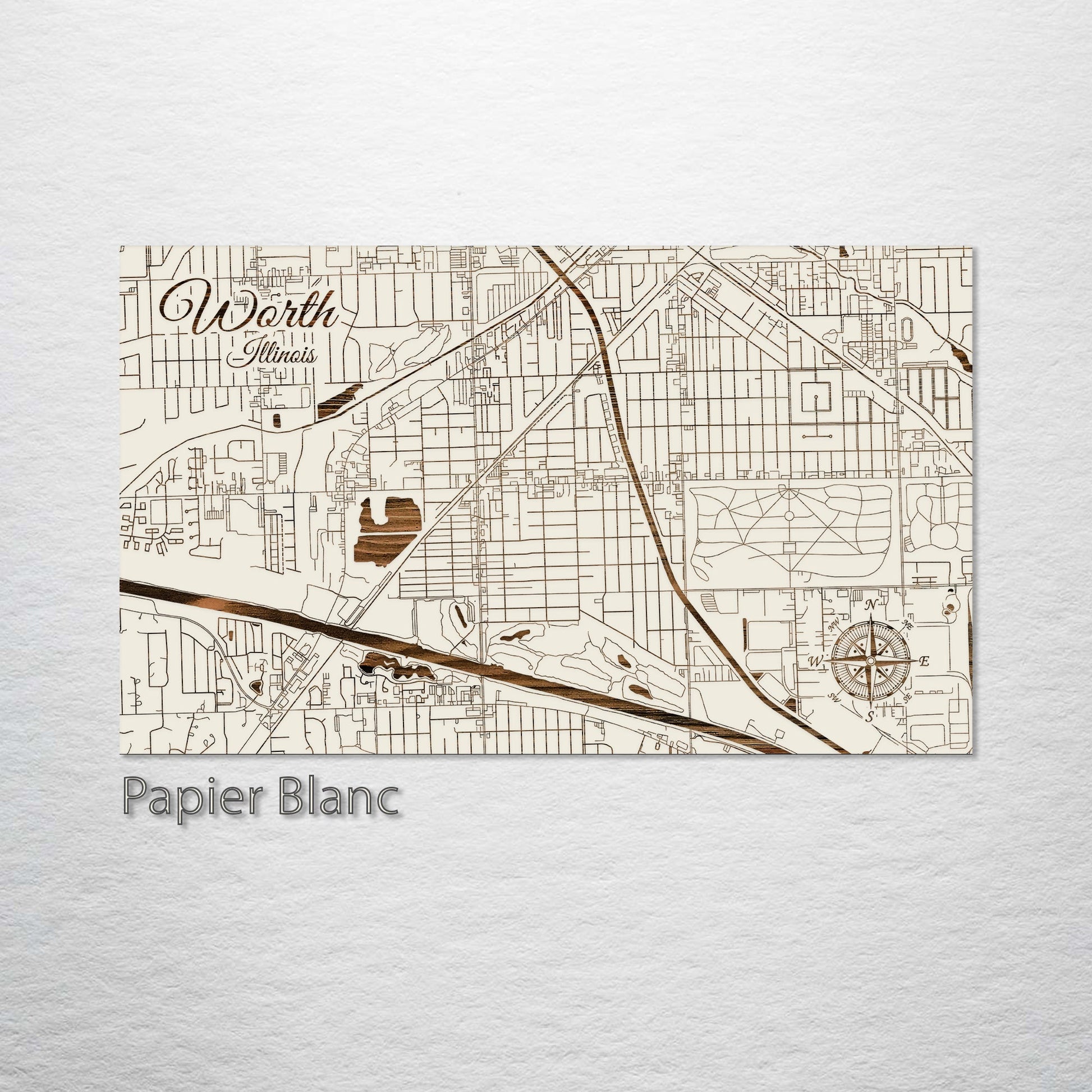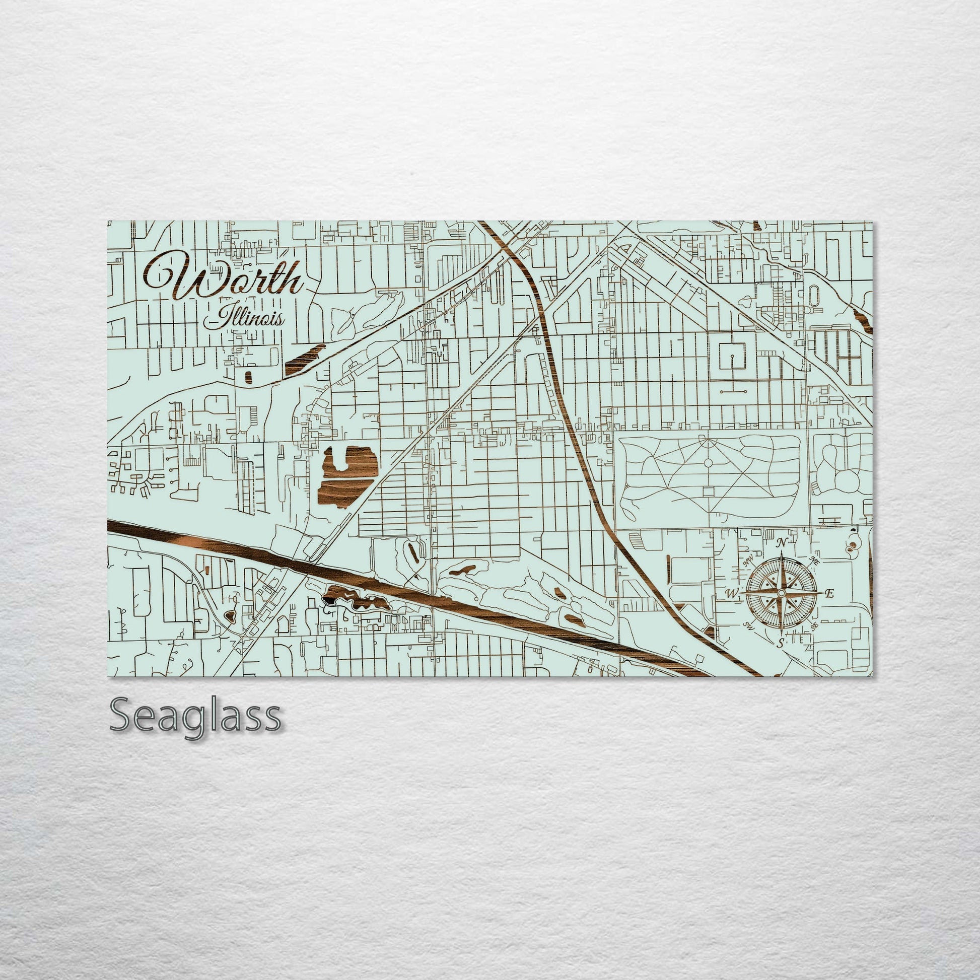 This is a street map of Worth, IL designed by Fire & Pine artists.
