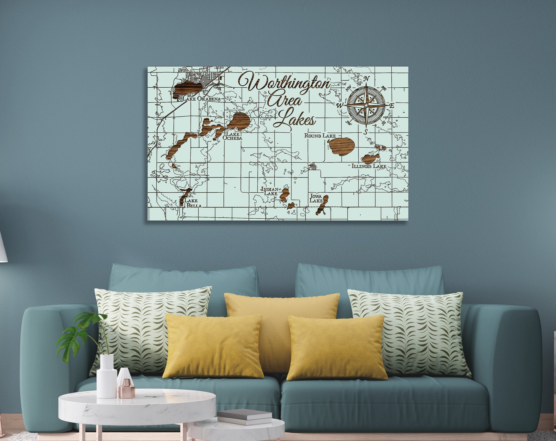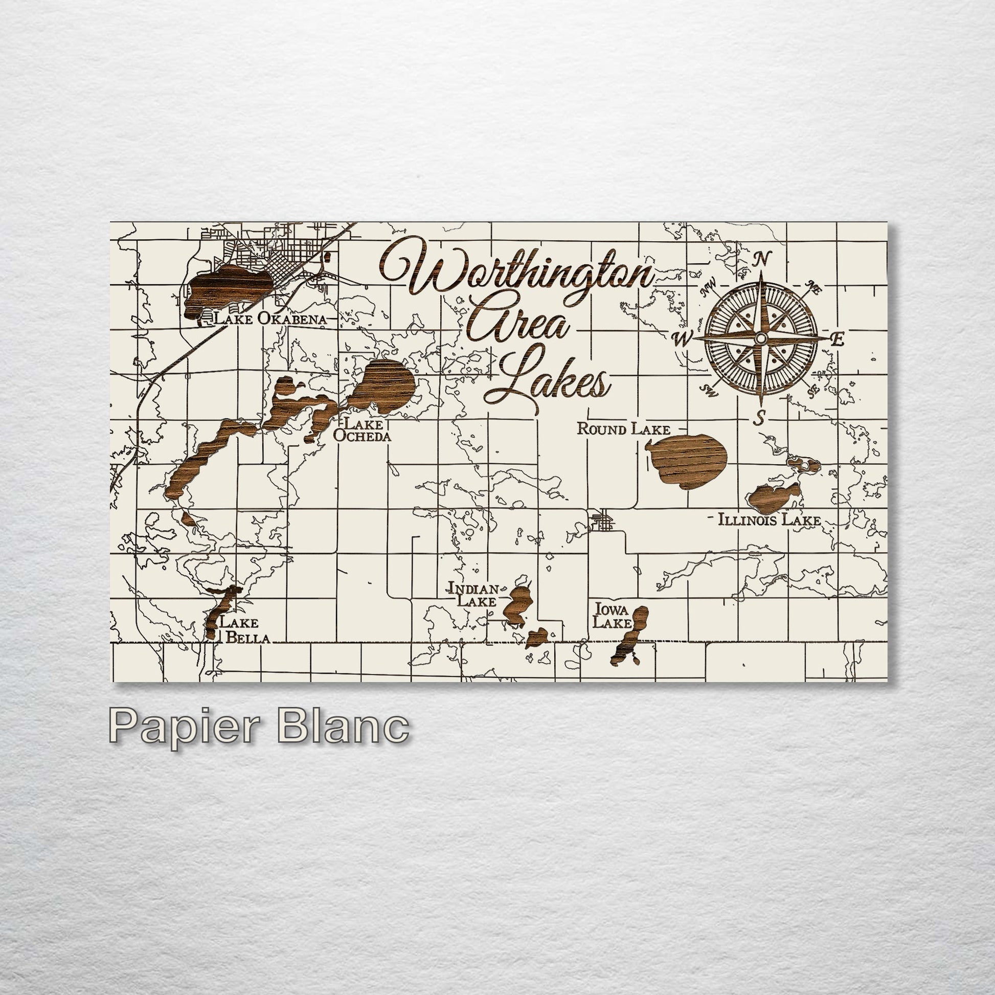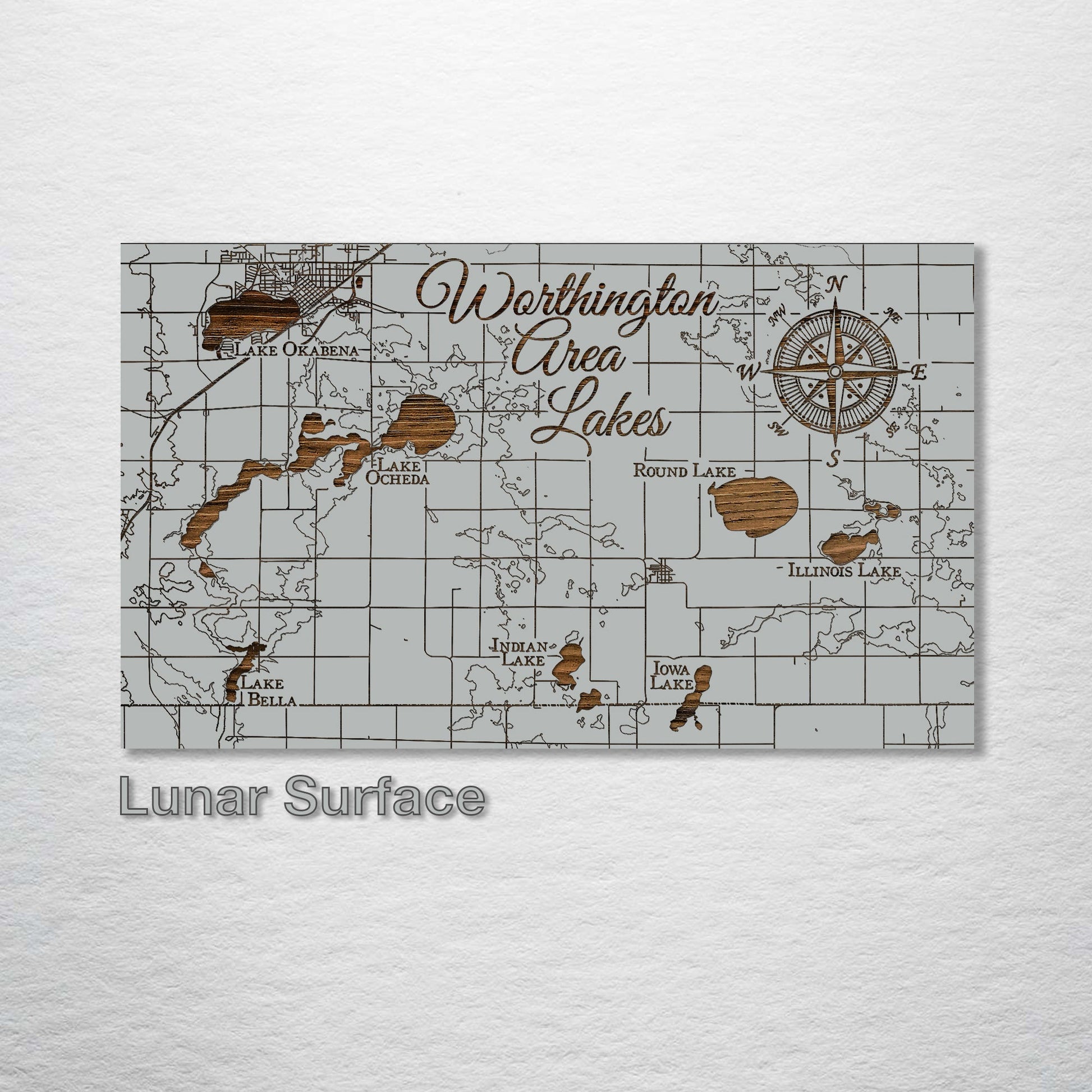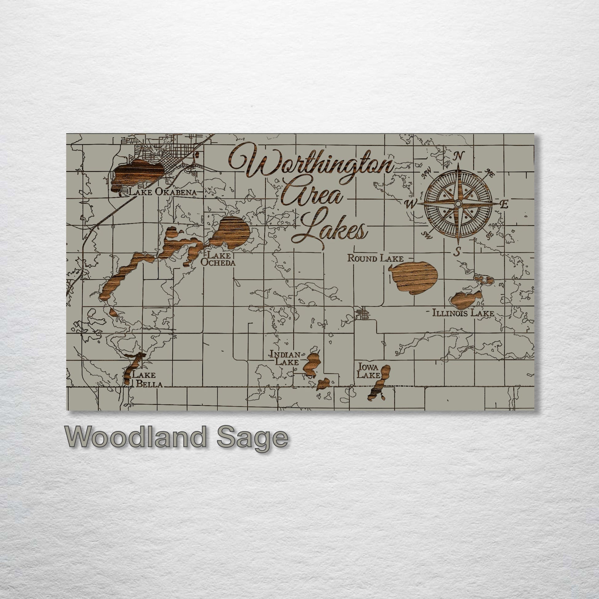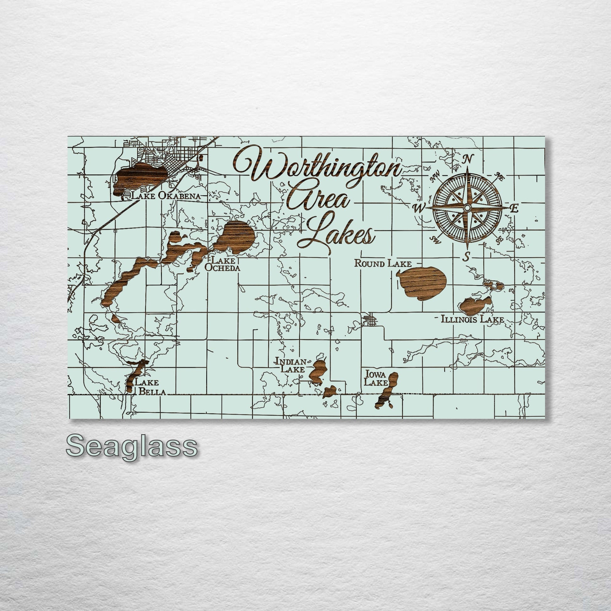 This is a street map of Worthing Area Lakes in Minnesota designed by Fire & Pine artists.