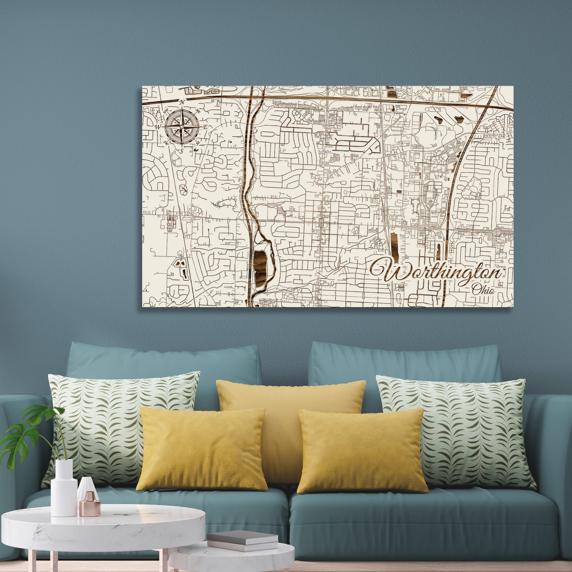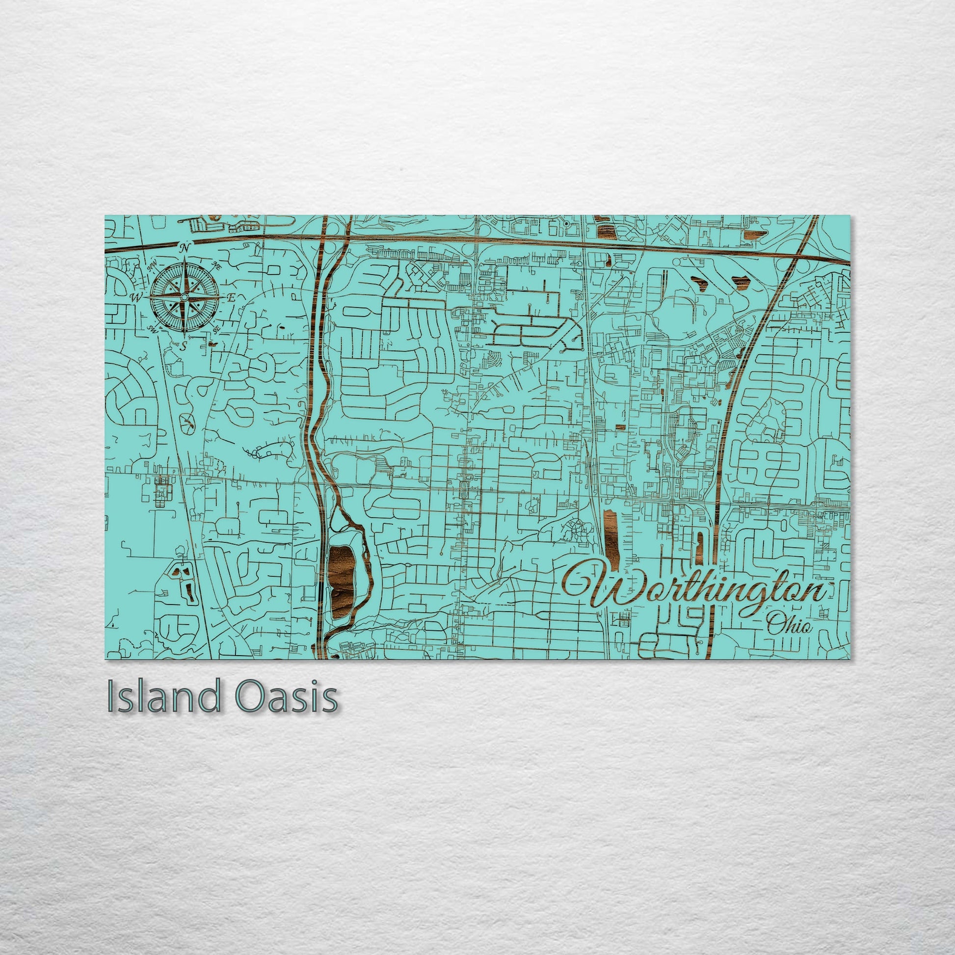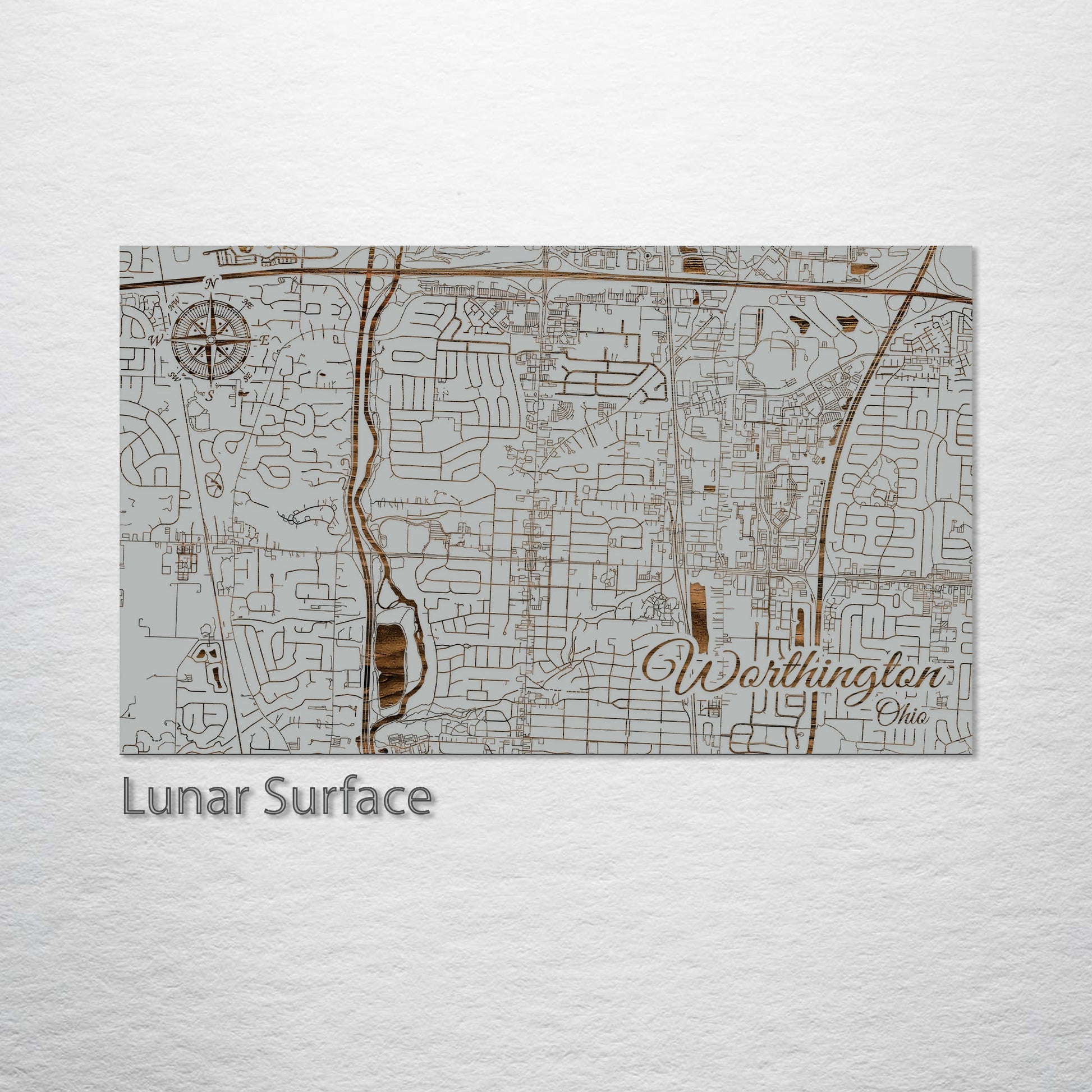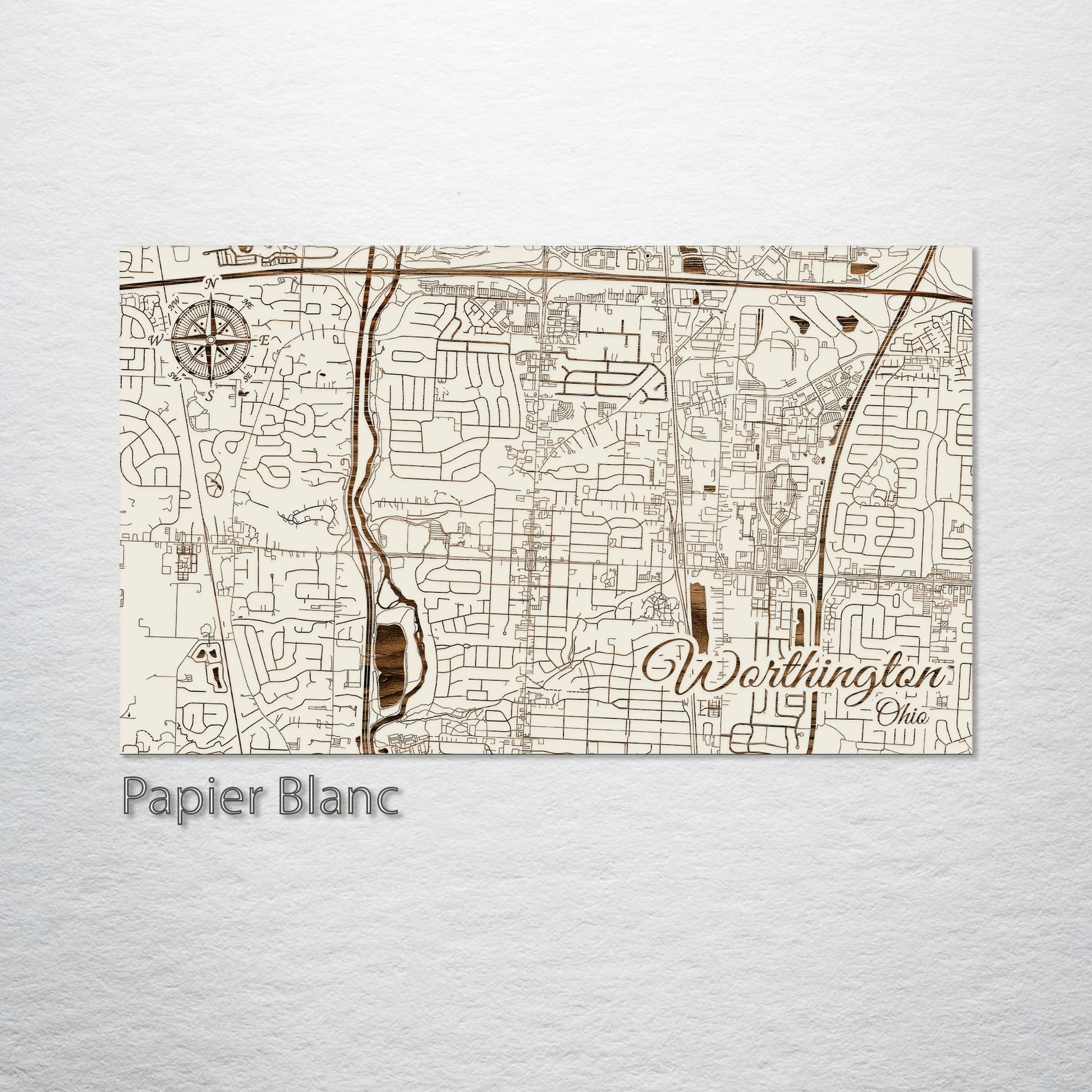 This is a street map of Worthington, OH designed by Fire & Pine artists.