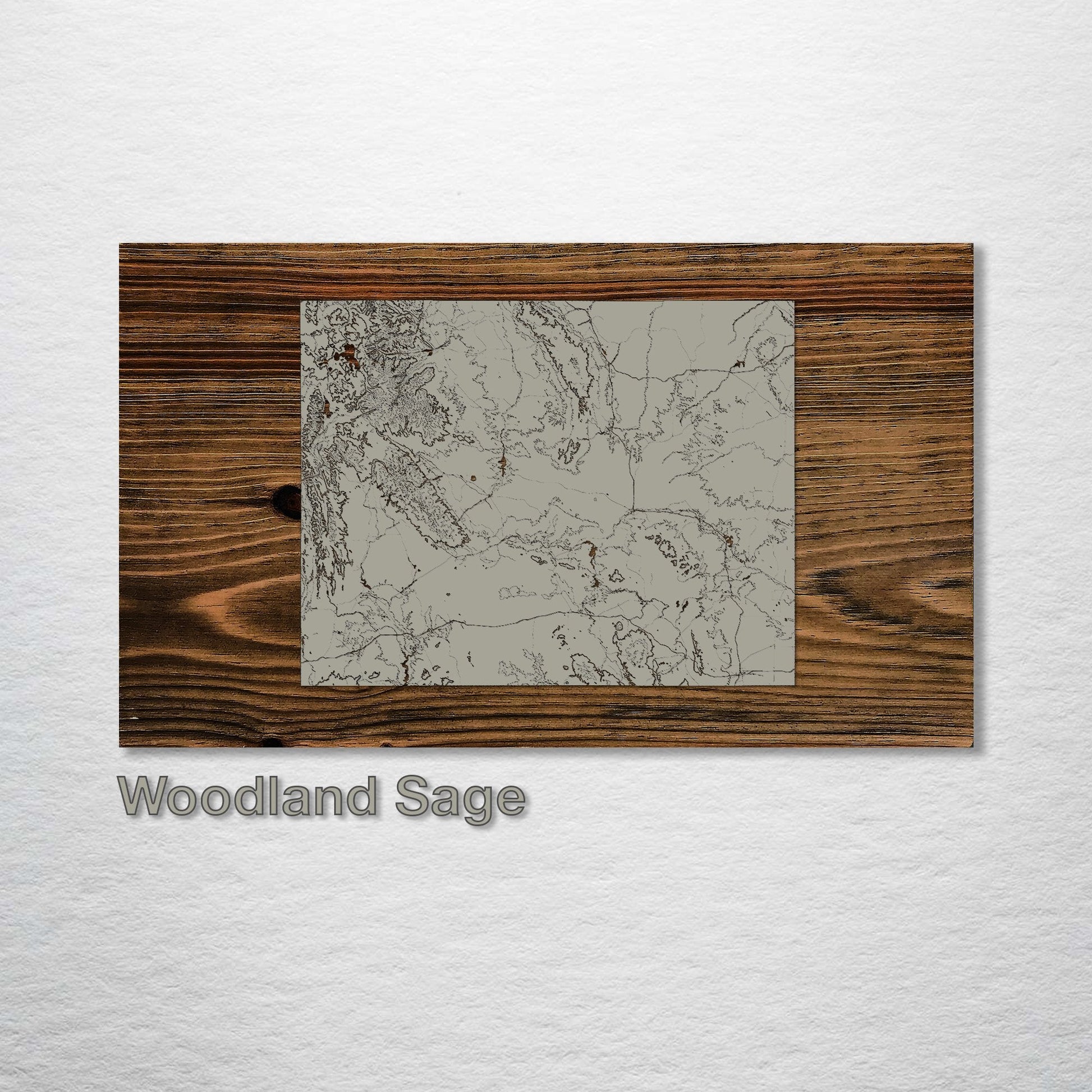 This is an Isolated map of the state of Wyoming designed by Fire & Pine artists.