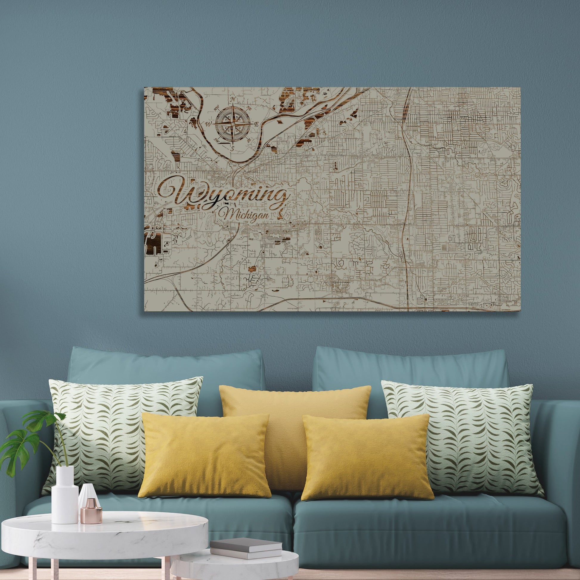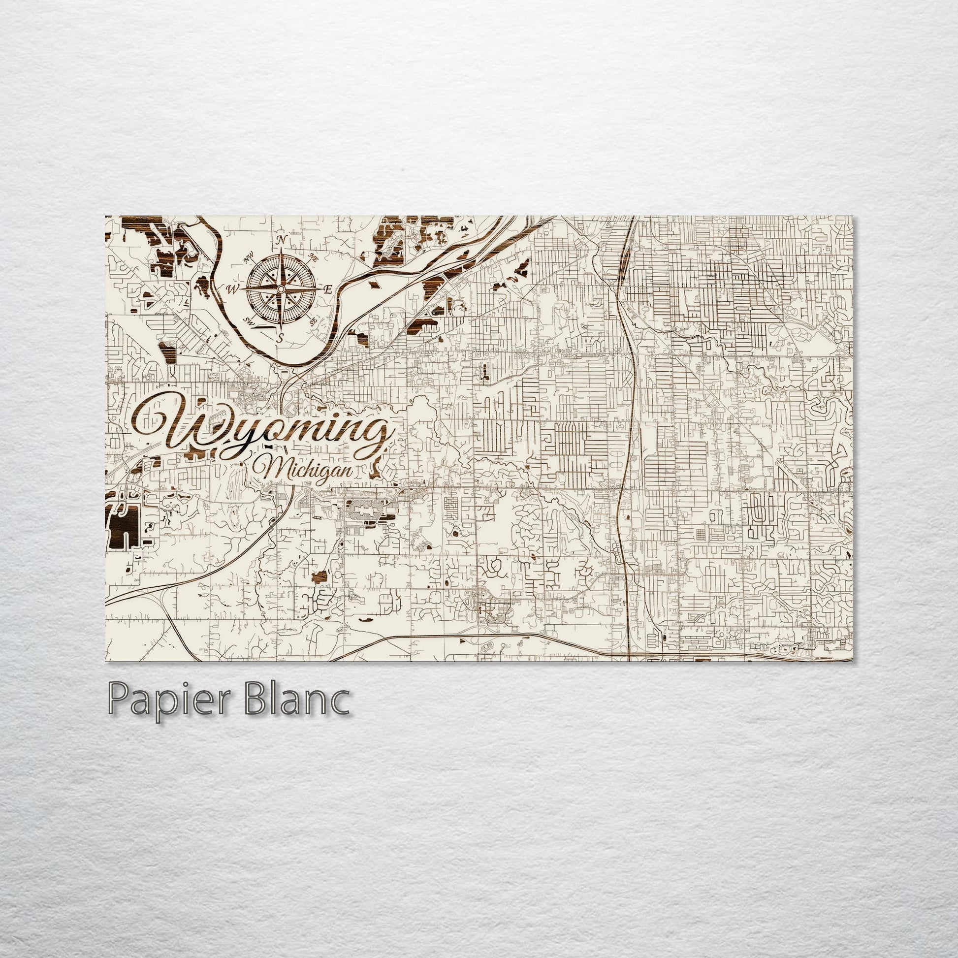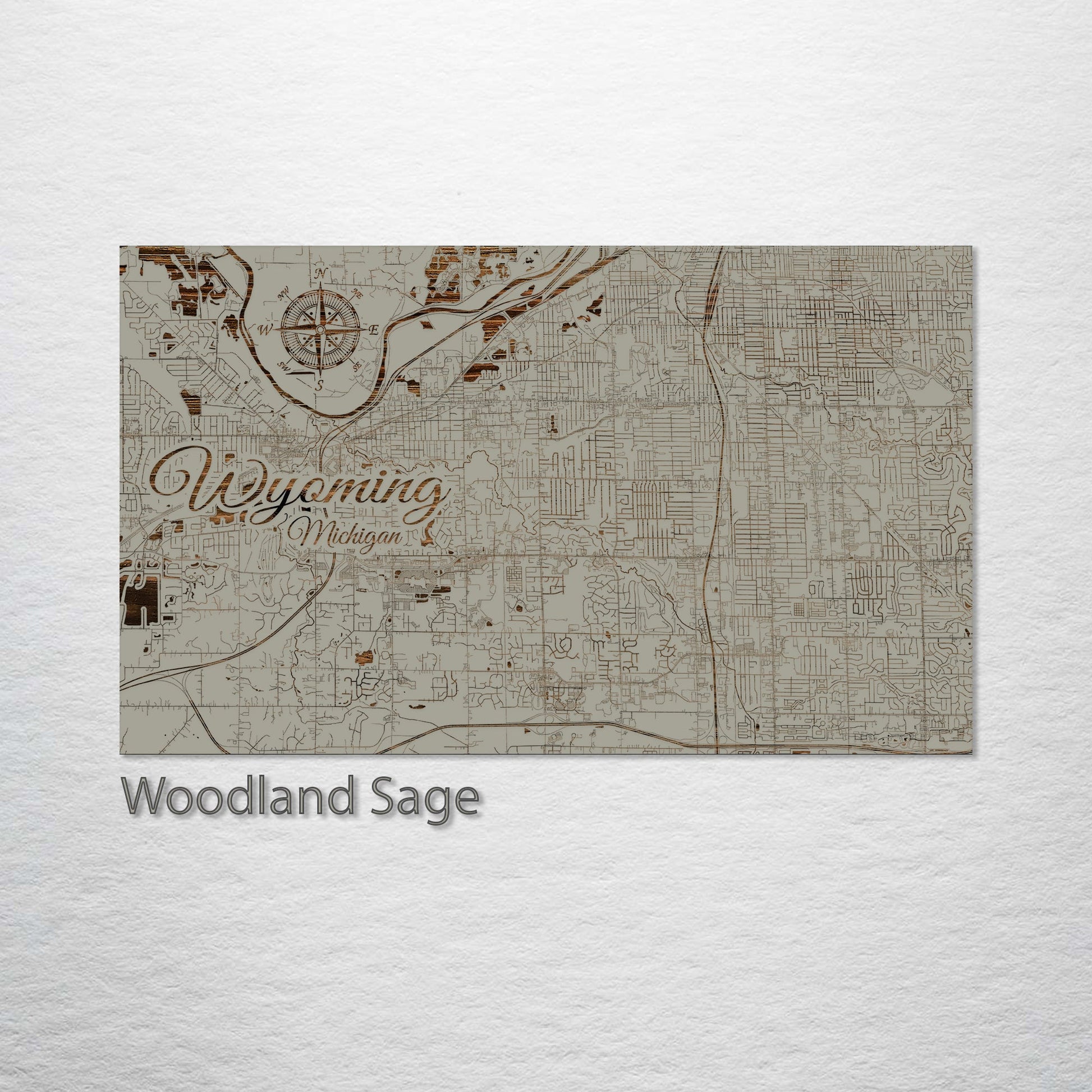 This is a street map of Wyoming, MI designed by Fire & Pine artists.