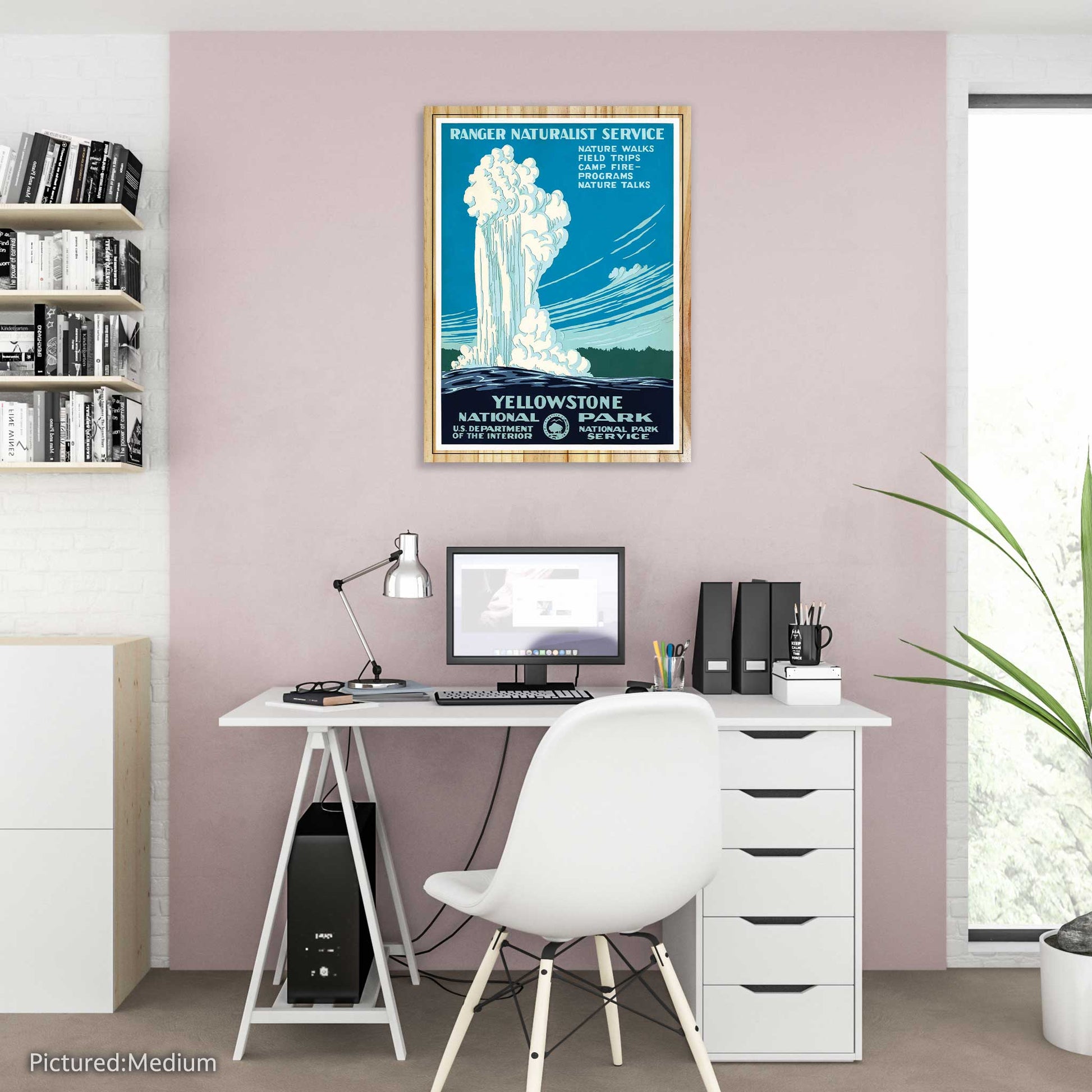 This Yellowstone National Park travel poster is printed directly on wood for a unique vintage feel. Choose between an elevated or flat option, perfect for displaying your love for the great outdoors. Let your walls speak for your taste in adventure!